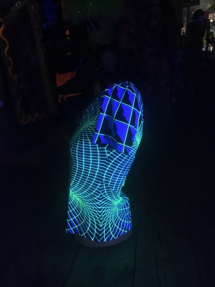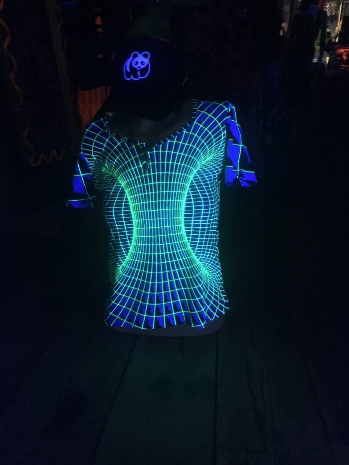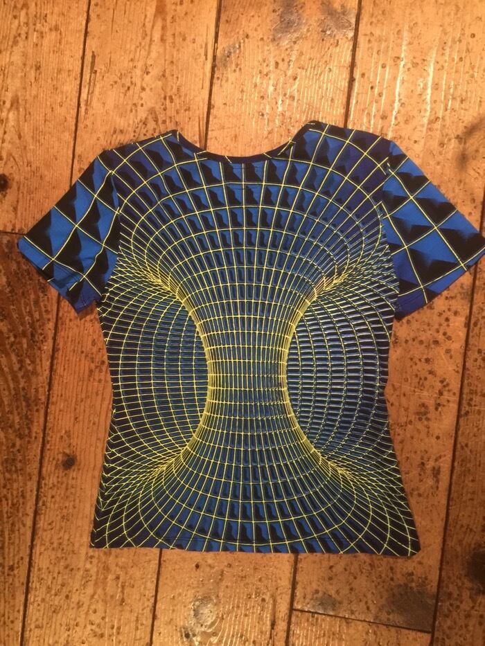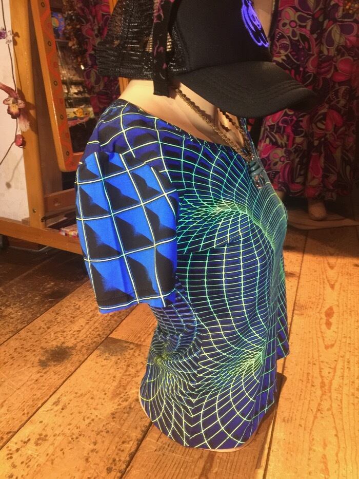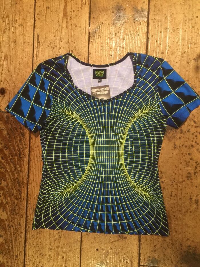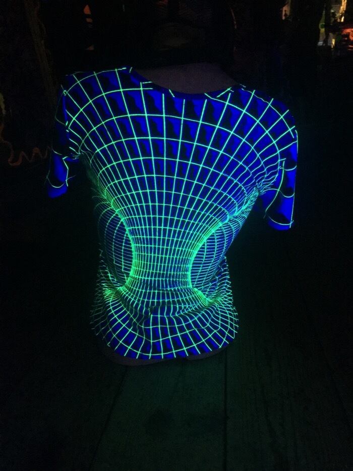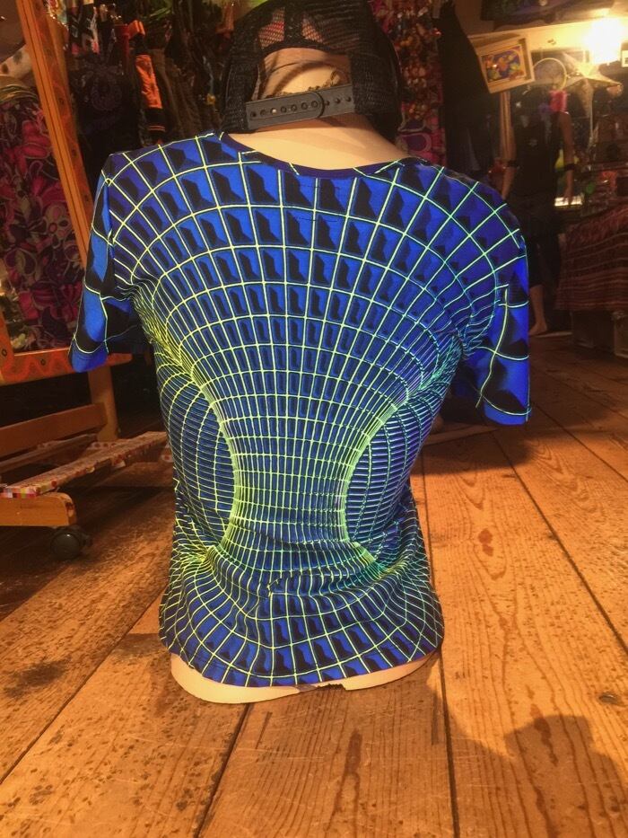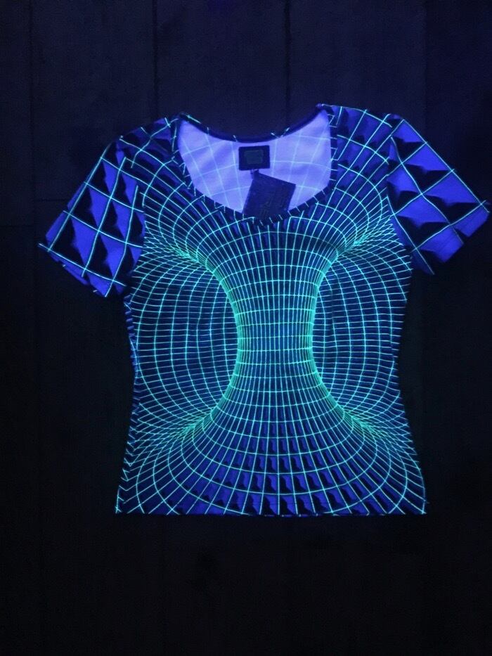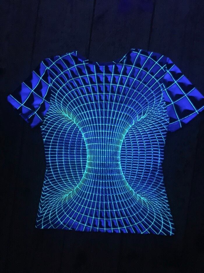 空間中軸トーラスを蛍光インクを使いシルクスクリーンで手刷りプリントしたsペトラオリジナルレヂースTシャツ