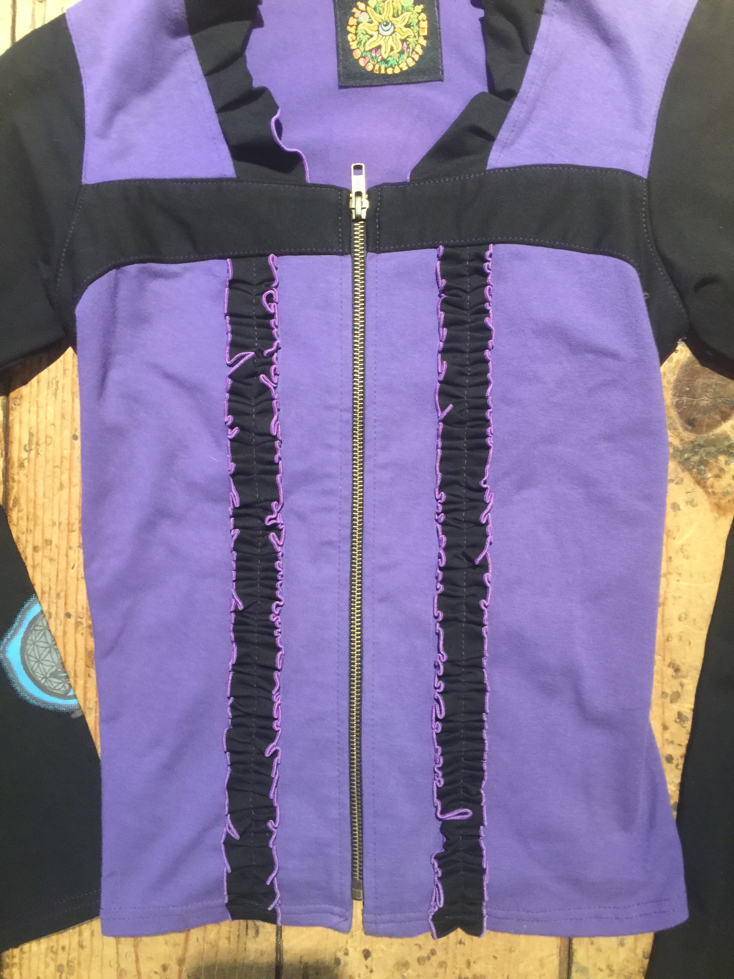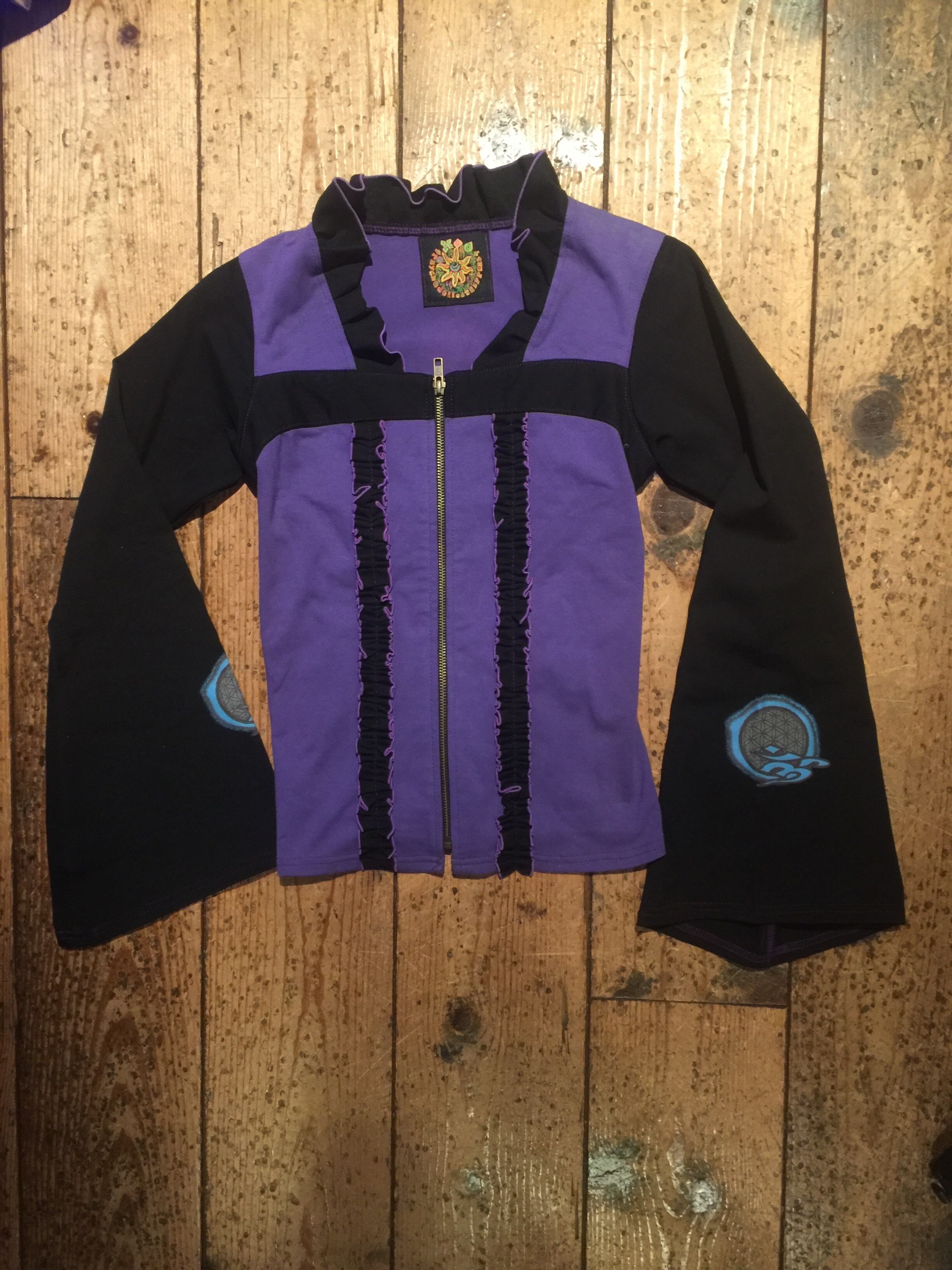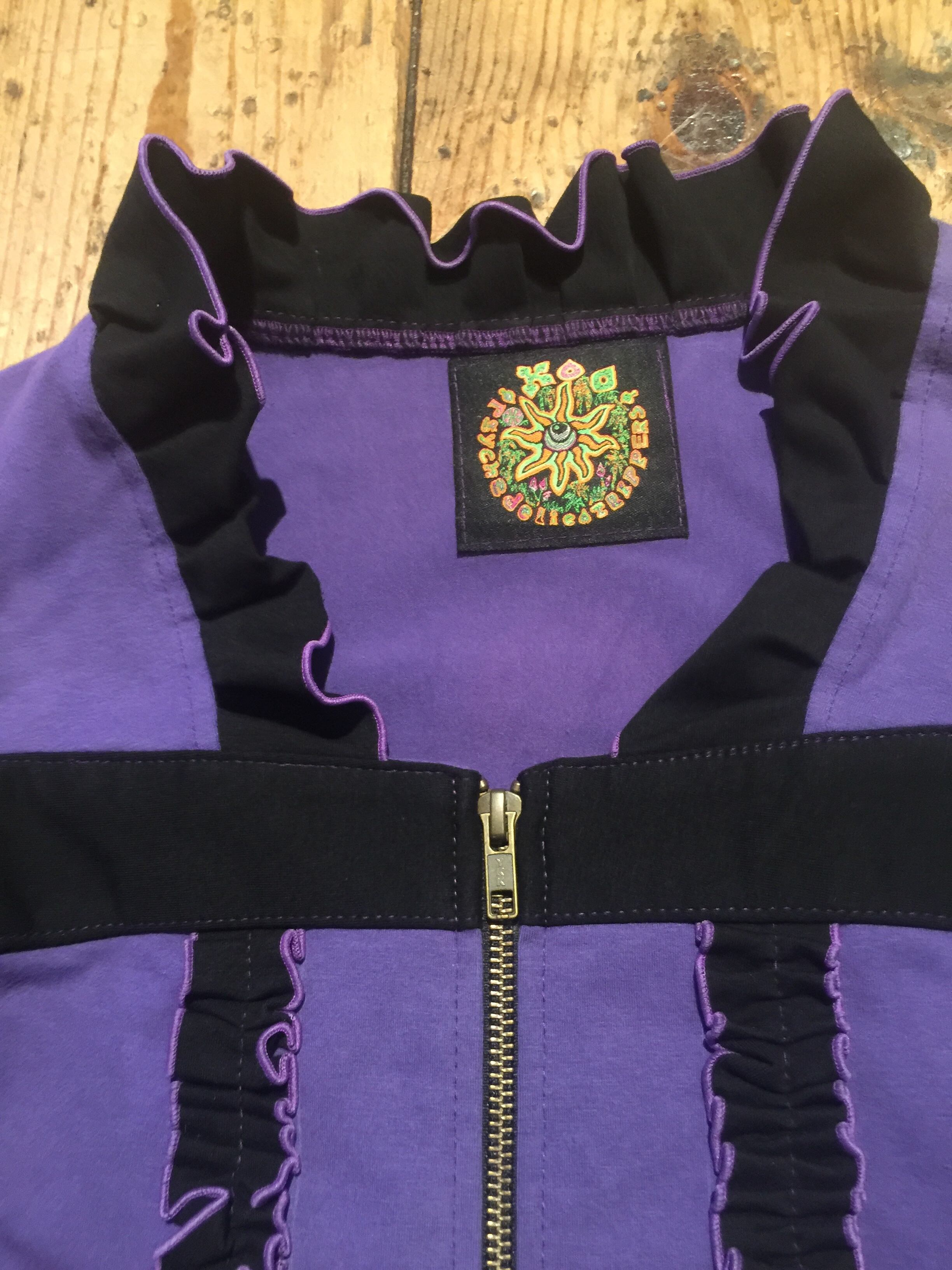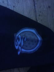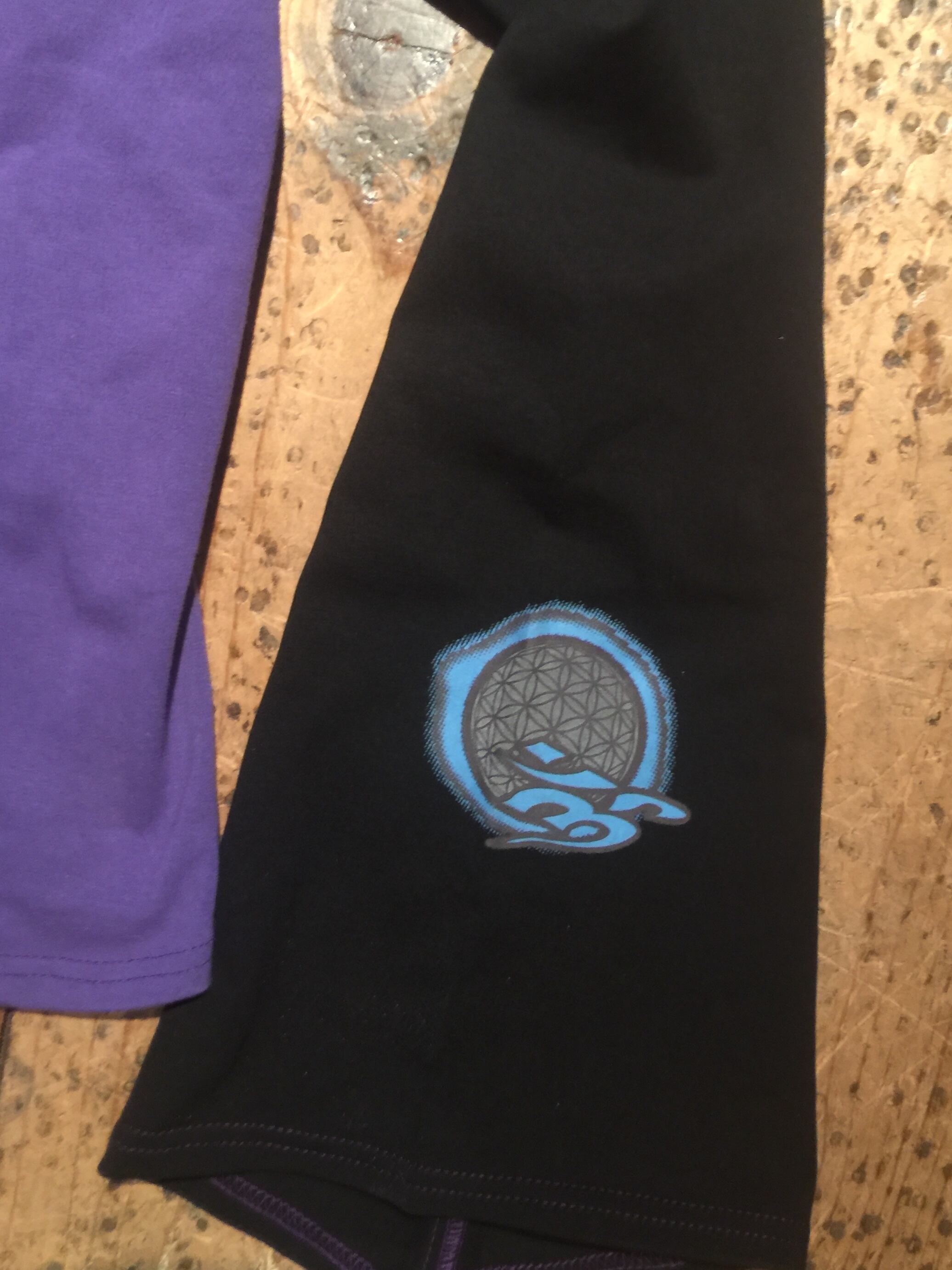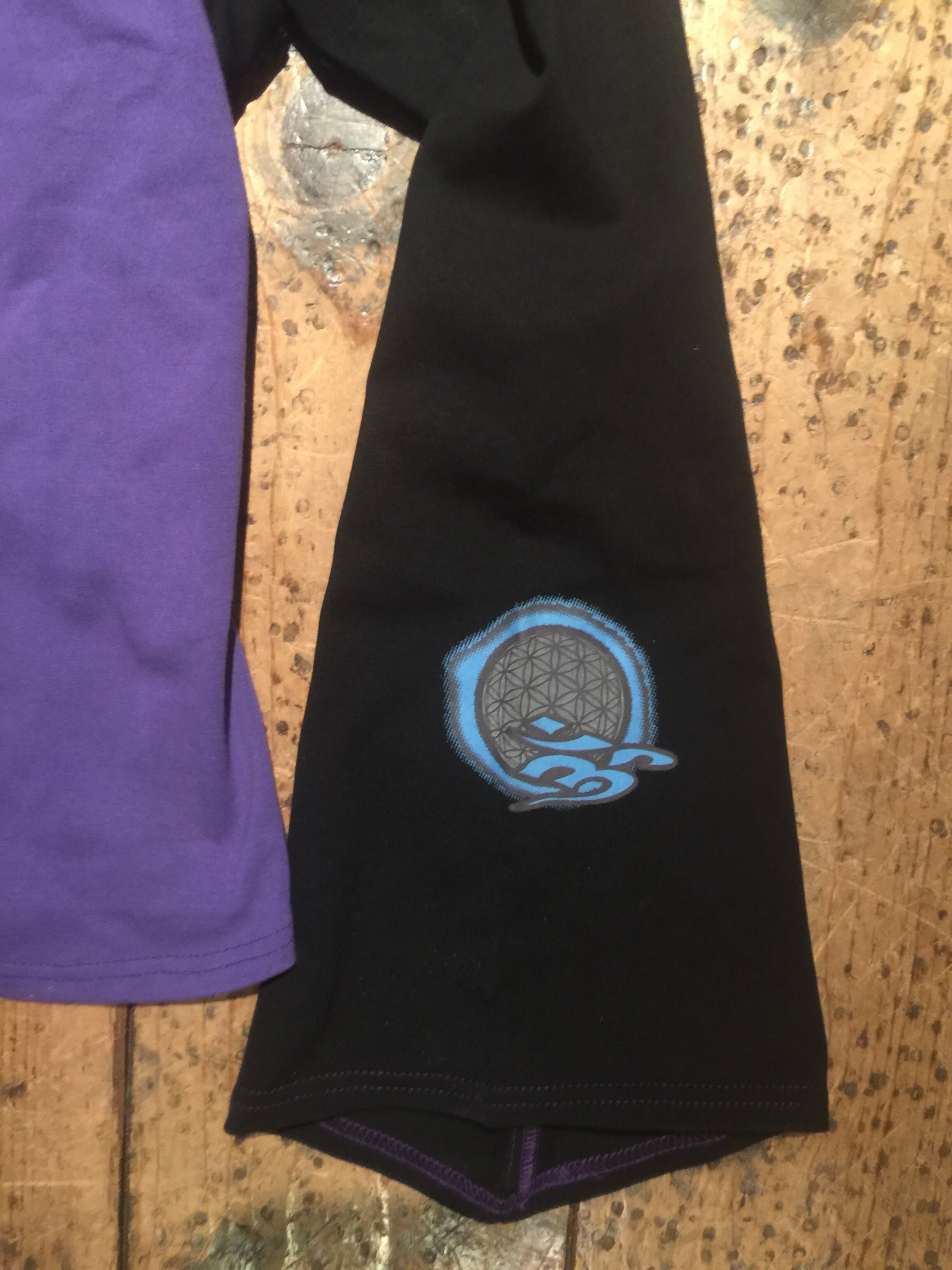 プリントはチッコウ、リフレクターインクを使ってシルクスクリーンでオームとフラワーオブライフのシンボルマークをバックと袖にプリントしてます