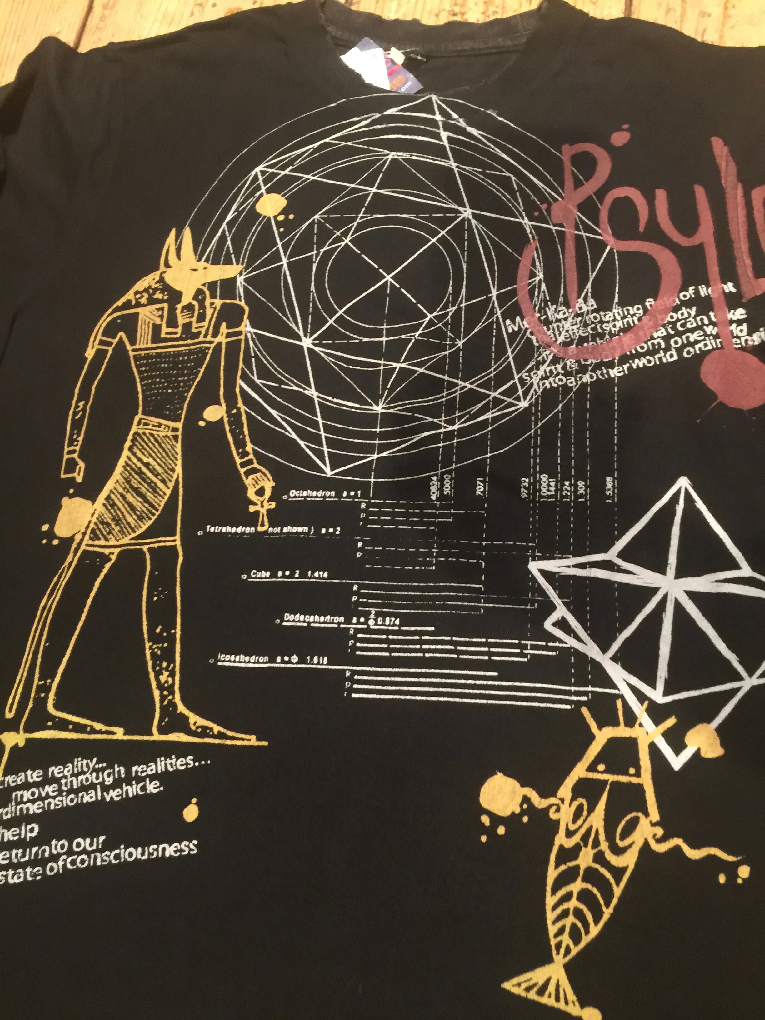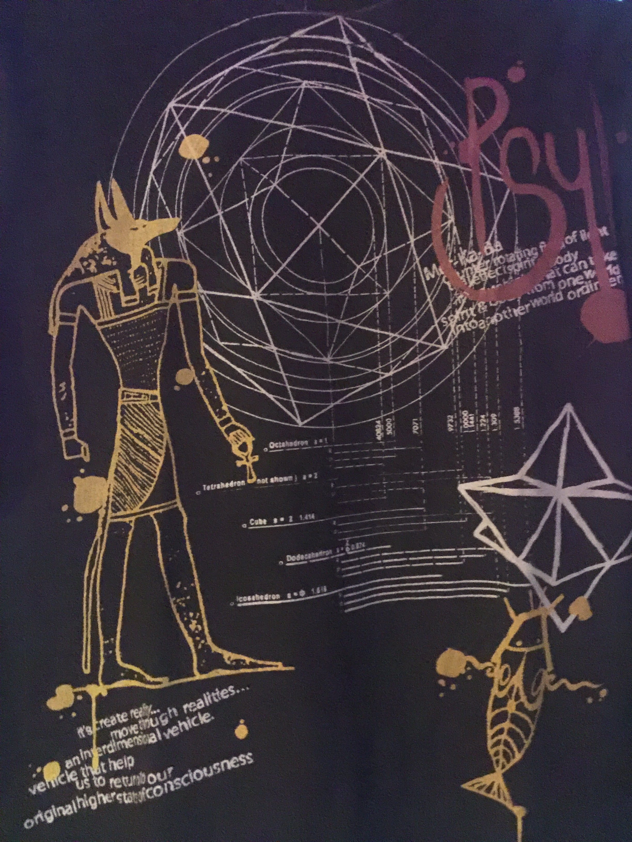 プリントはマカバ正三角形で構成された正四面体が上下に」重なった立体で高次元意識と繋がりアセンションするための神聖な光の乗り物をプリントしてます