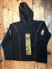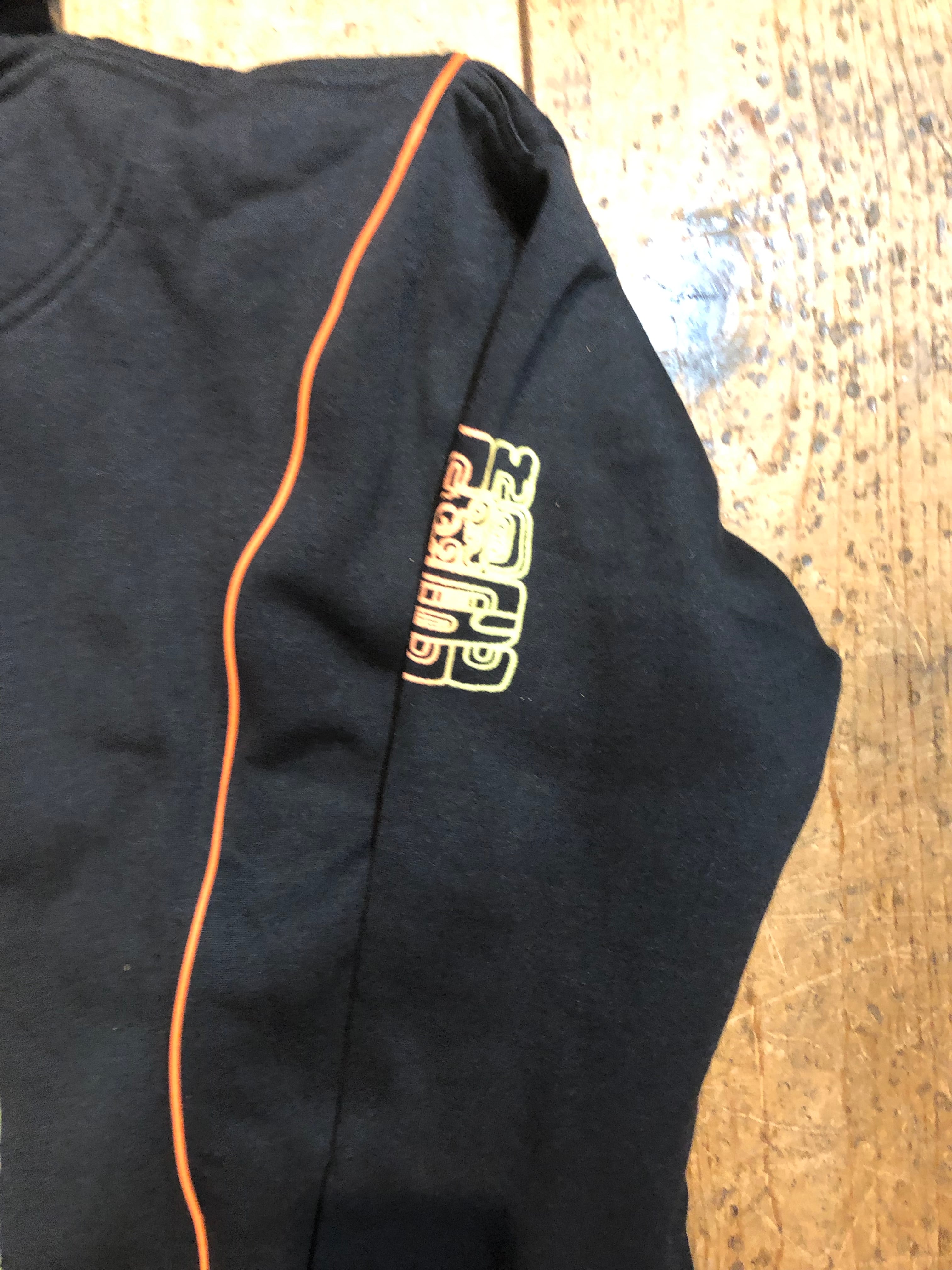プリントは両スリブ、バックに蛍光インクを使ってシルクスクリーンで手刷りプリントしてます