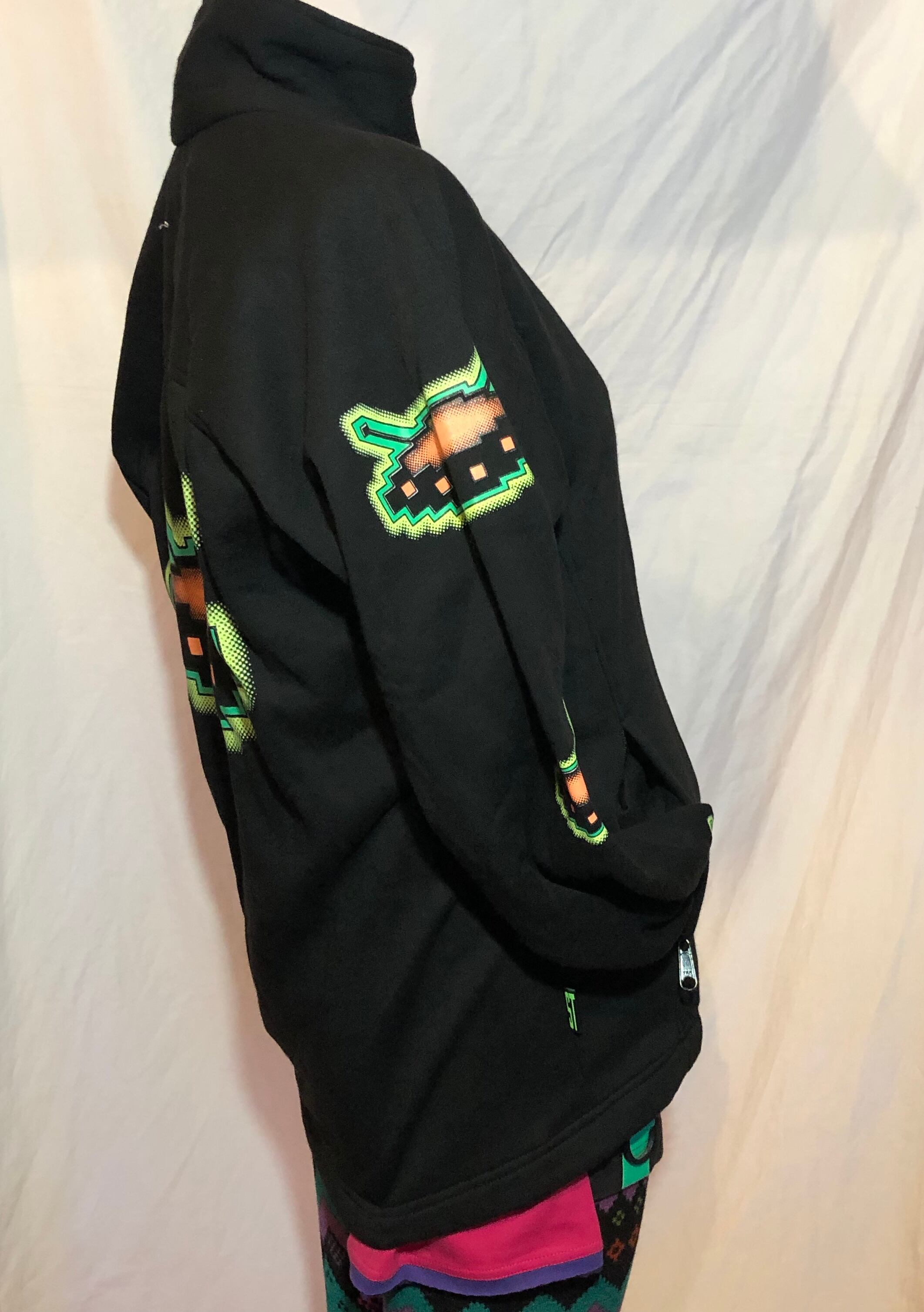 プリントスペーストライブフリースジャケット、ラウンドフード