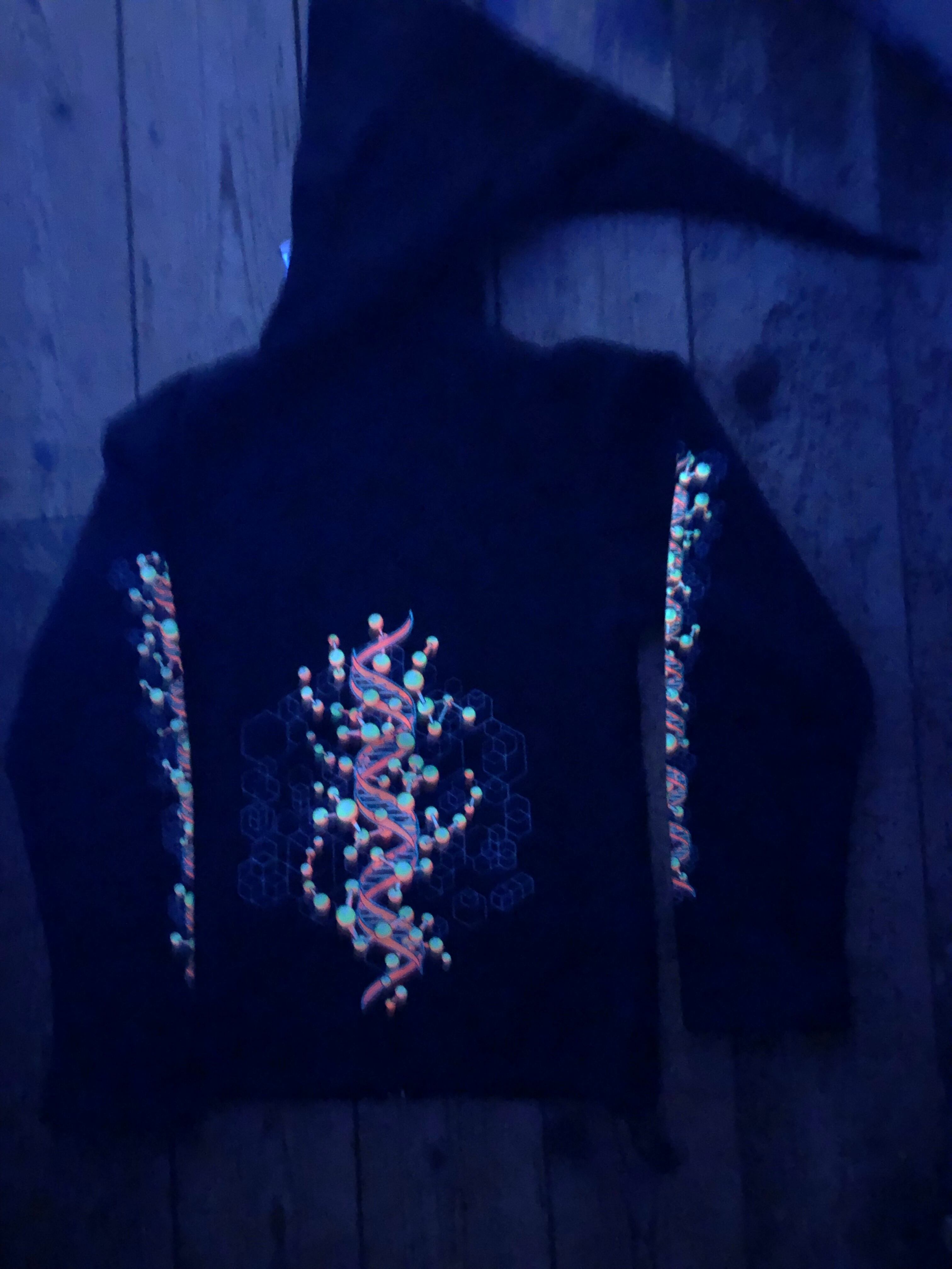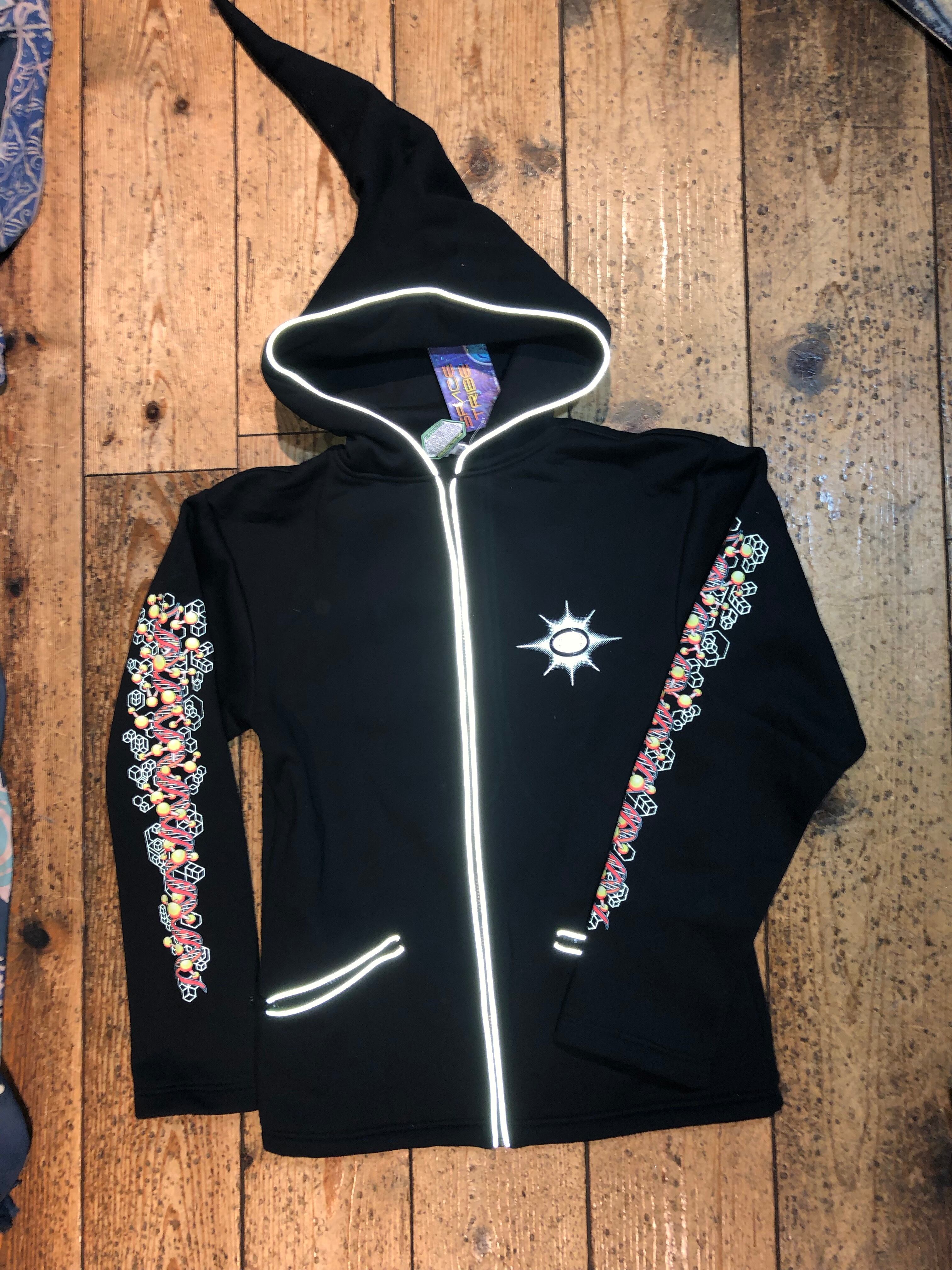 Glo/Reflective Chakra print. Printed on the back & sleeves. Reflective logo badge and print on the chest.