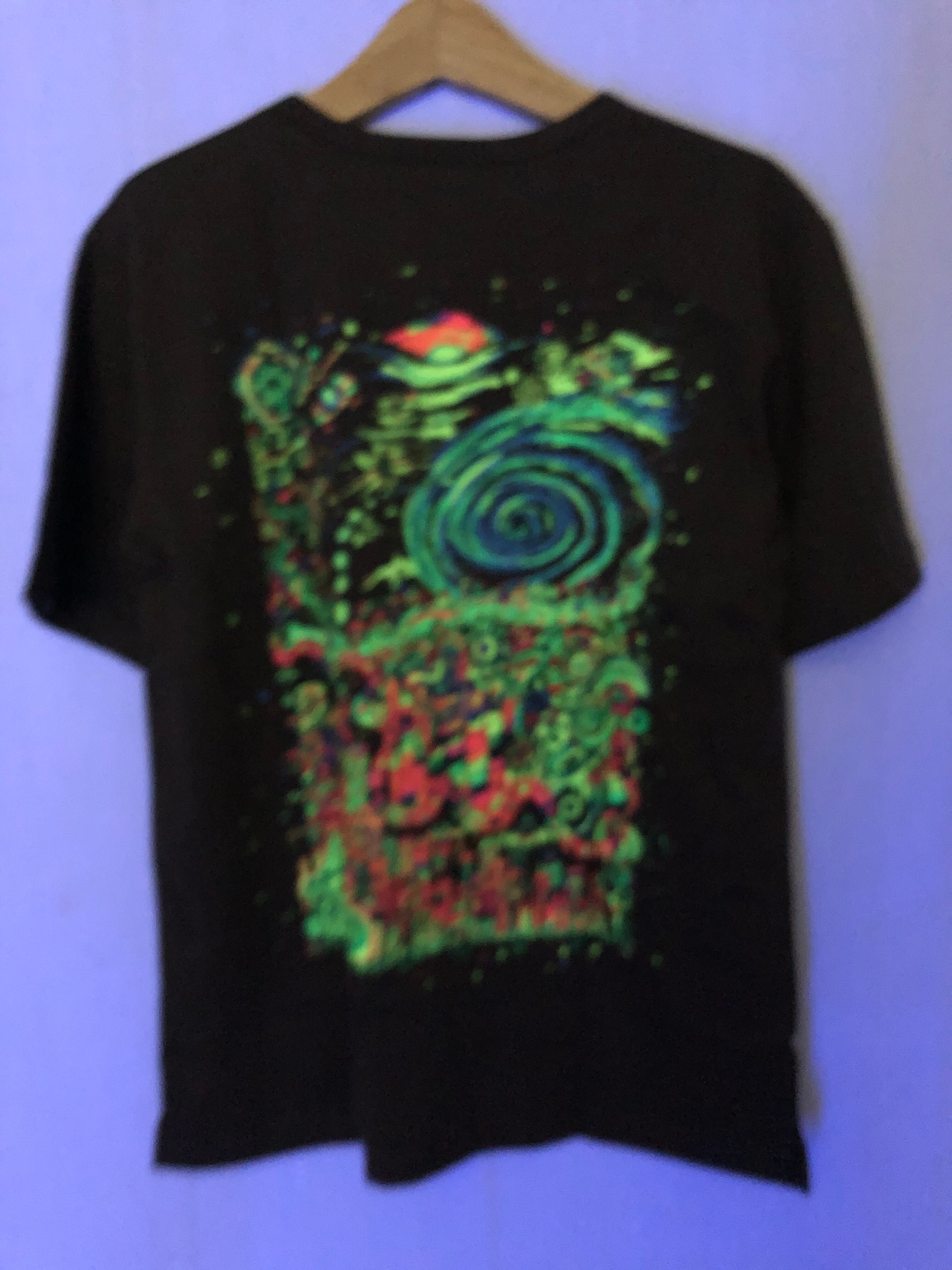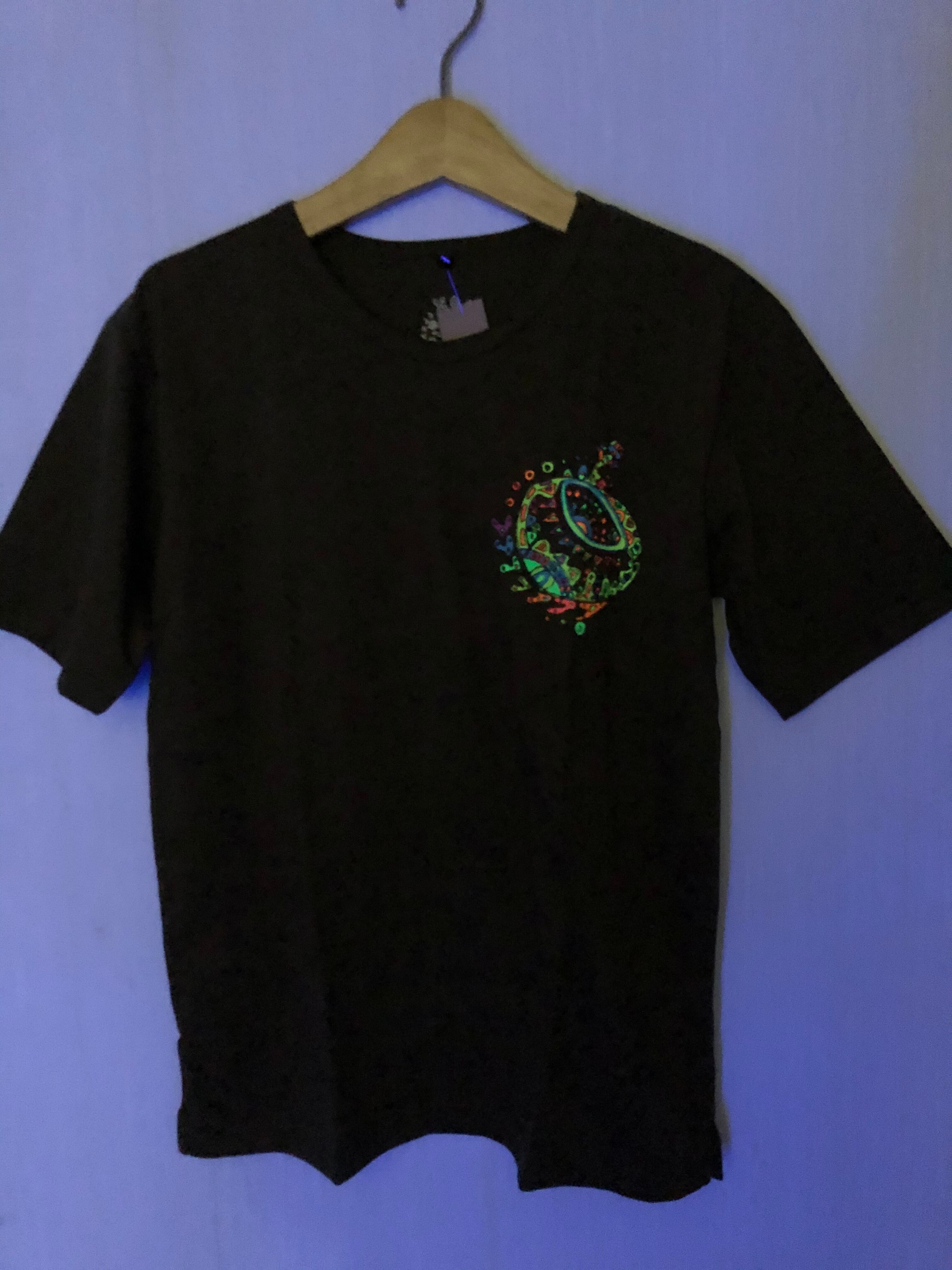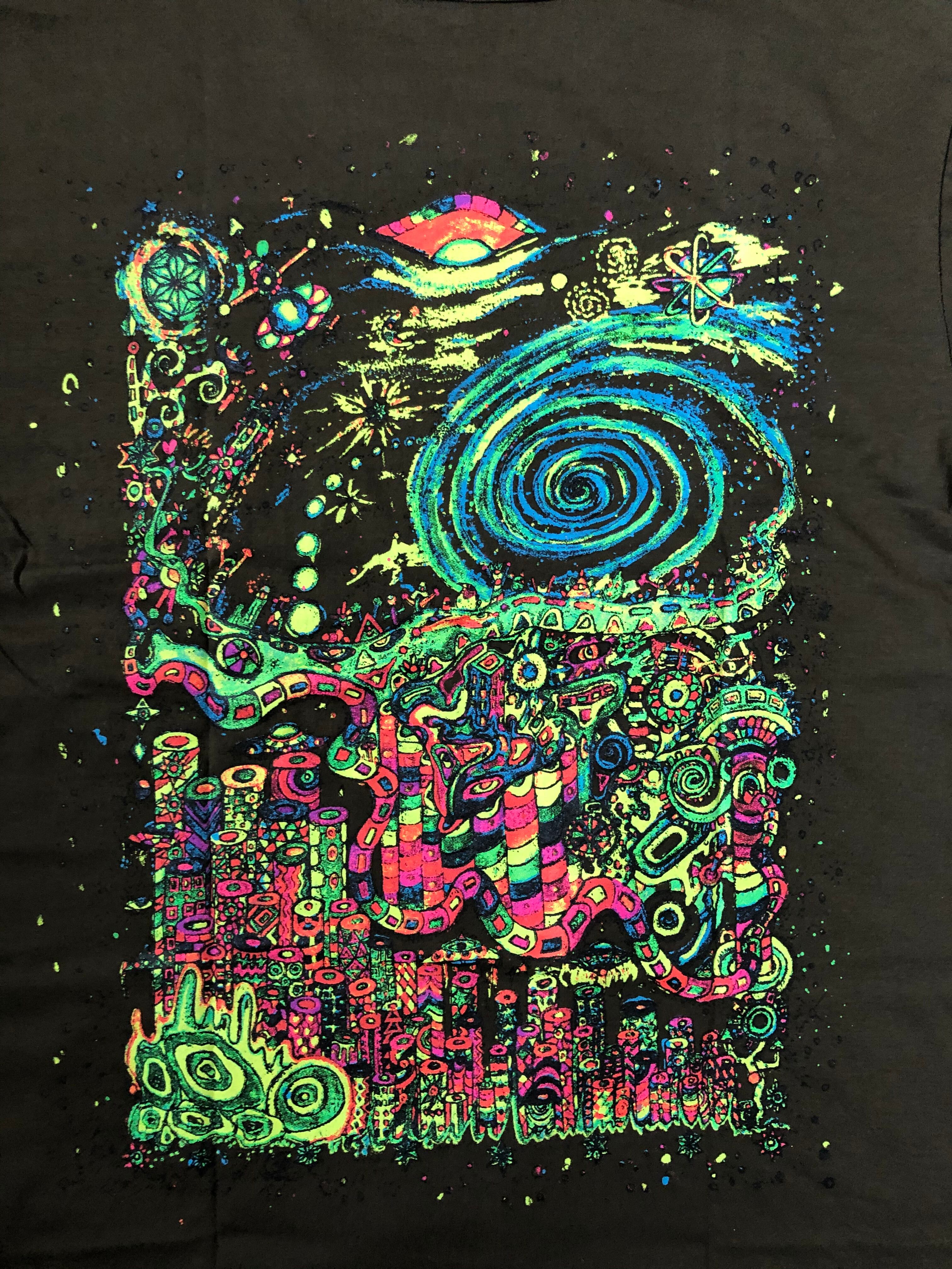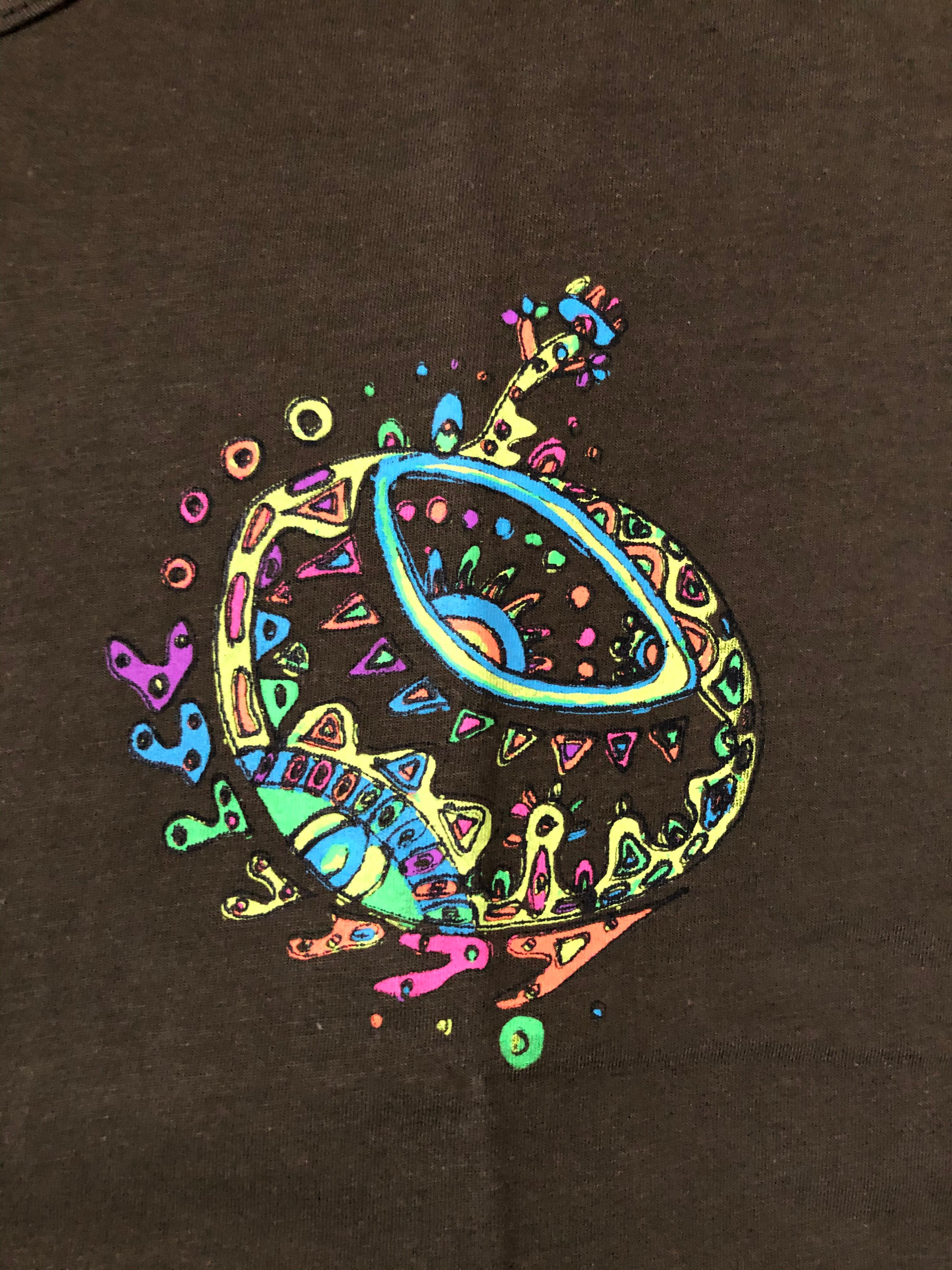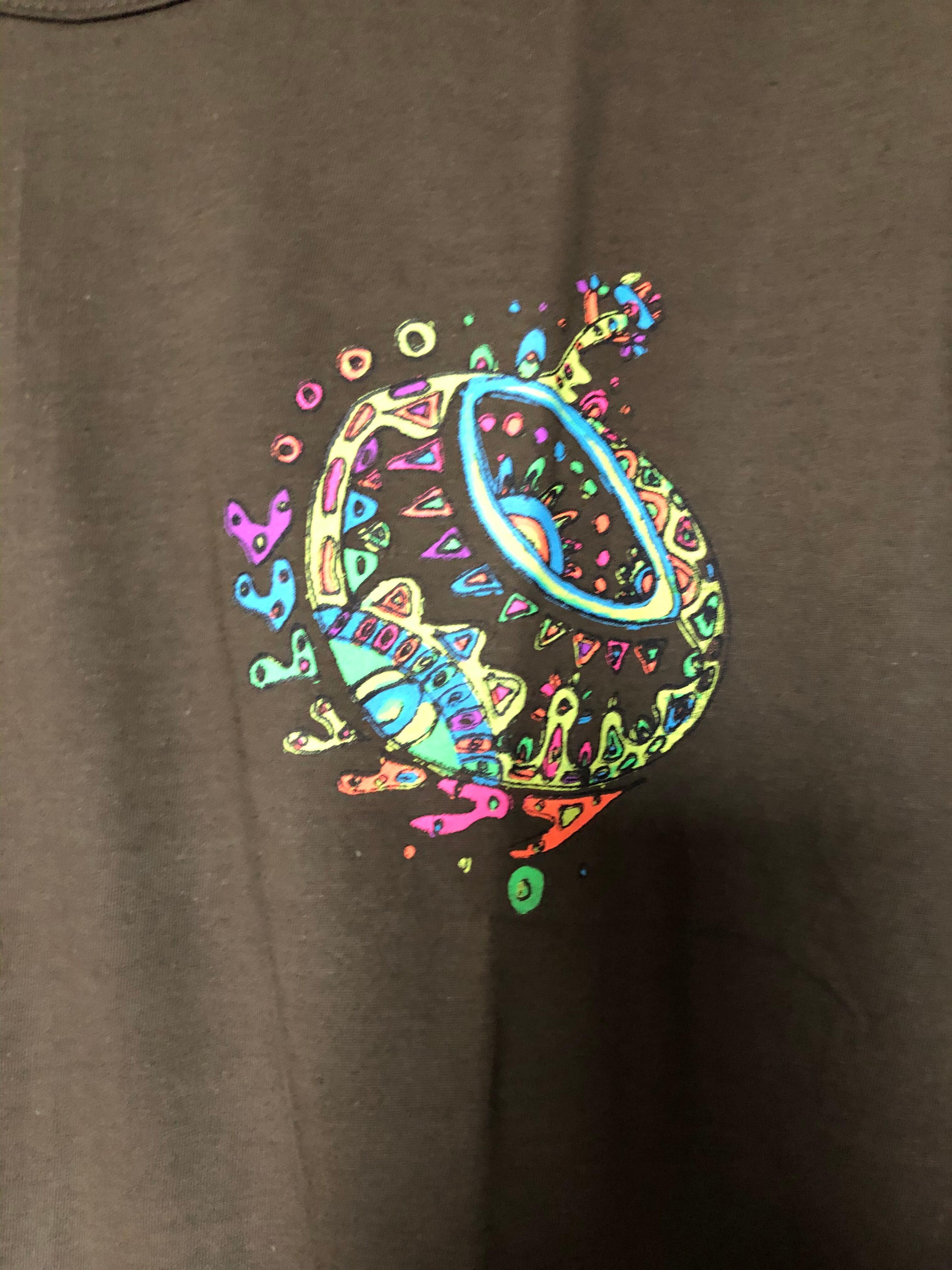 KOOオリジナルTシャツで D M Tアートのモチーフプリントがしてあります。