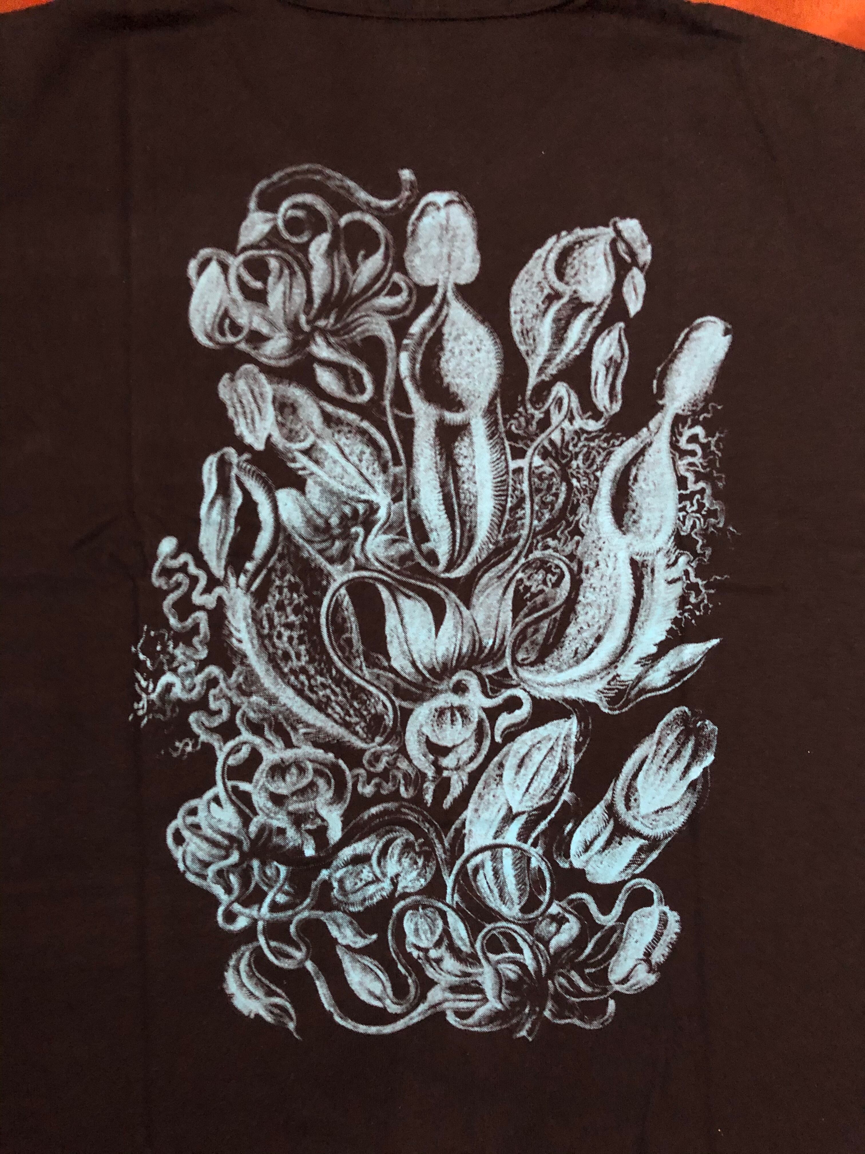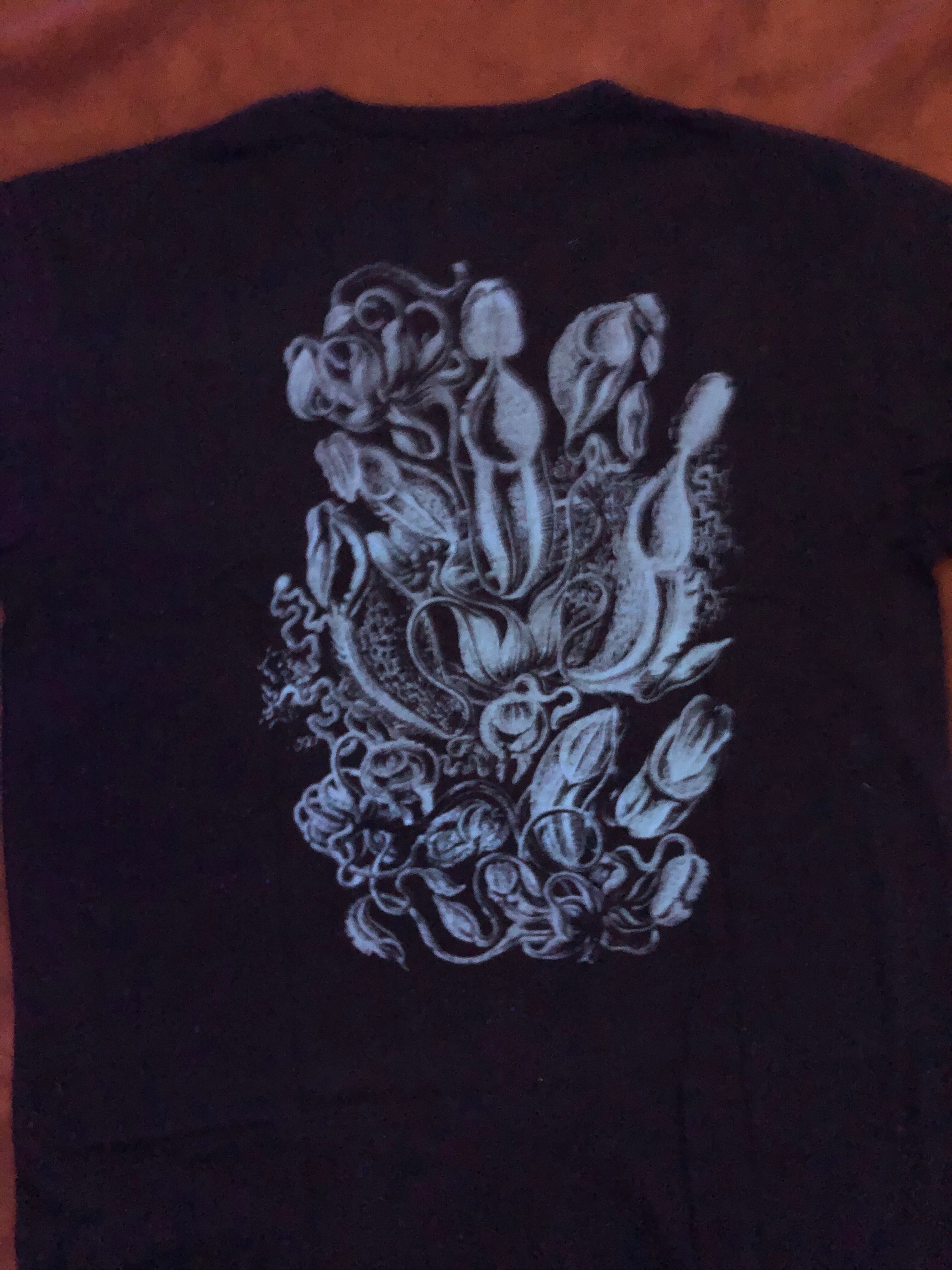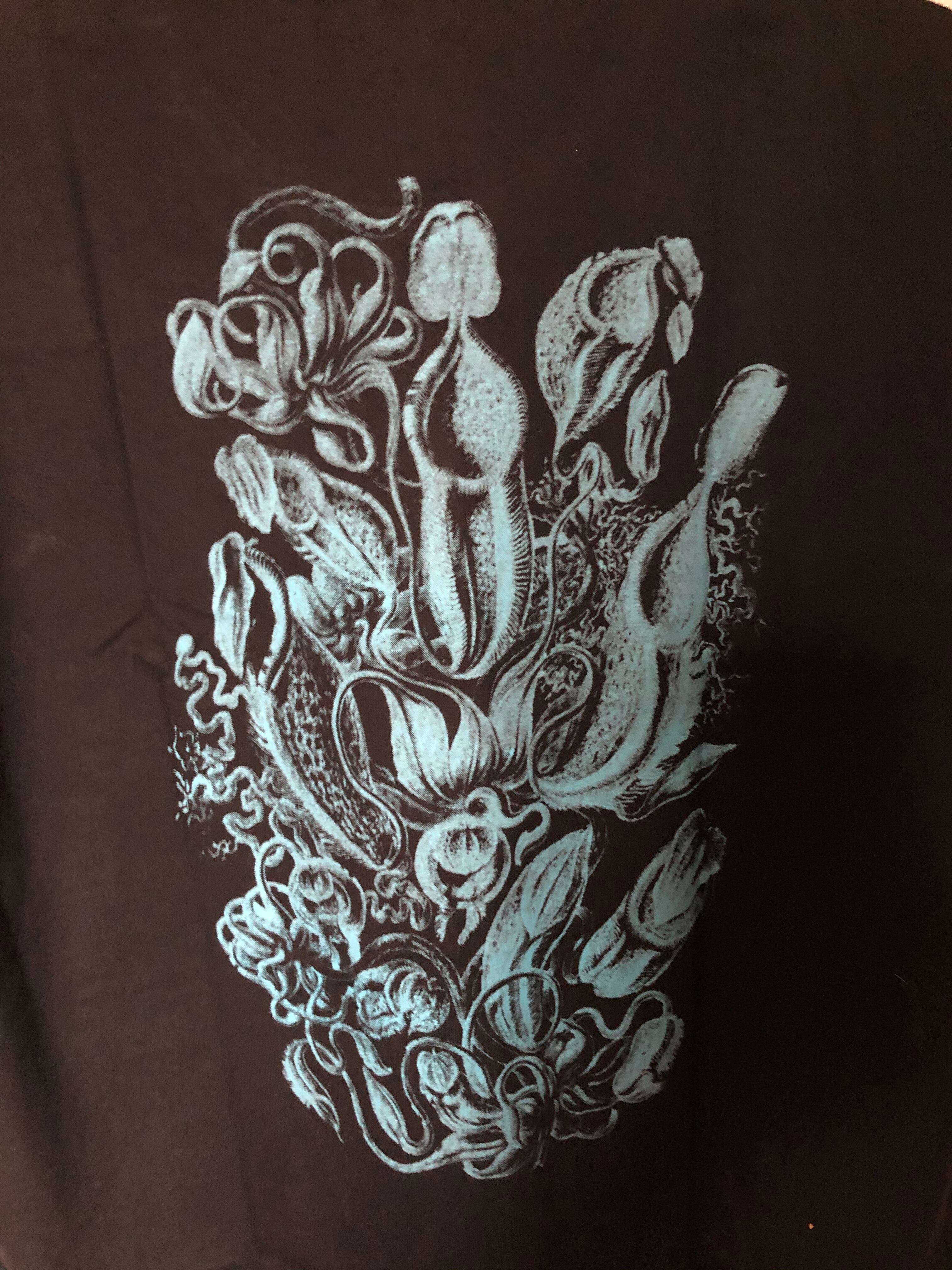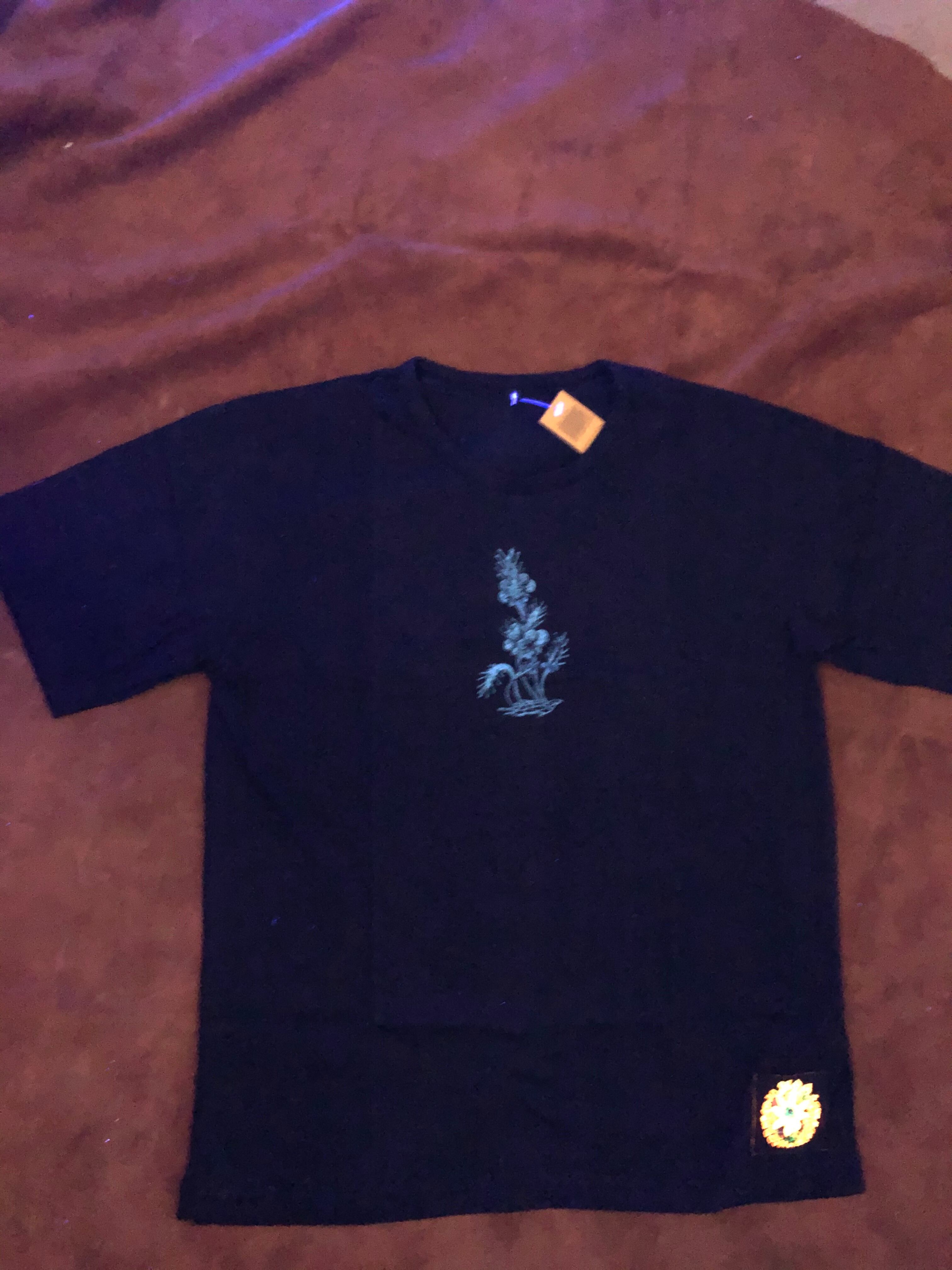ブラックの生地にブルーのプリントが入ってます。ブラックライトで少しだけ光ります。