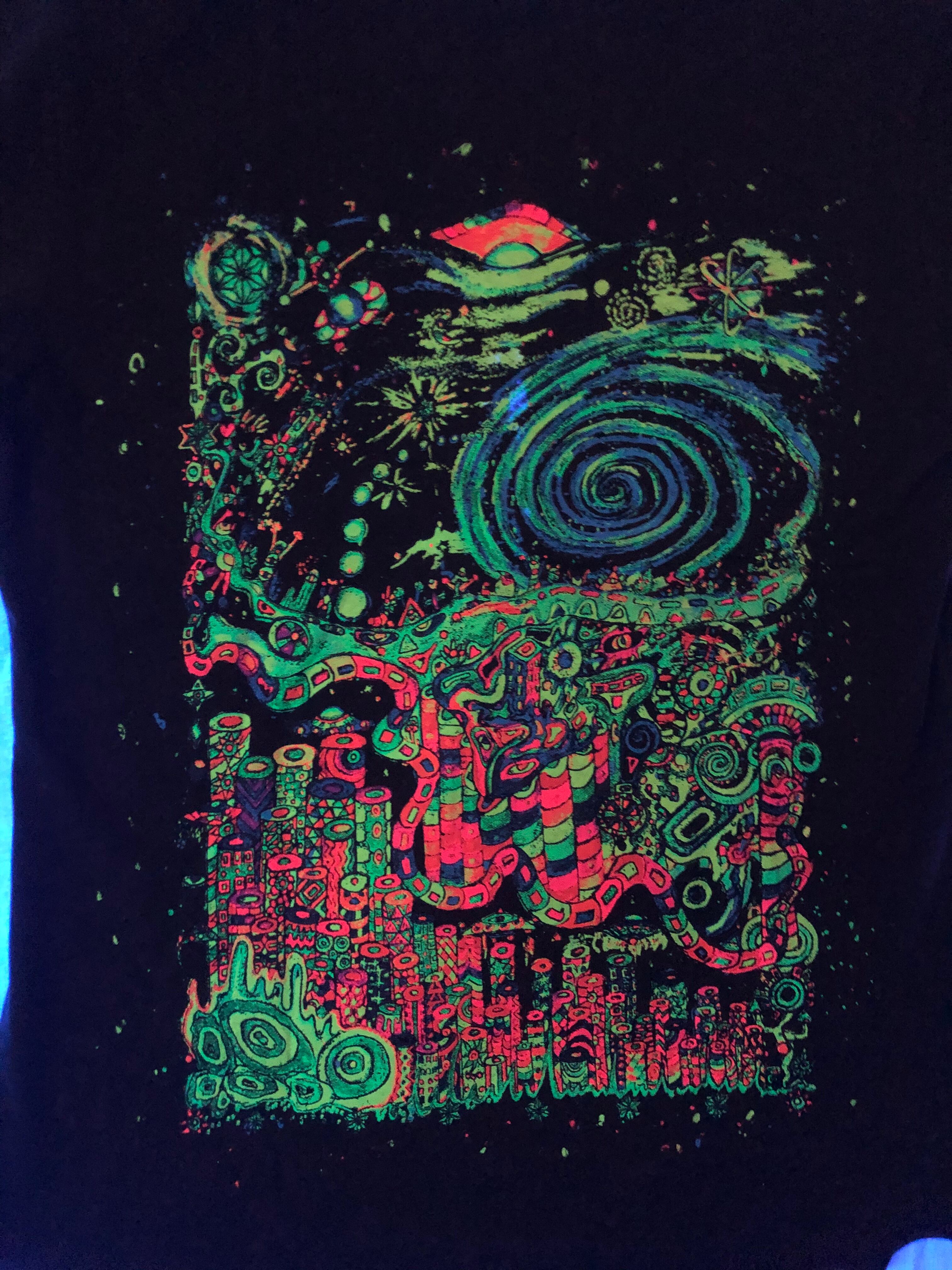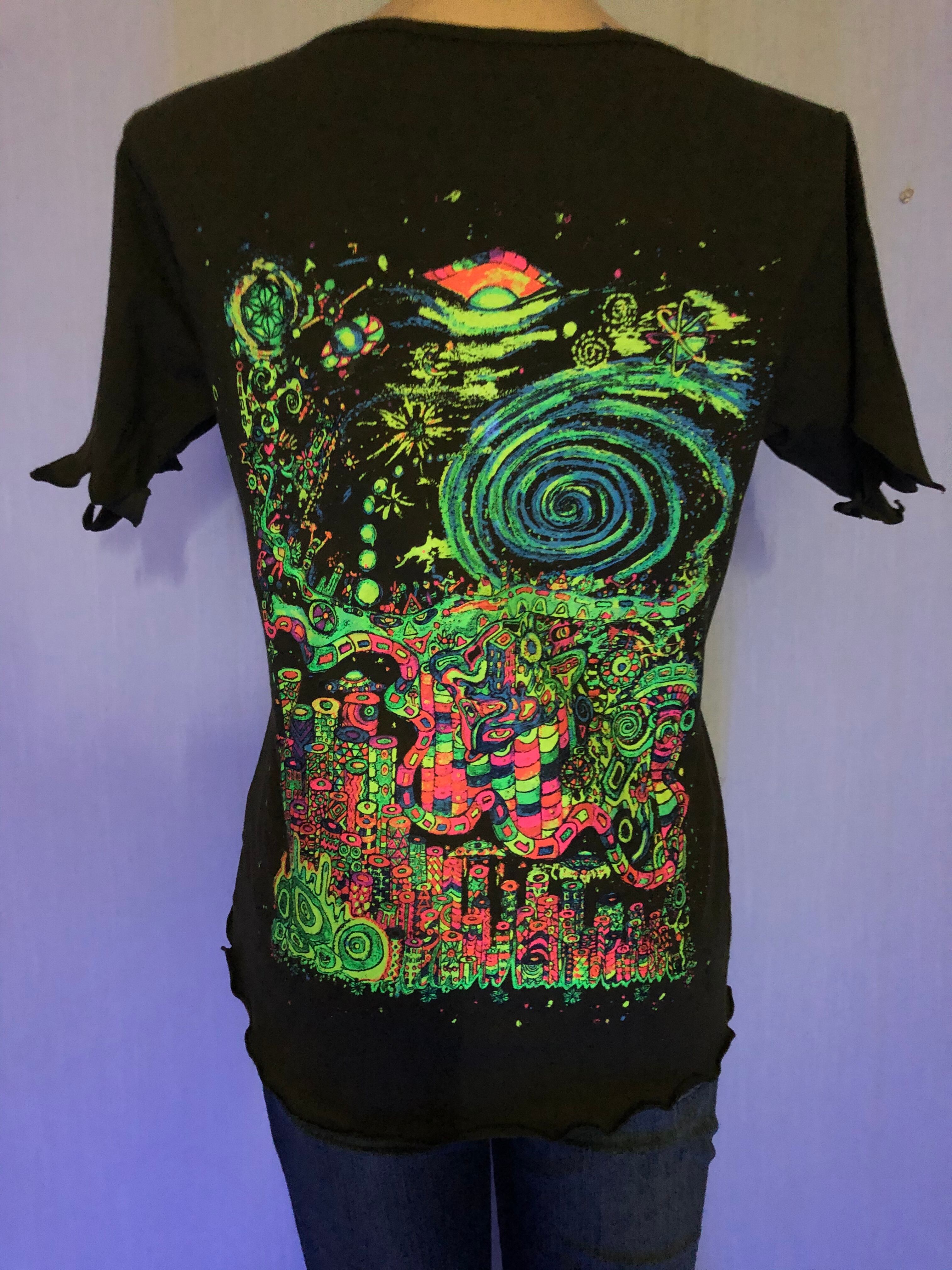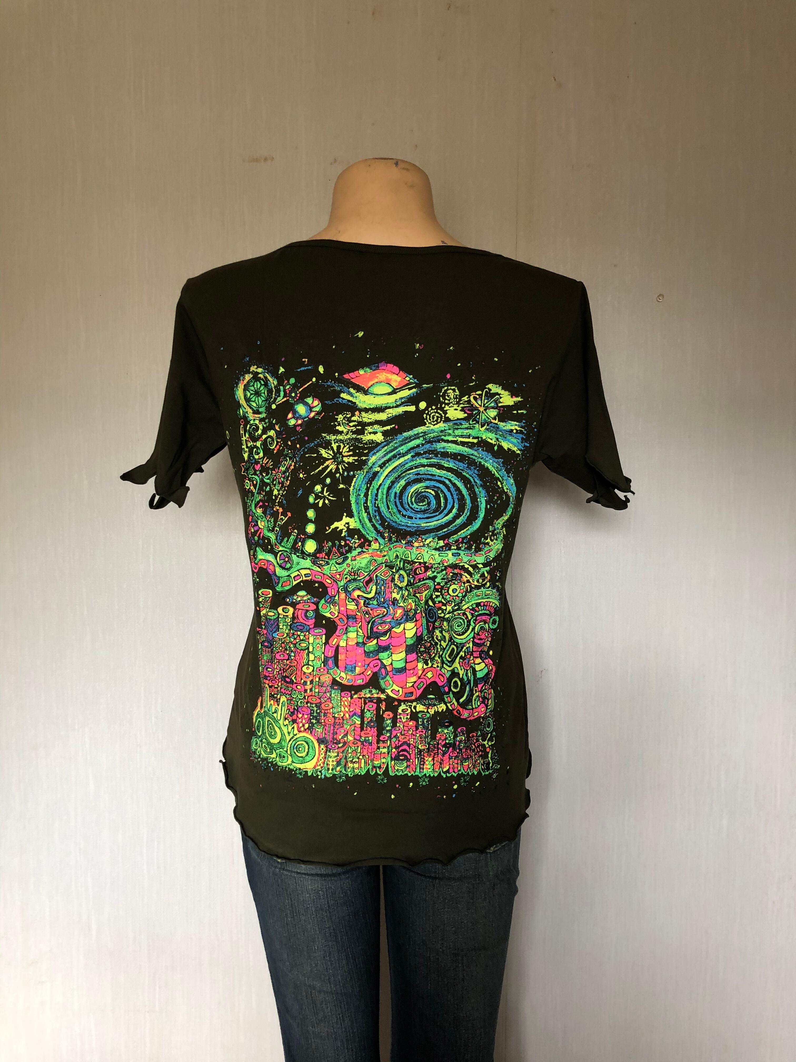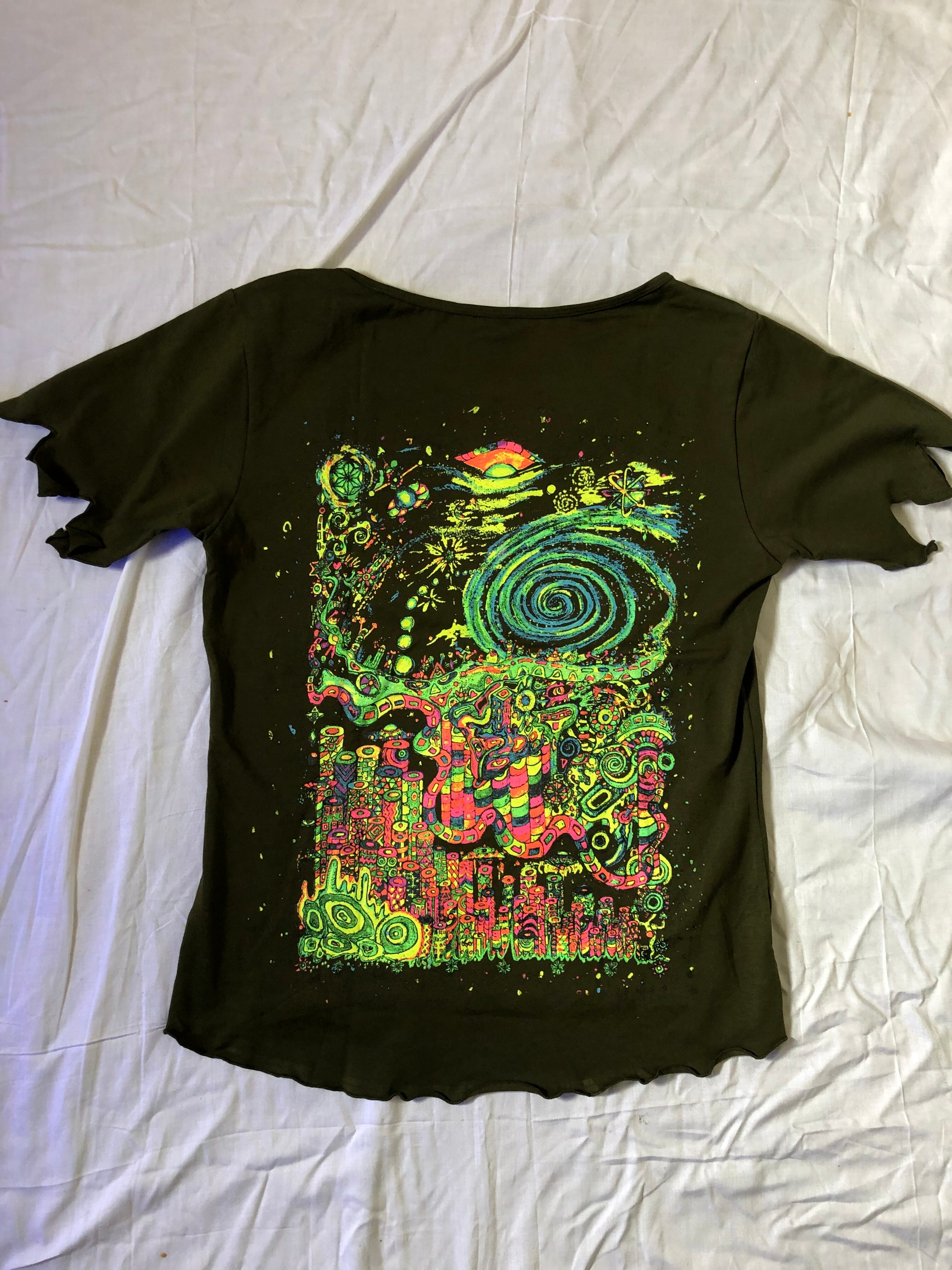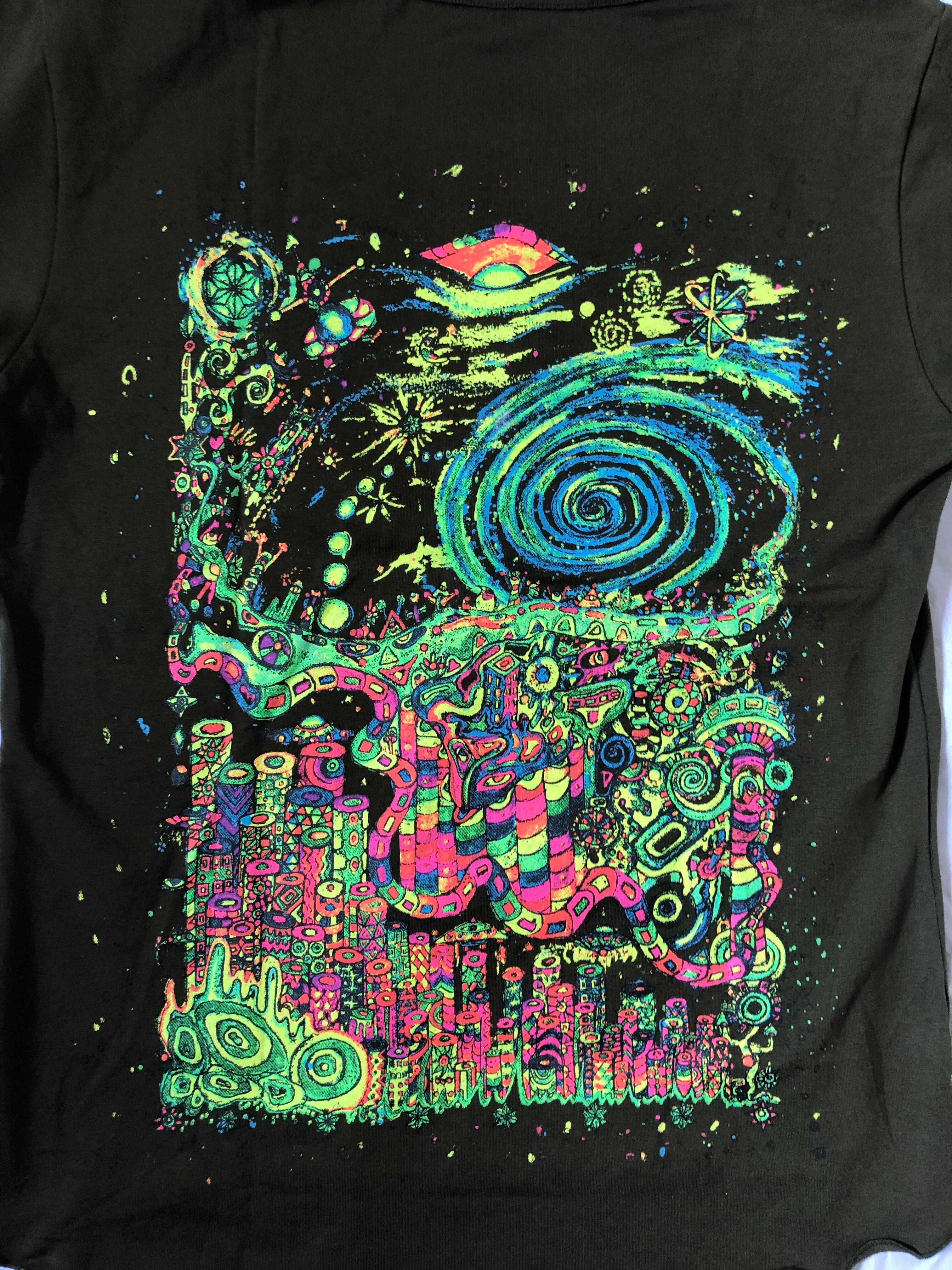 #サイケデリック #レイブ #パーティー #イベント # D M Tアート #KOO #オリジナル #カーキTシャツ #ブラックライト #レディースTシャツ #サイケ #シルクスクリーン #半袖