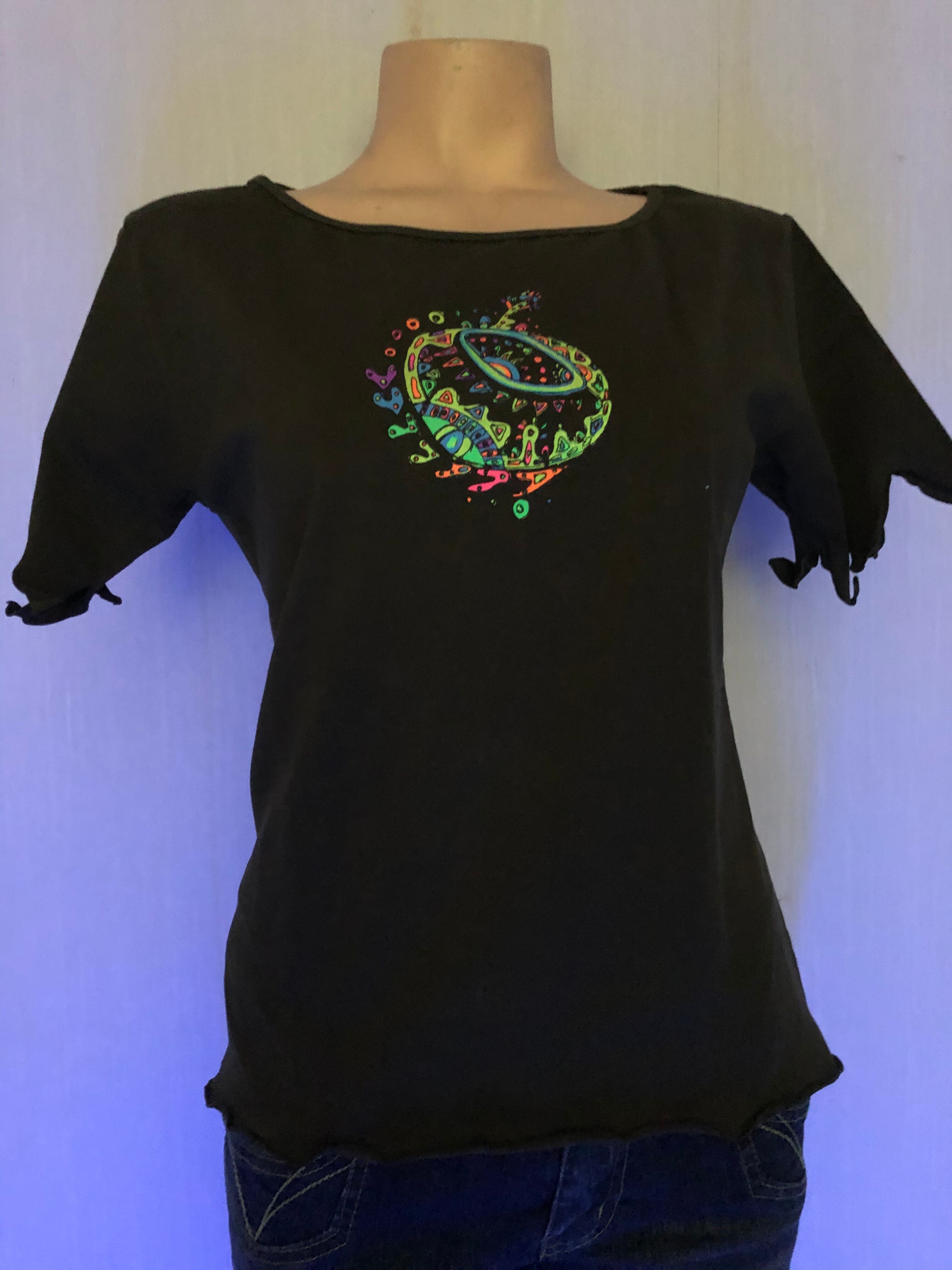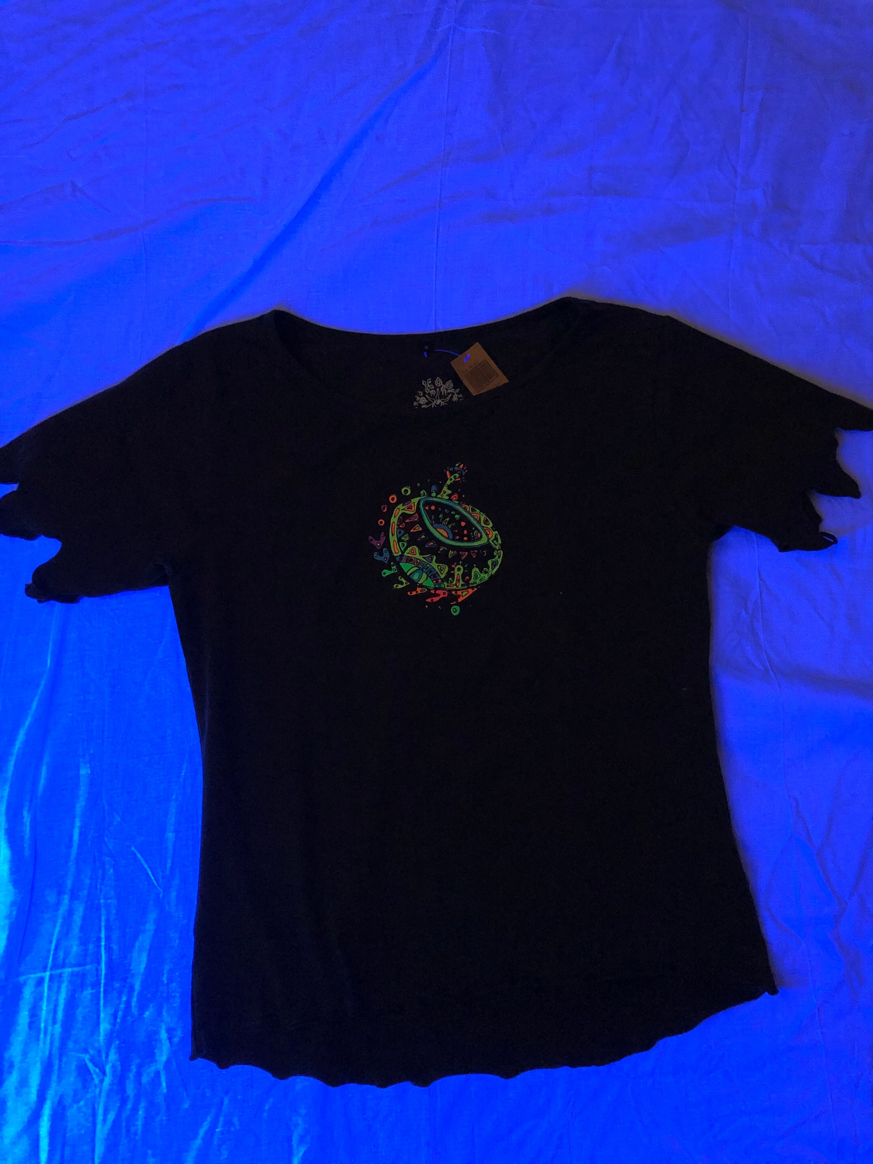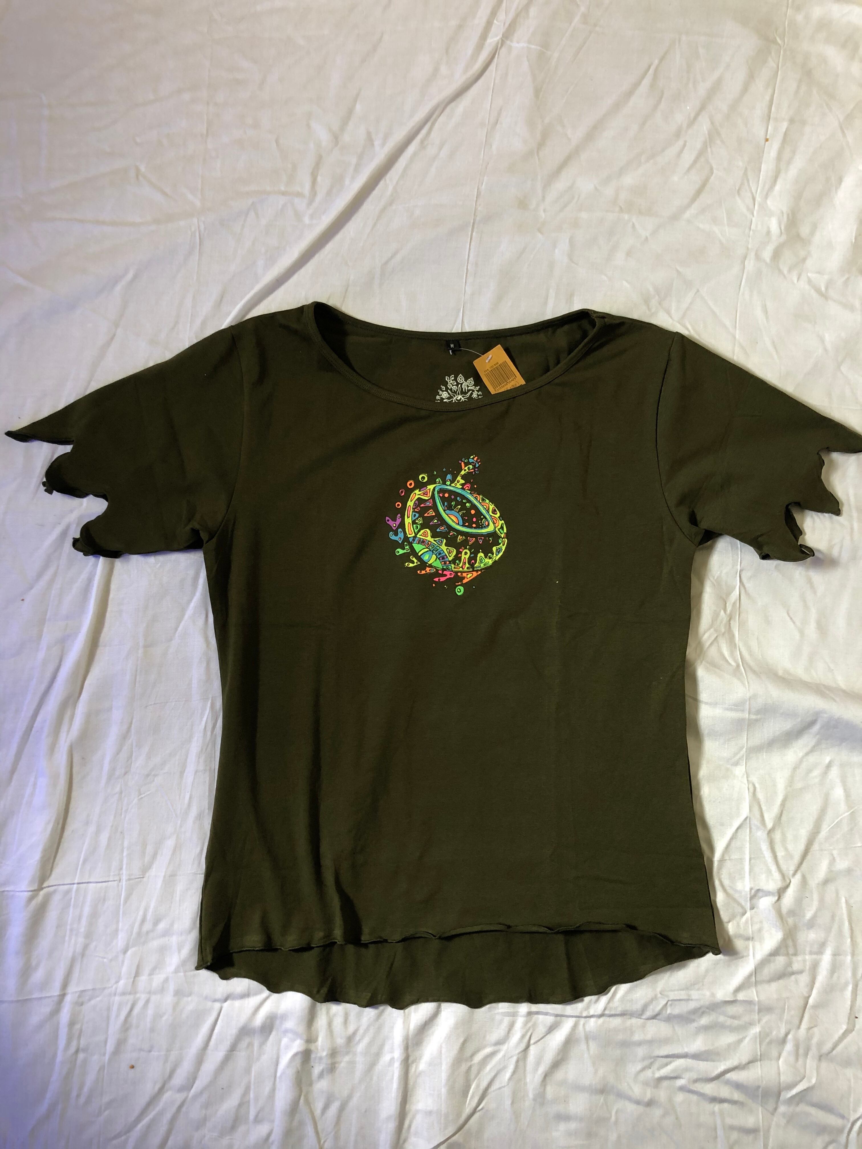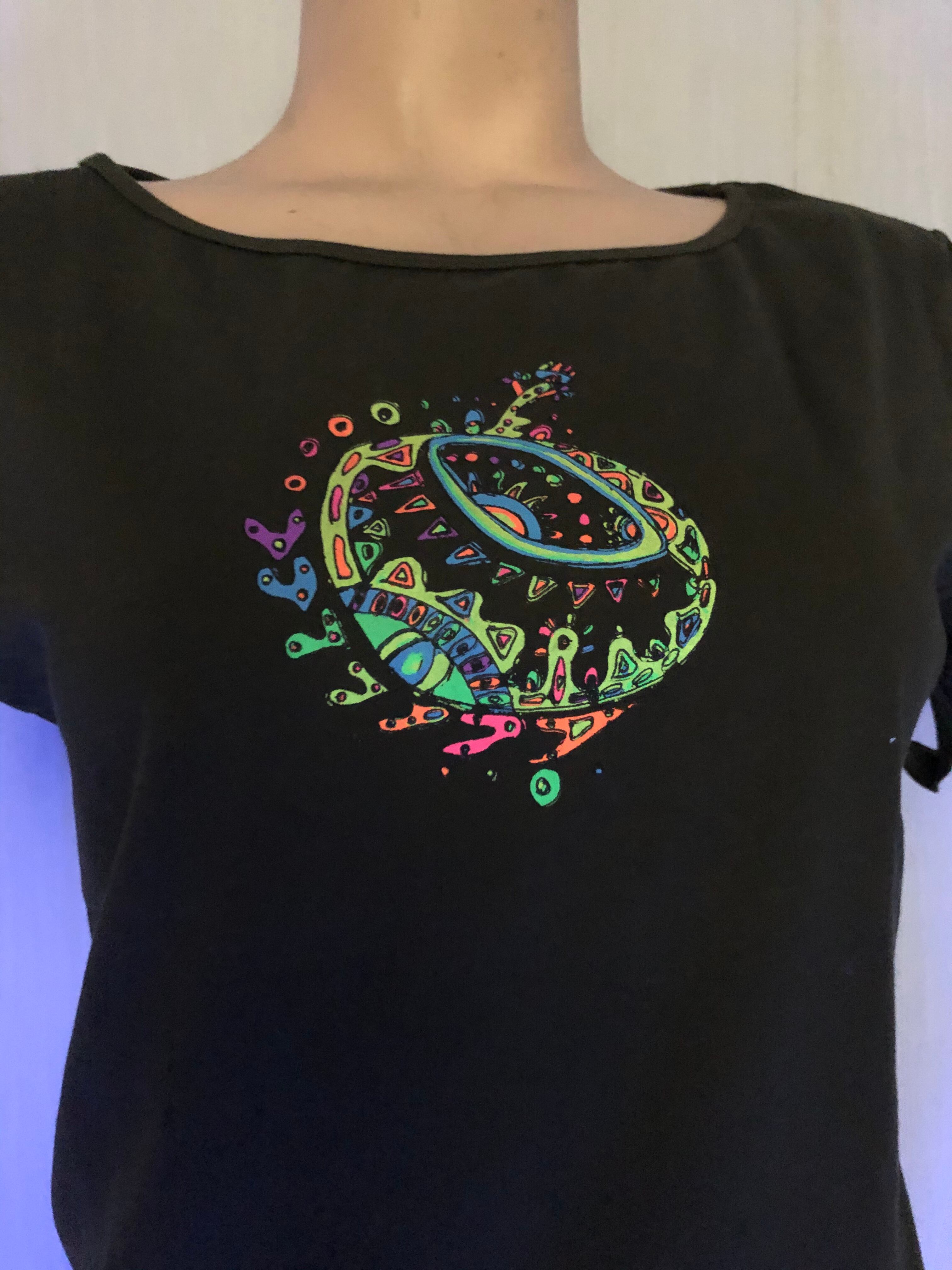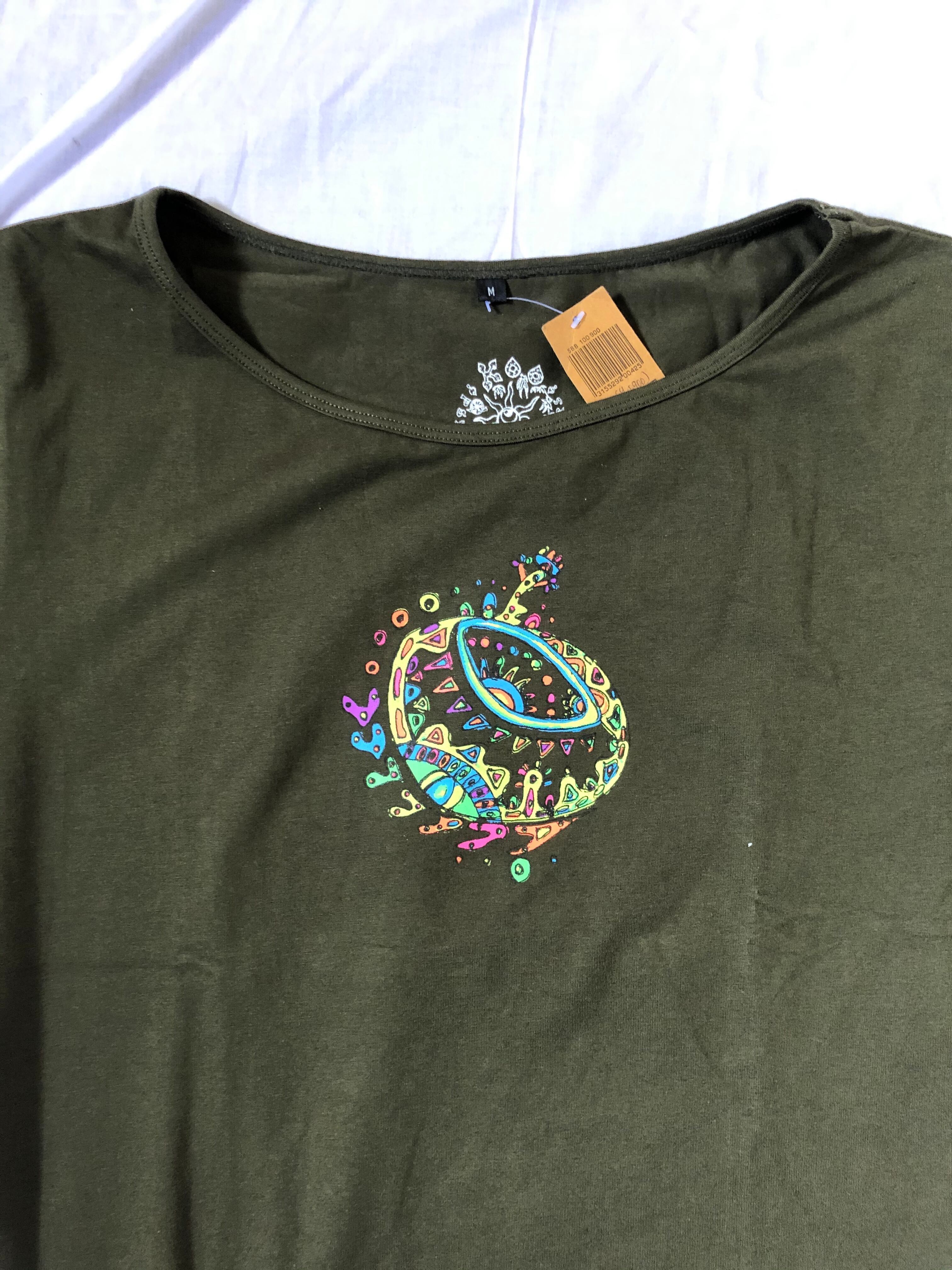 #サイケデリック #レイブ #パーティー #イベント # D M Tアート #KOO #オリジナル #カーキTシャツ #ブラックライト #レディースTシャツ #サイケ #シルクスクリーン #半袖