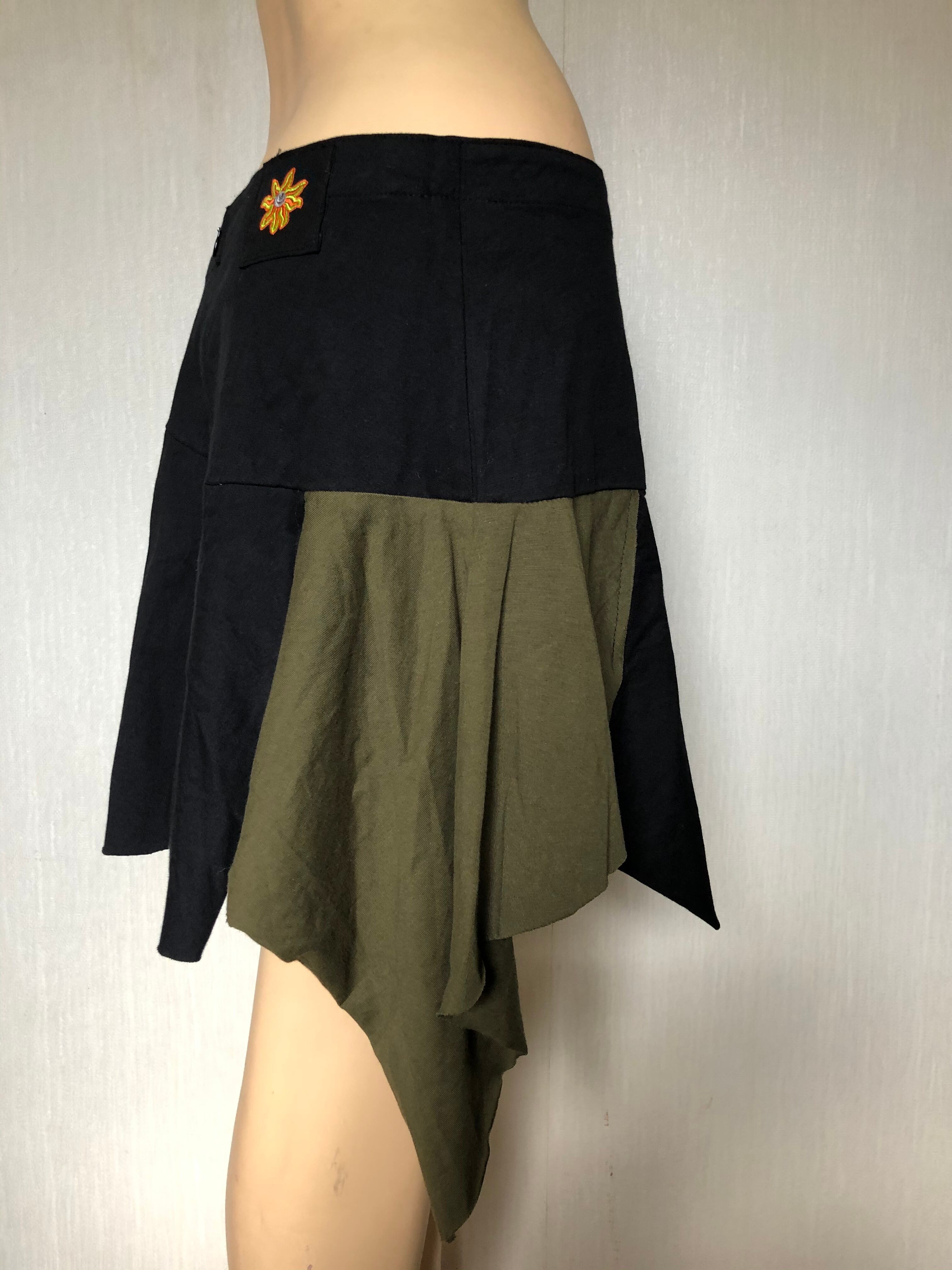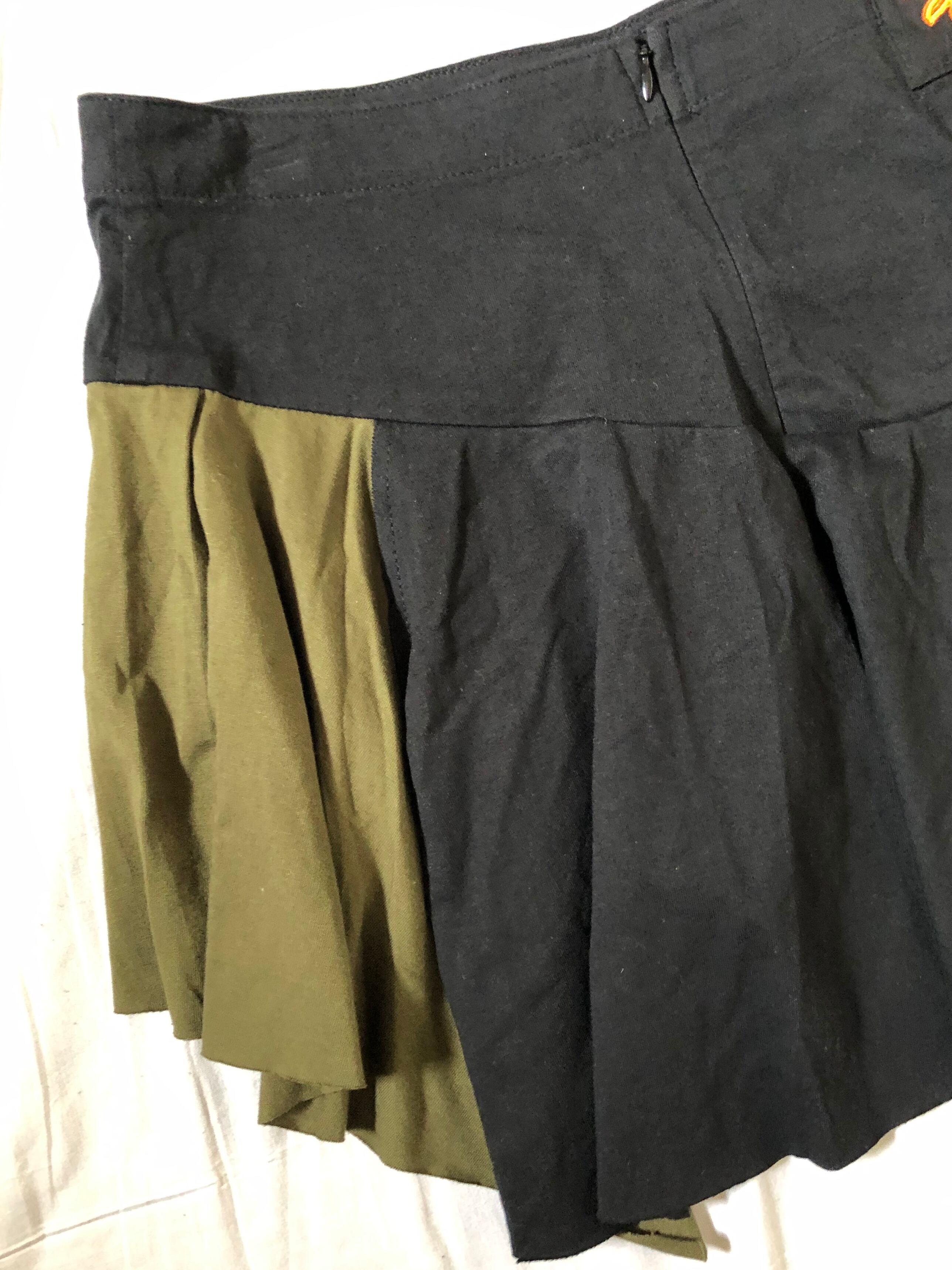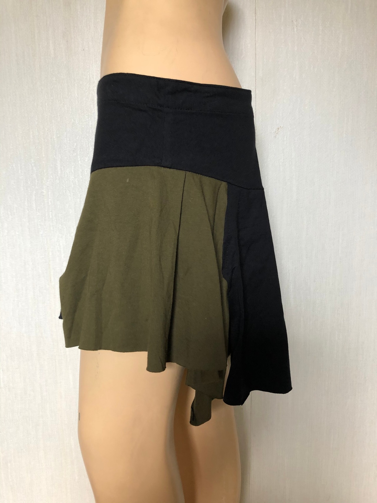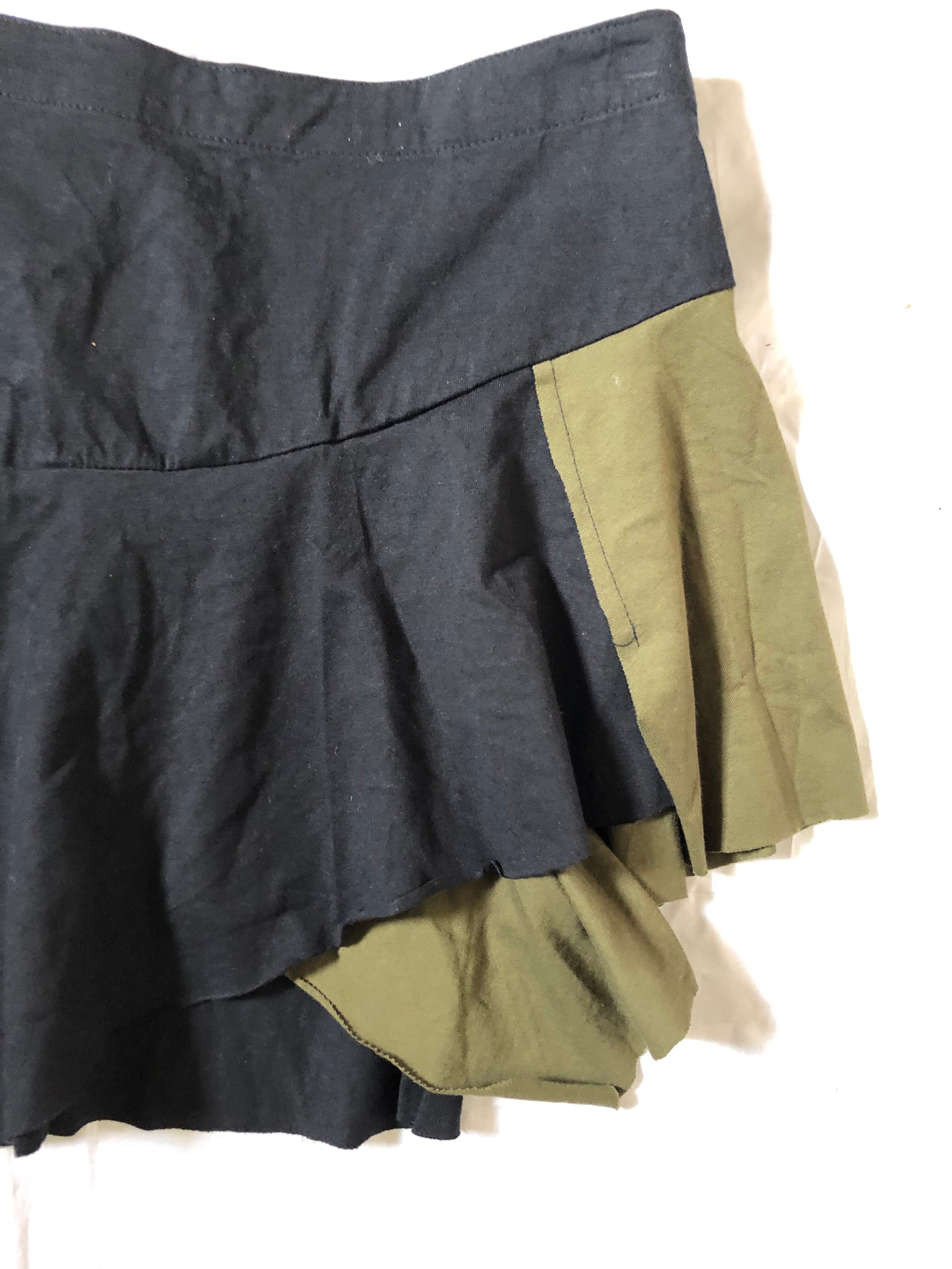 可愛いアシンメトリーです。一枚で履いても、パンツに合わせてもいい便利なスカートです。