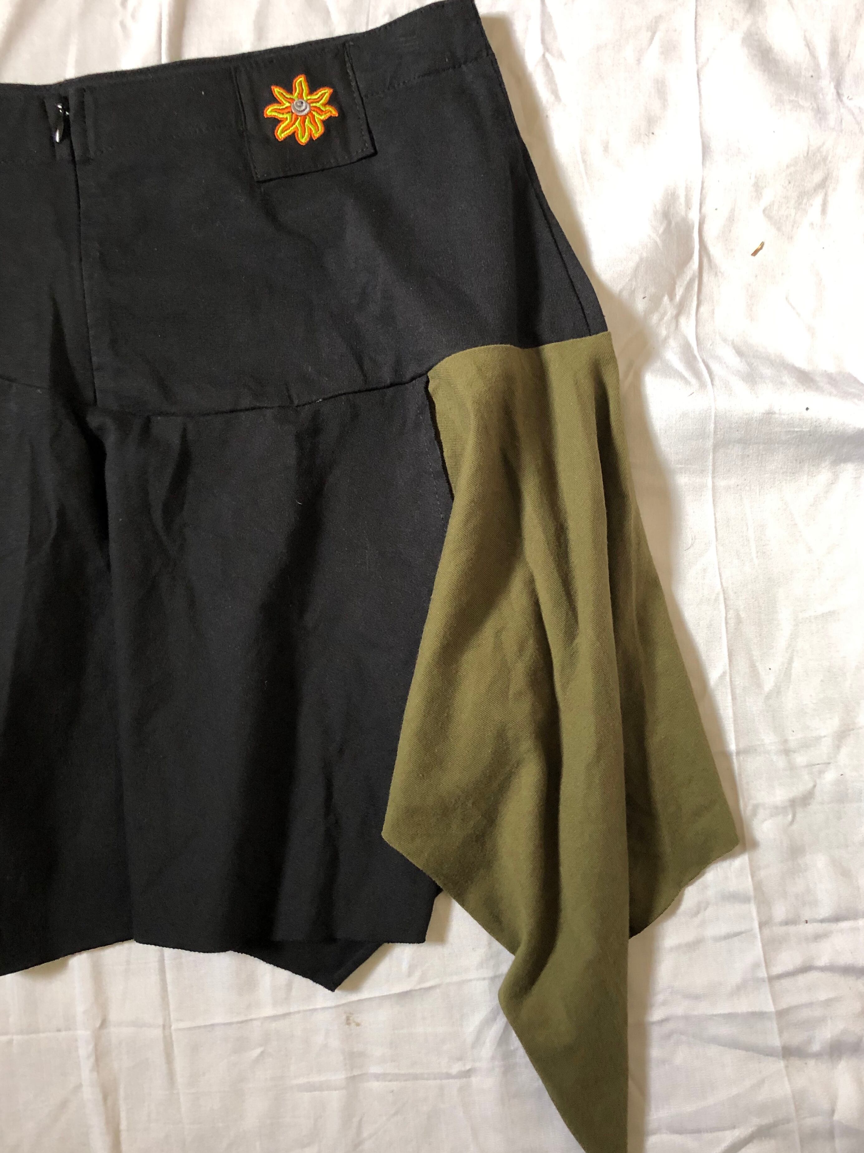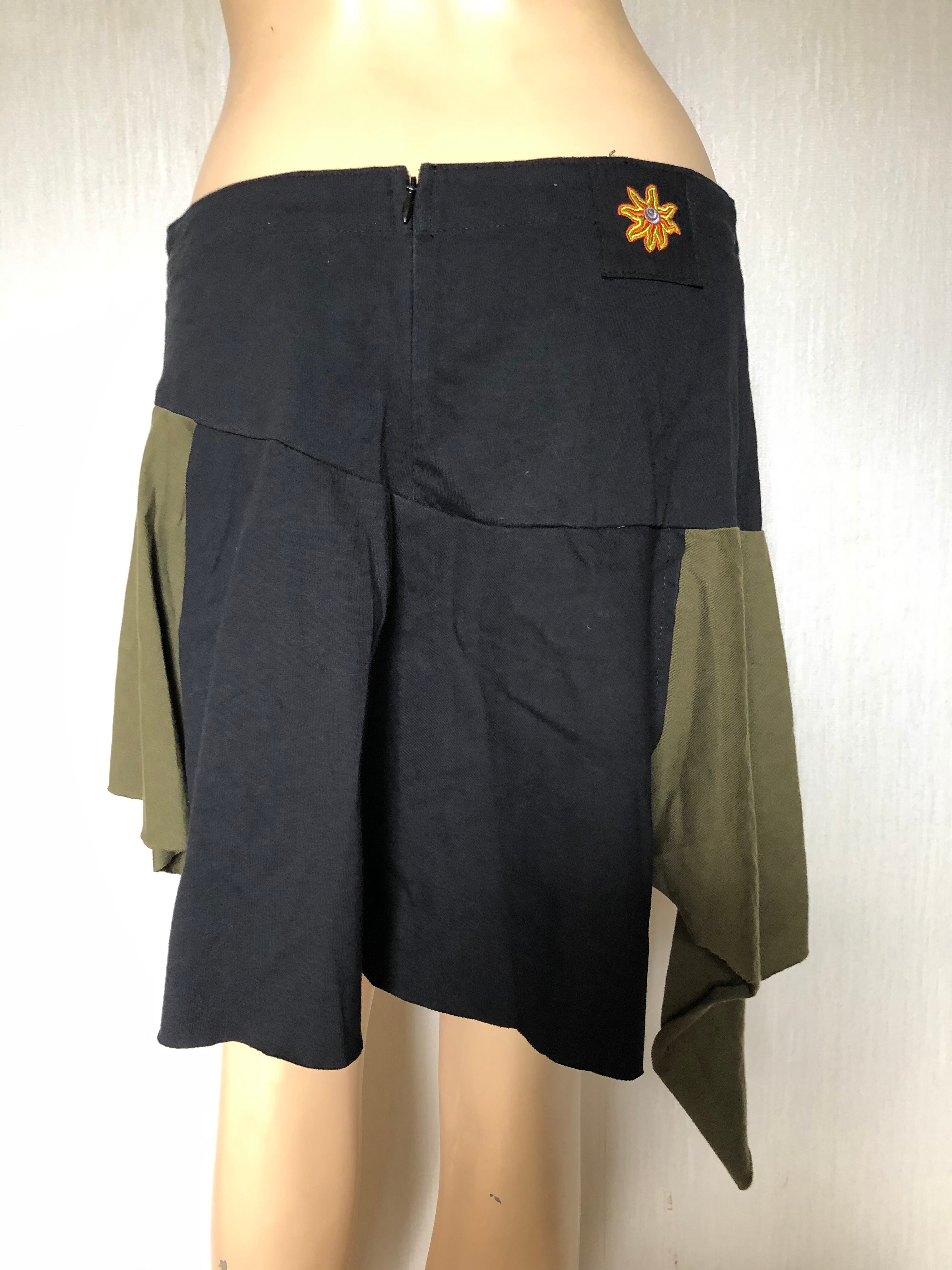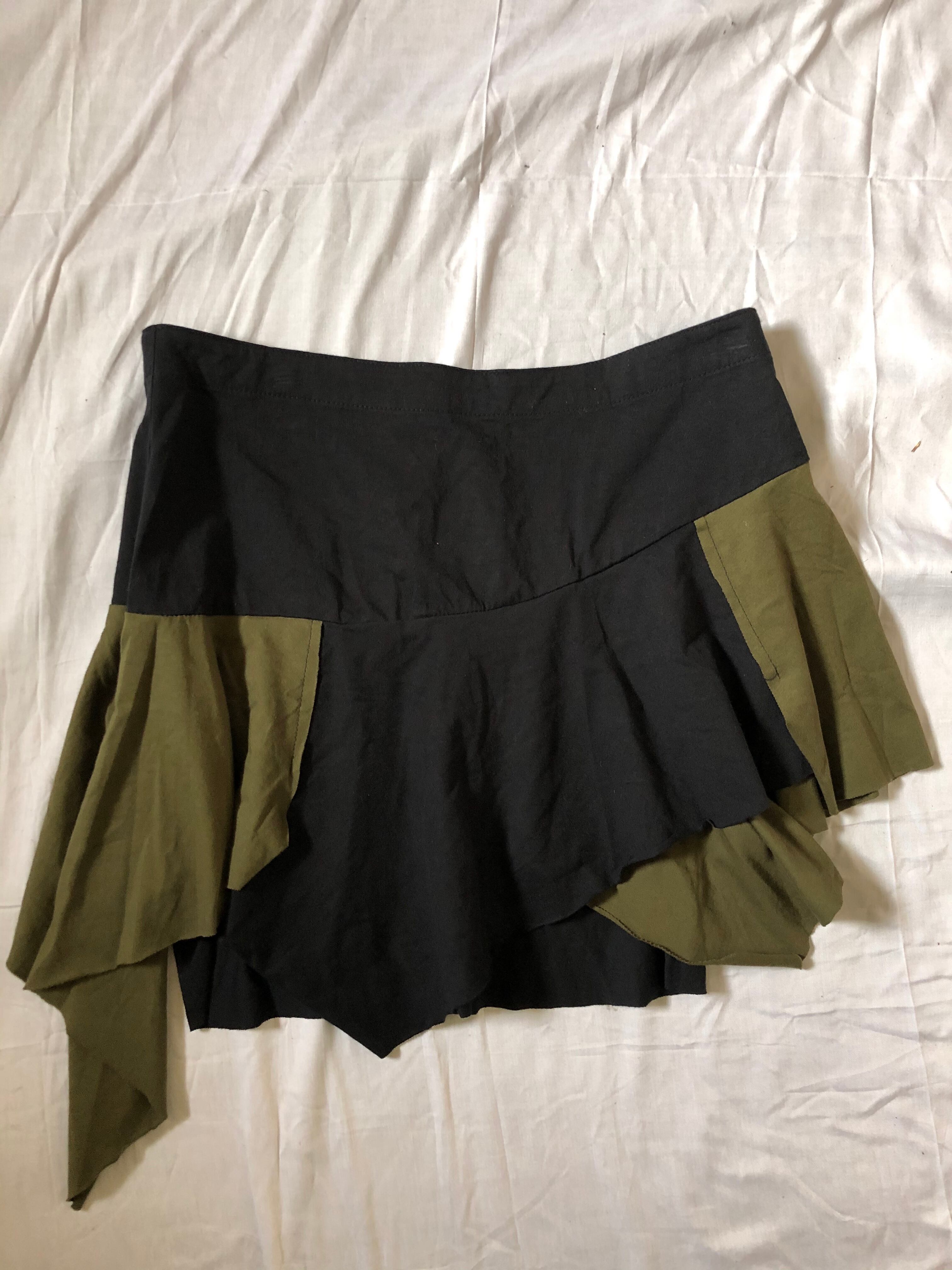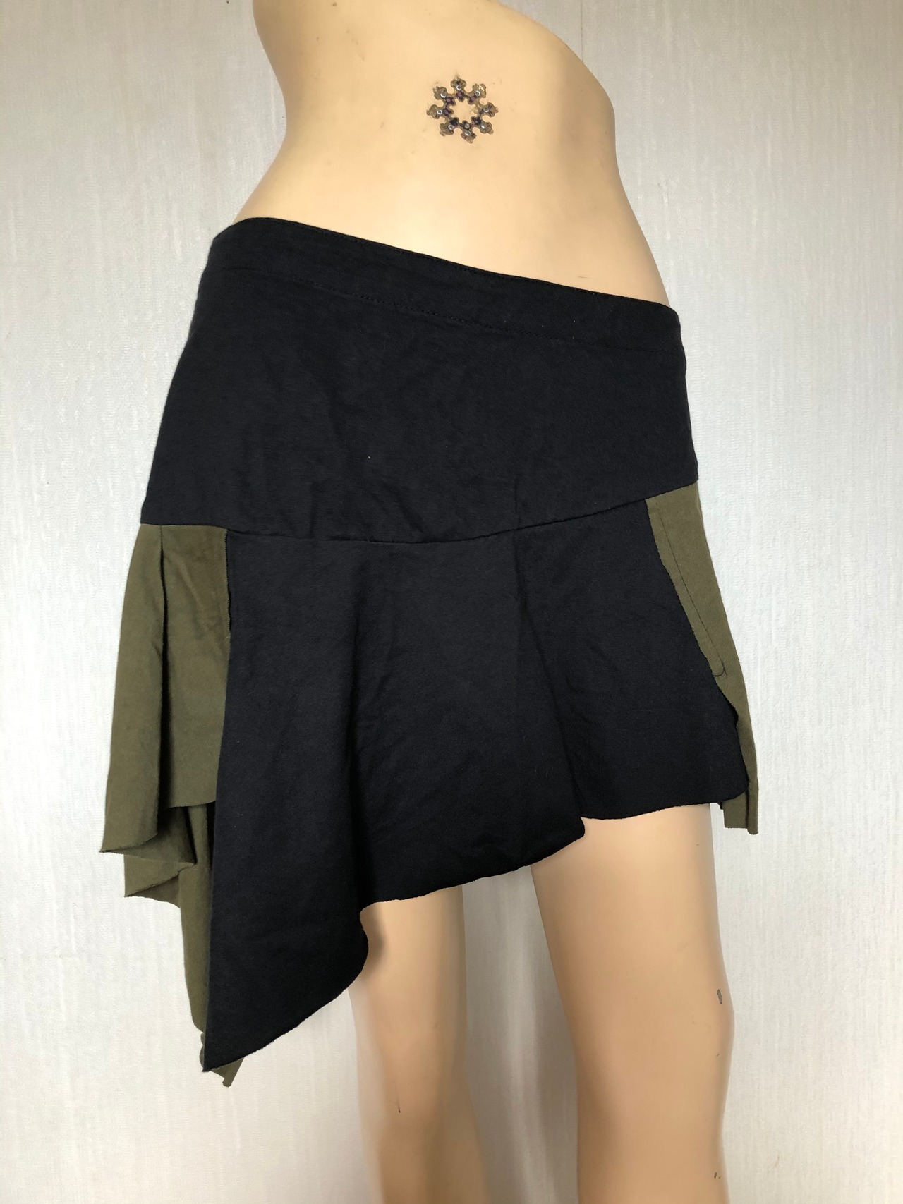 可愛いアシンメトリーです。一枚で履いても、パンツに合わせてもいい便利なスカートです。