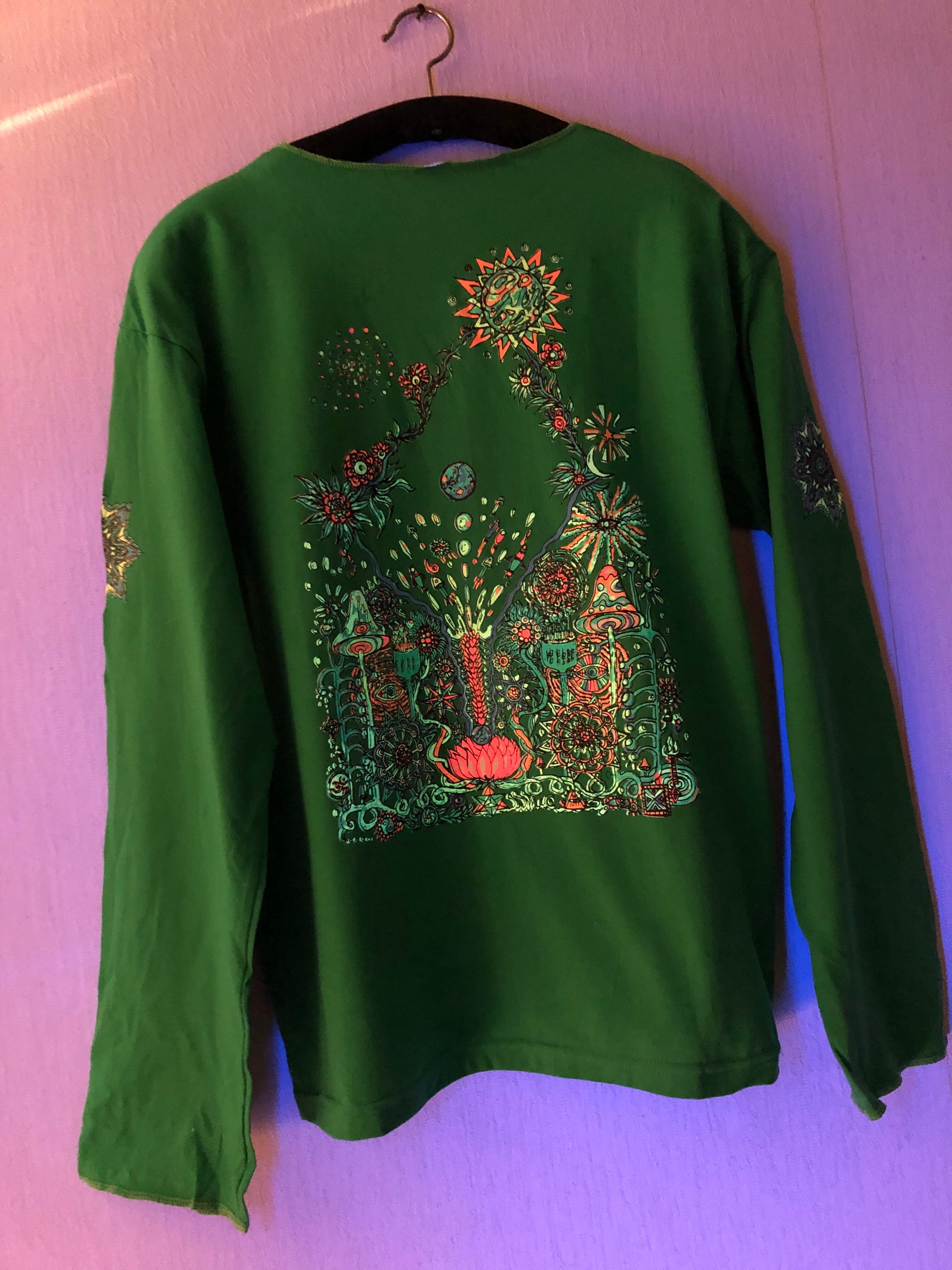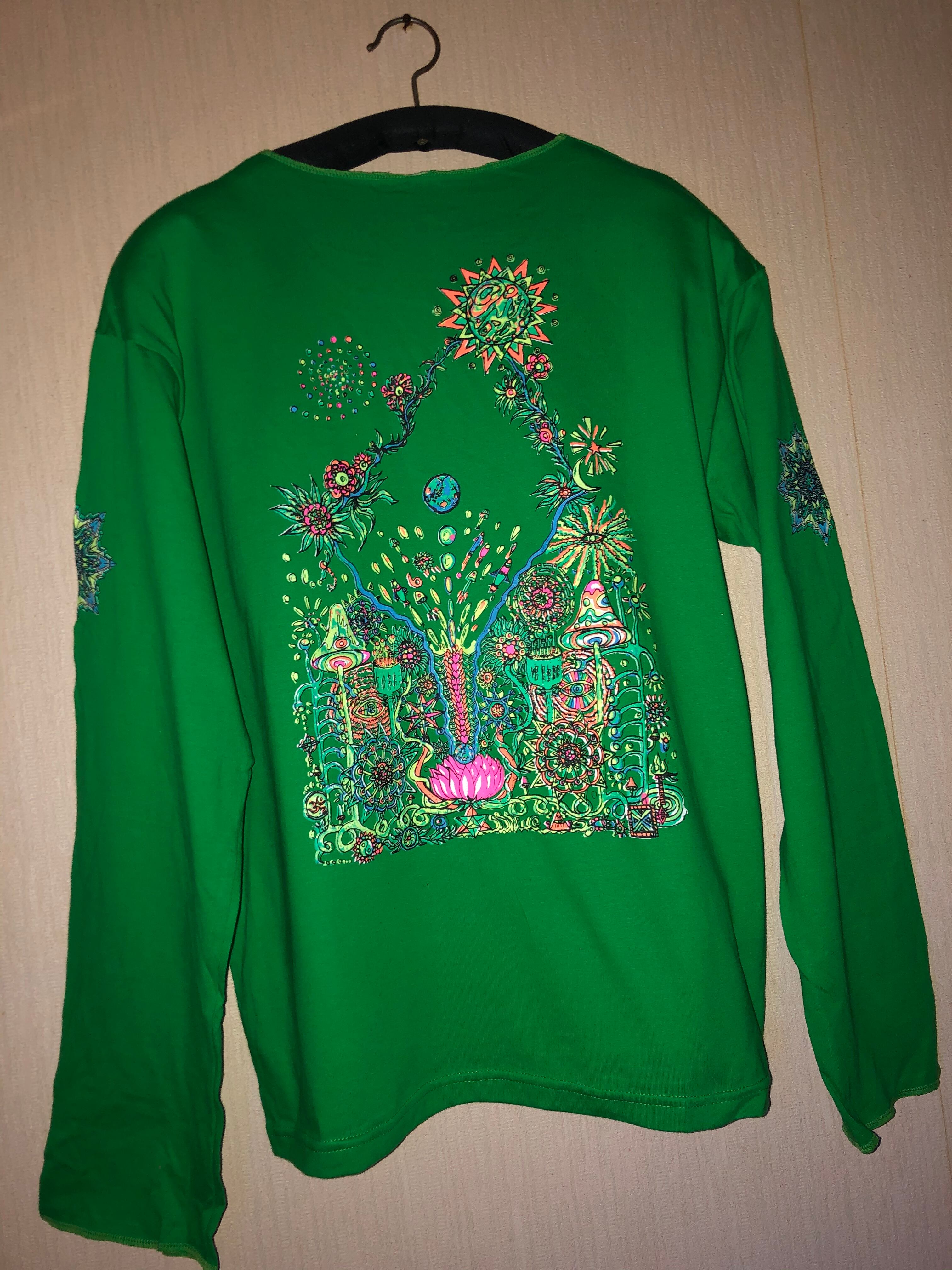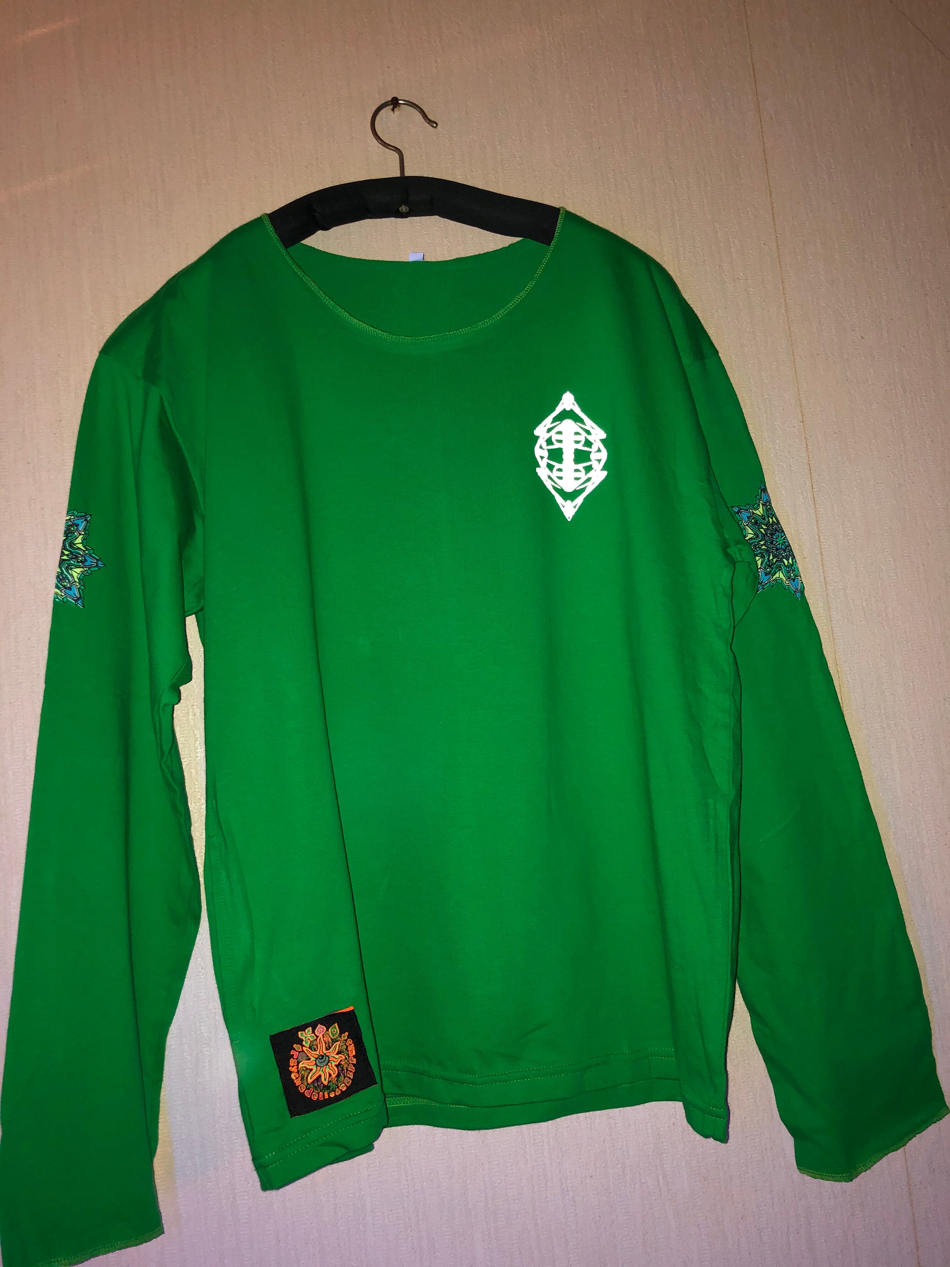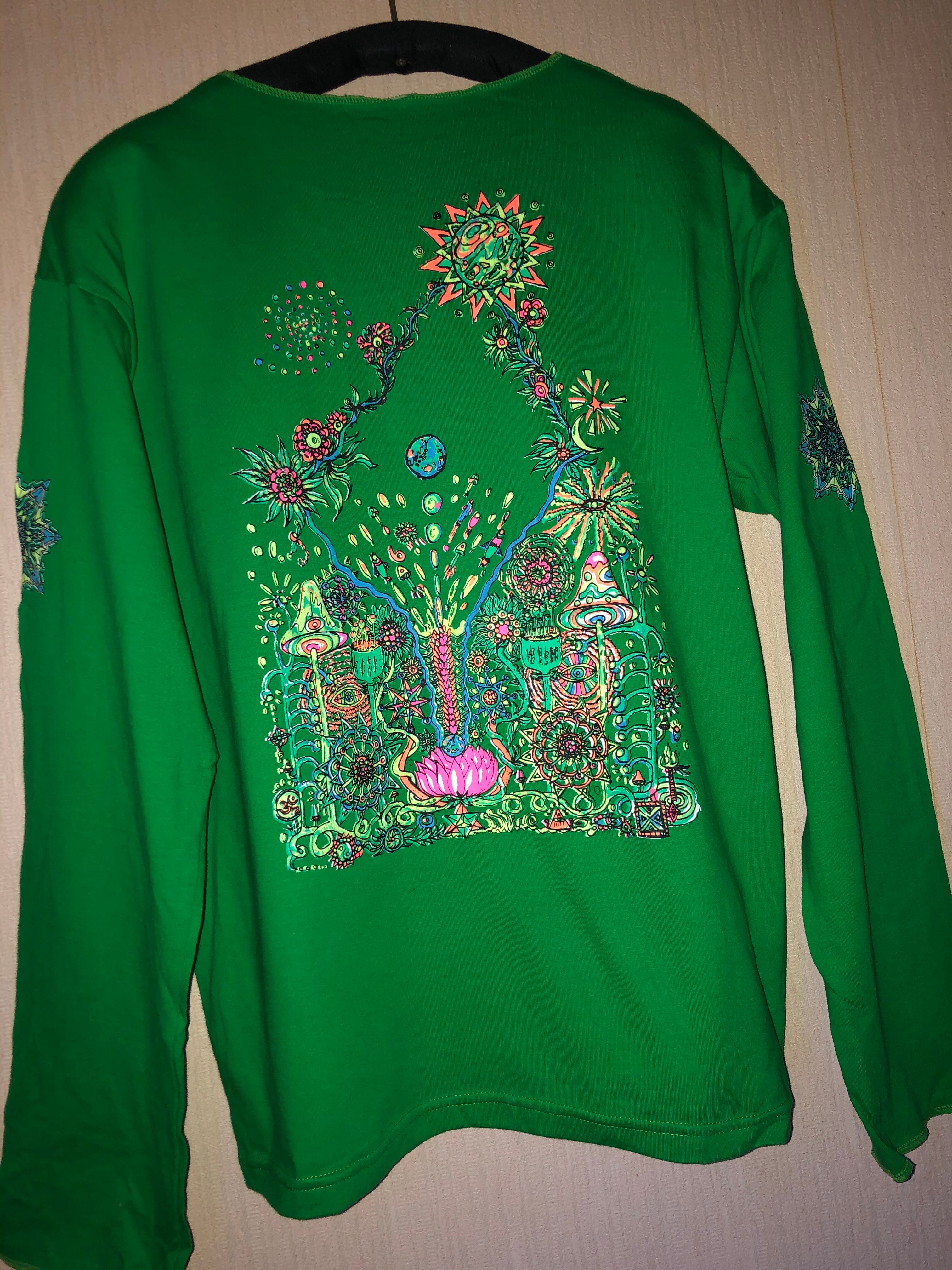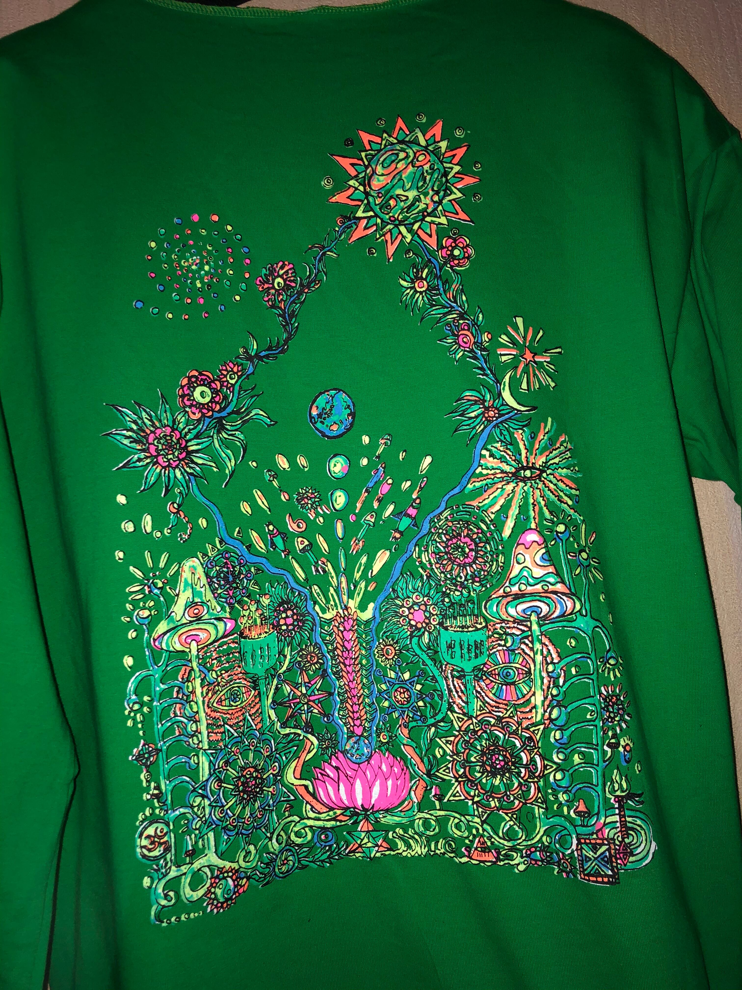 フラワーシャワーグリーンロングスリブTシャツサイズXL