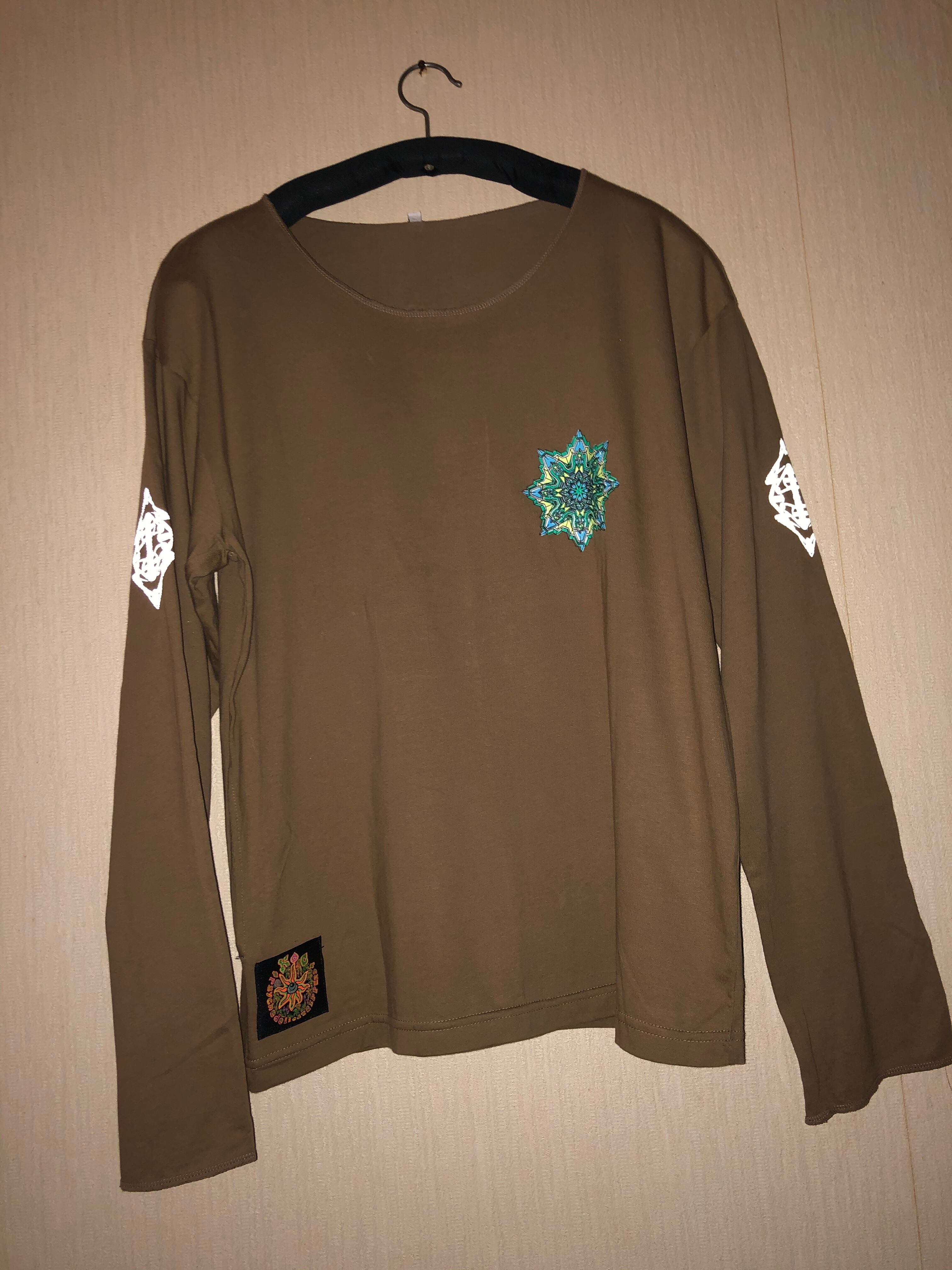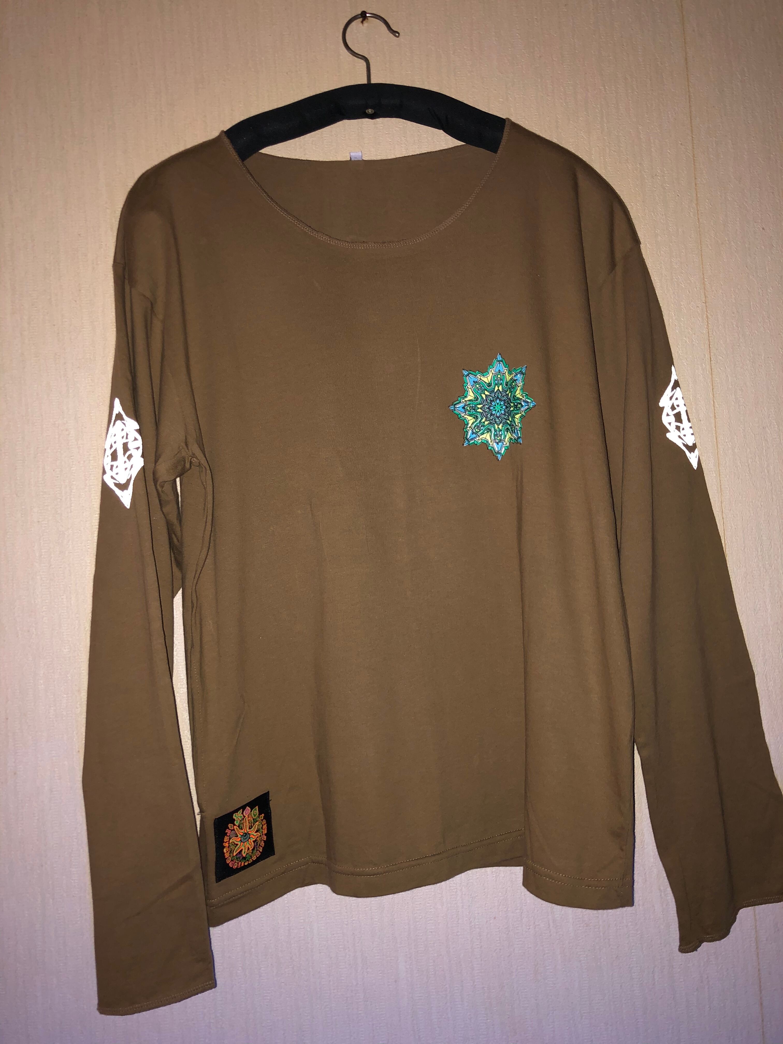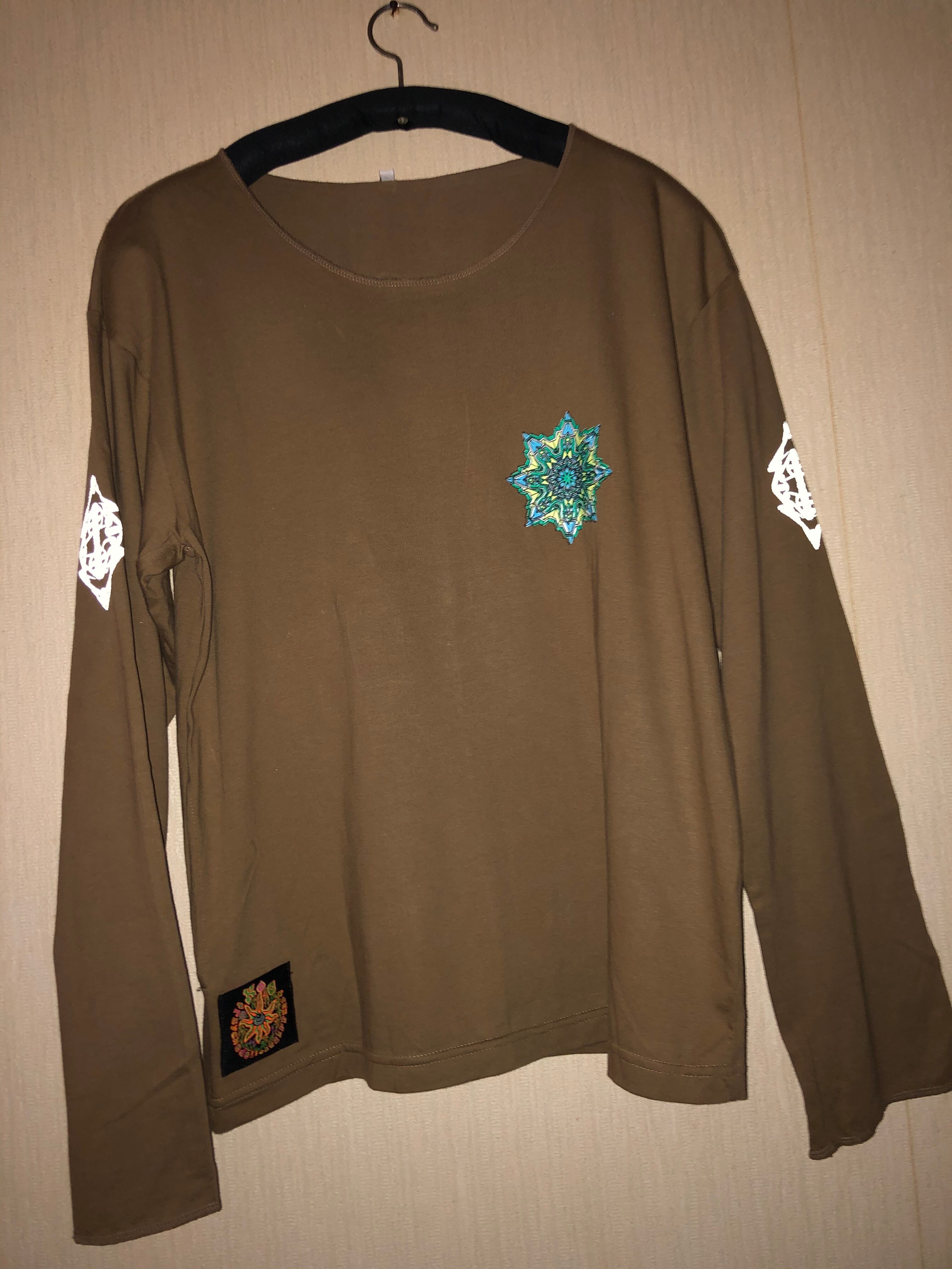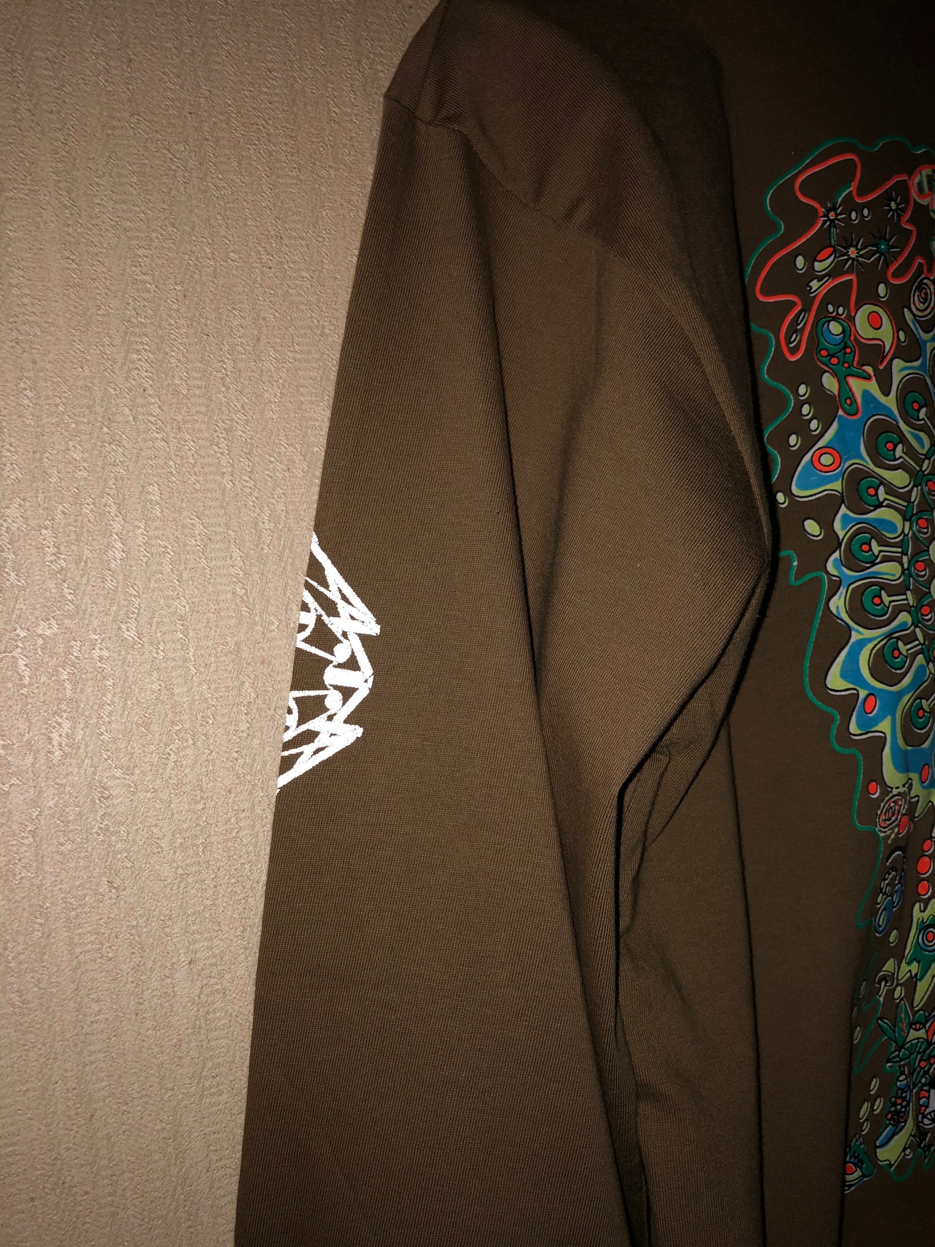 #サイケデリック #パーティー #レイブ #ブラックライト #グルグル #きのこ#キノコ #リフレクタープリント #フルプリント #ブラウンTシャツ