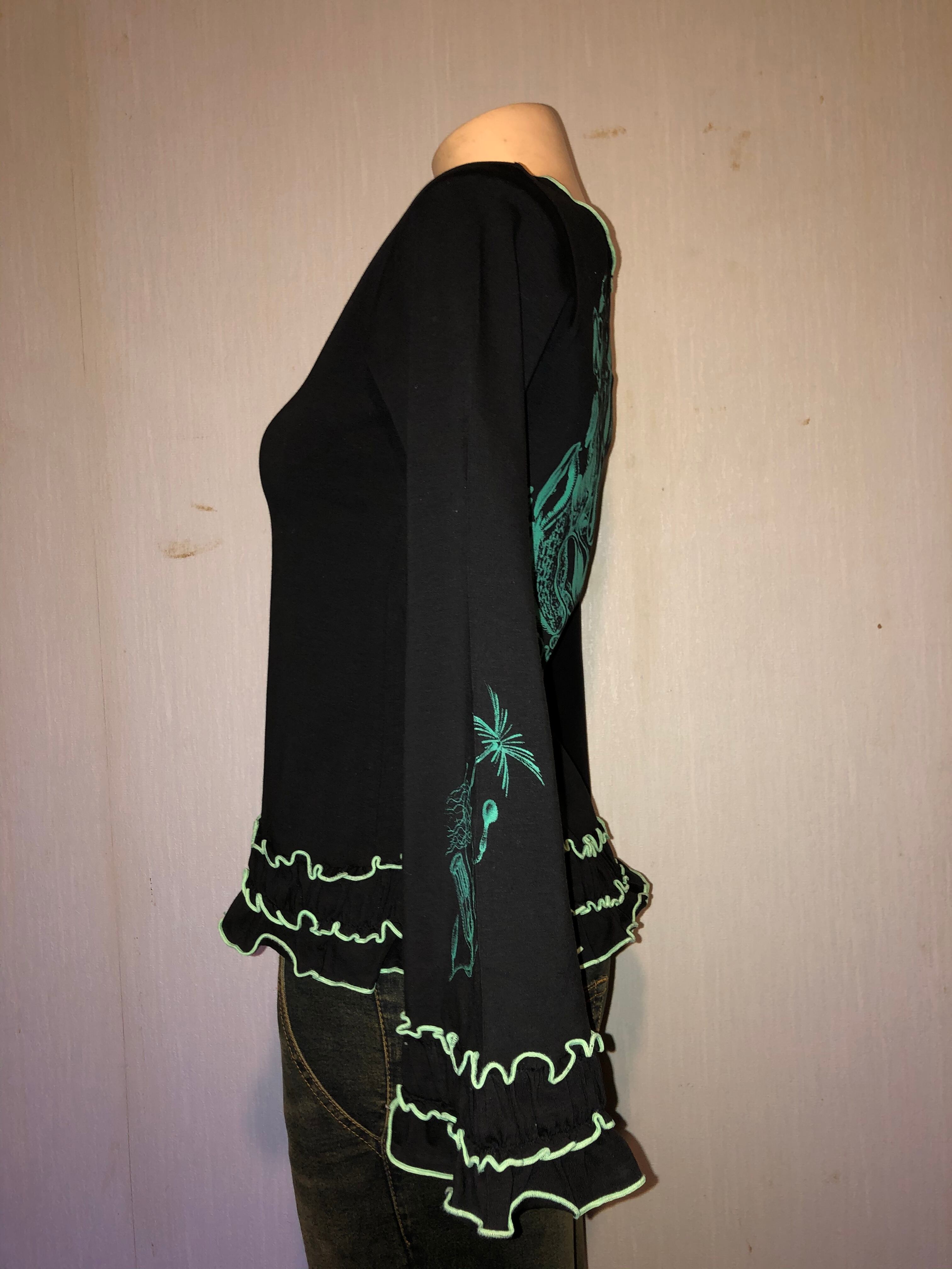 #サイケデリック #サイケ #レイブ #パーティー #ブラックライト #グリーンプリント #ブラックTシャツ #KOO #オリジナル #シルクスクリーン #イベント #レディース長袖