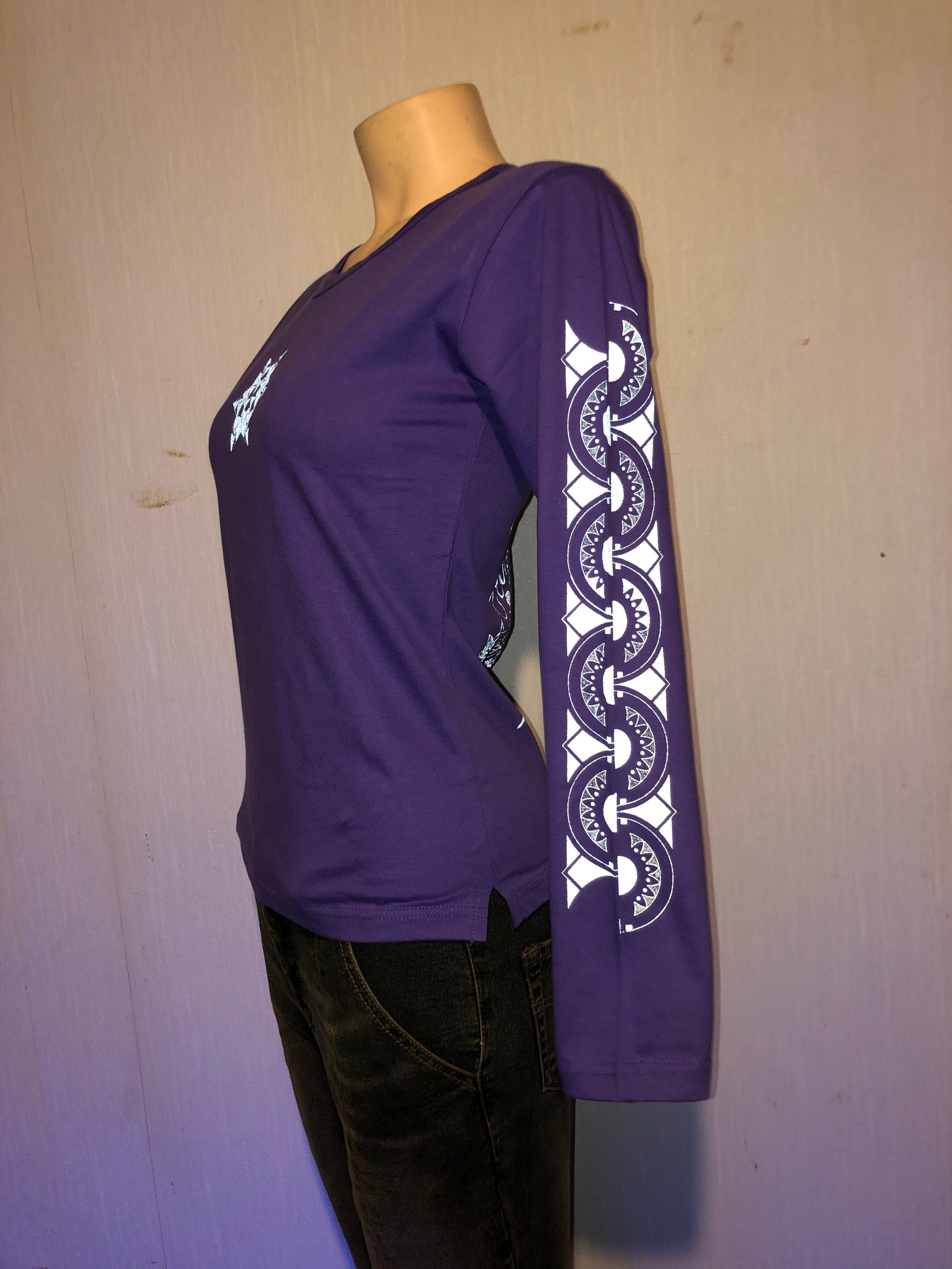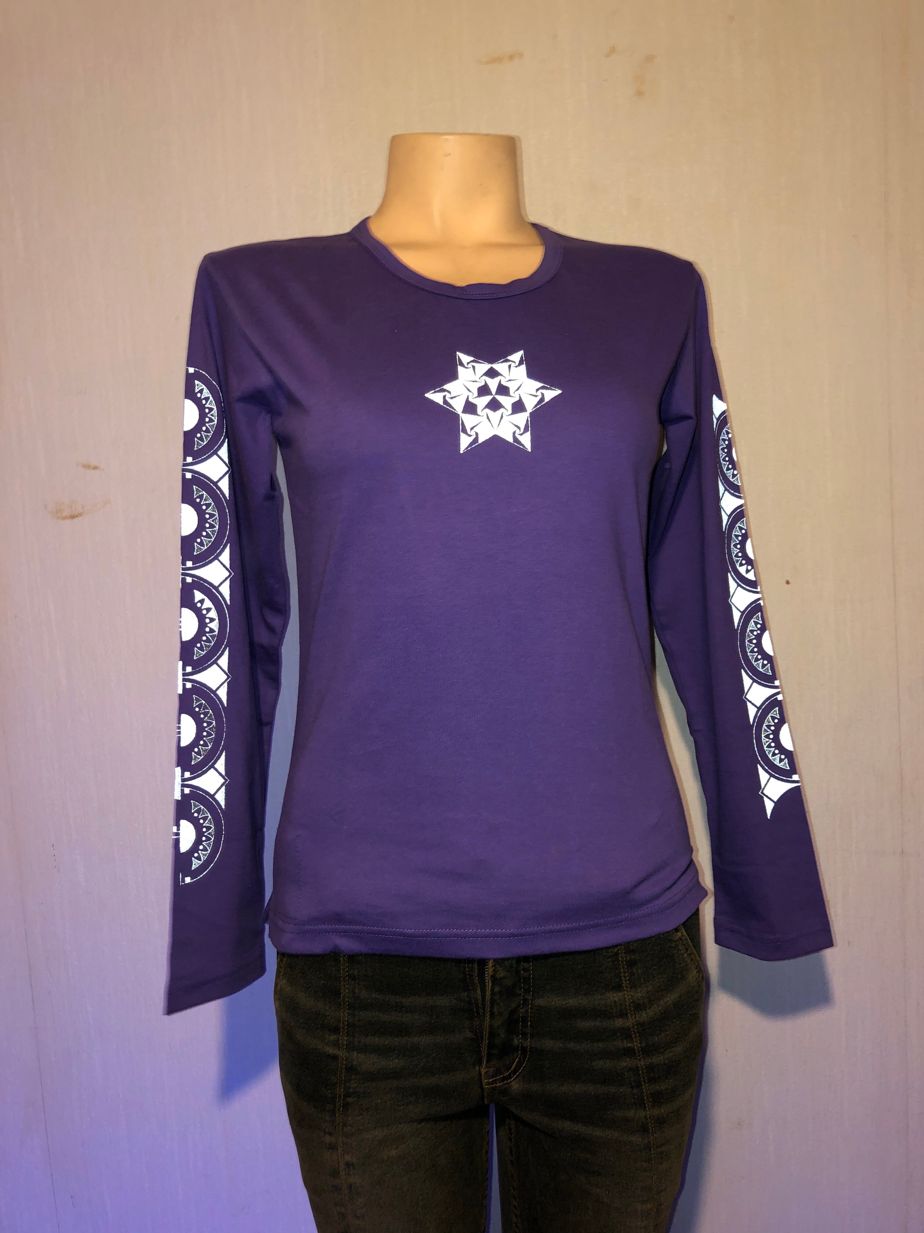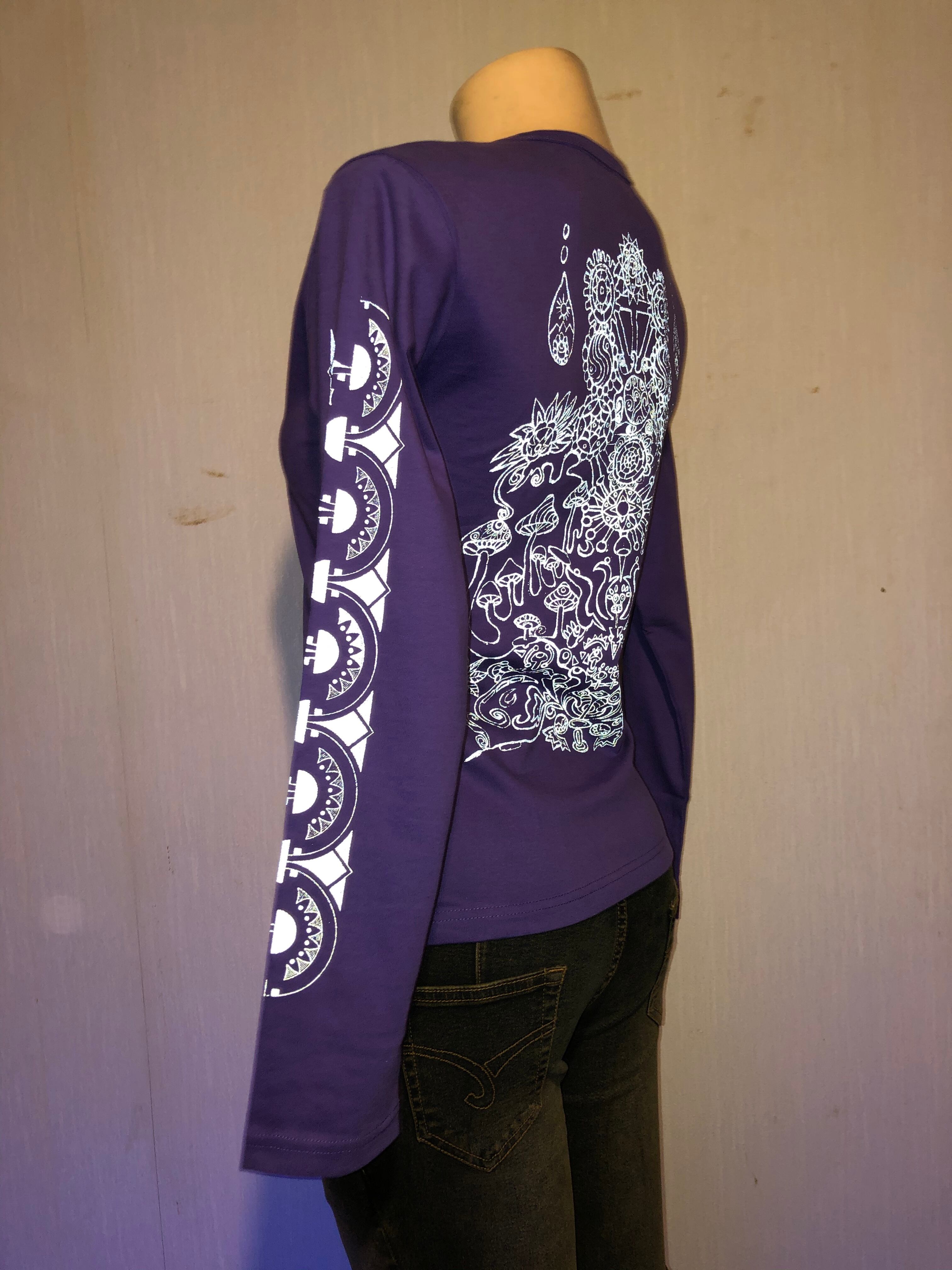 オリジナル商品です。#サイケデリック #パーティー #レイブ #サイケ #リフレクタープリント #生命 #木 #パープルTシャツ #KOO #オリジナル #シルクスクリーン #レディース長袖 #イベント