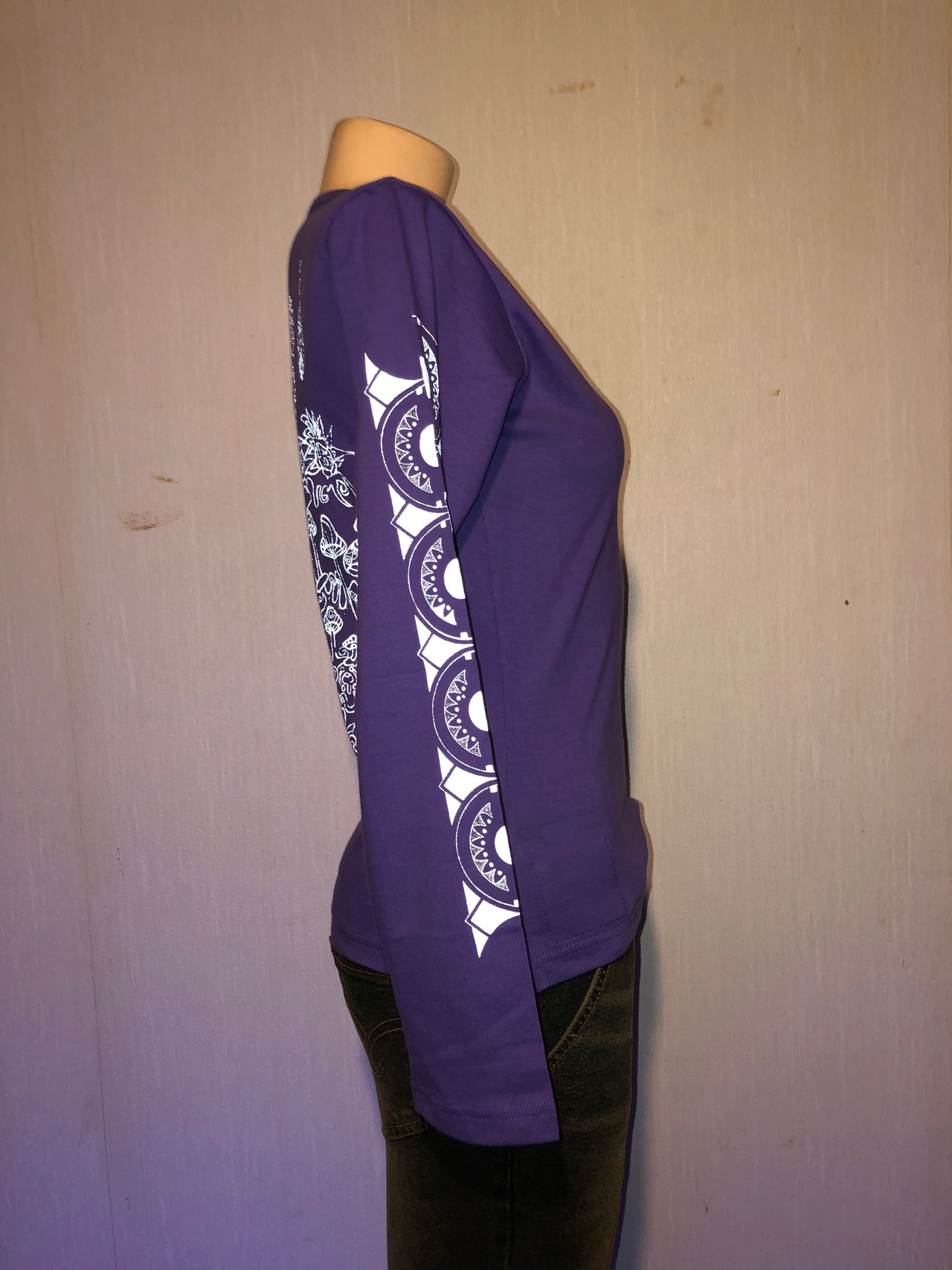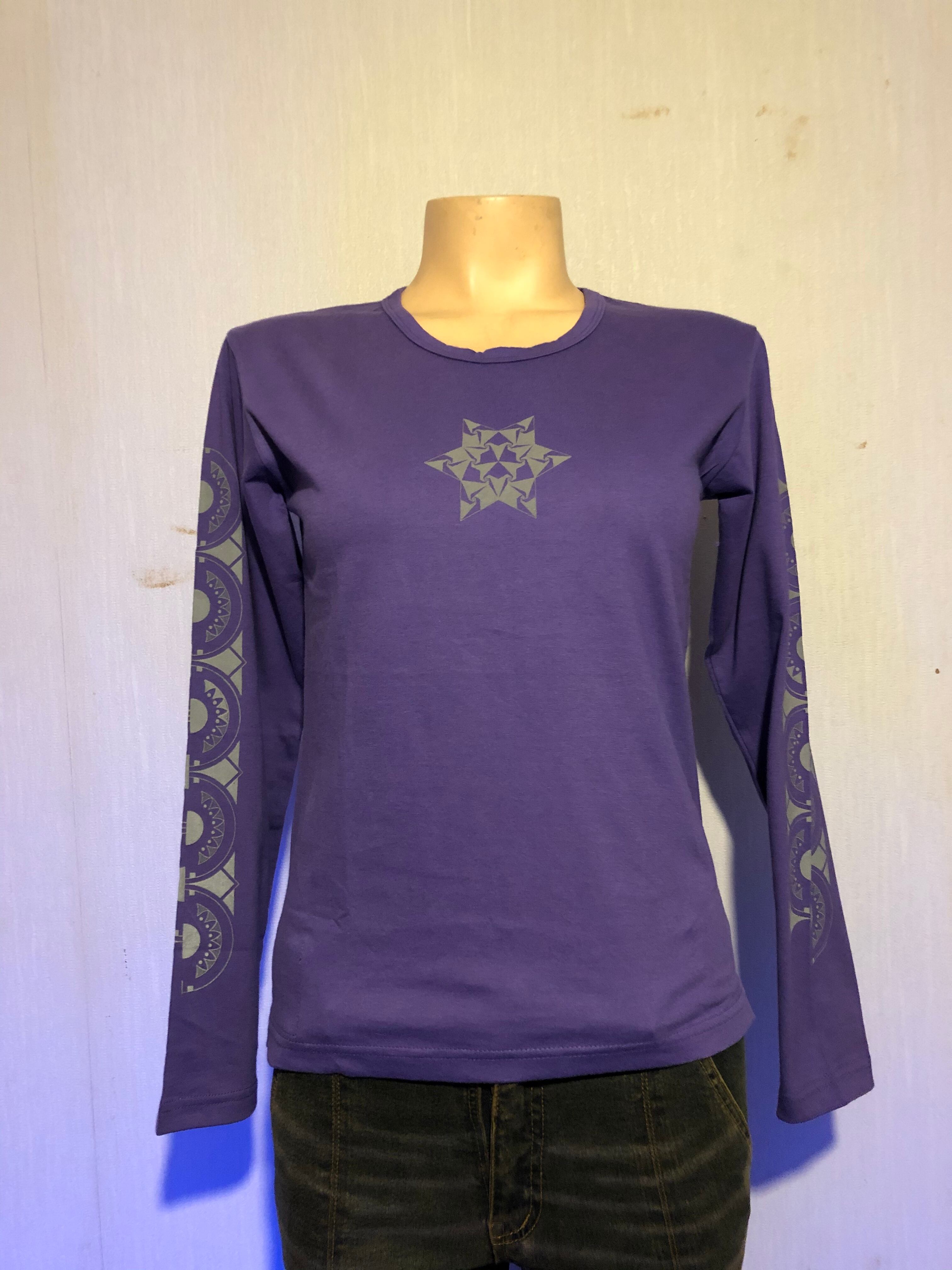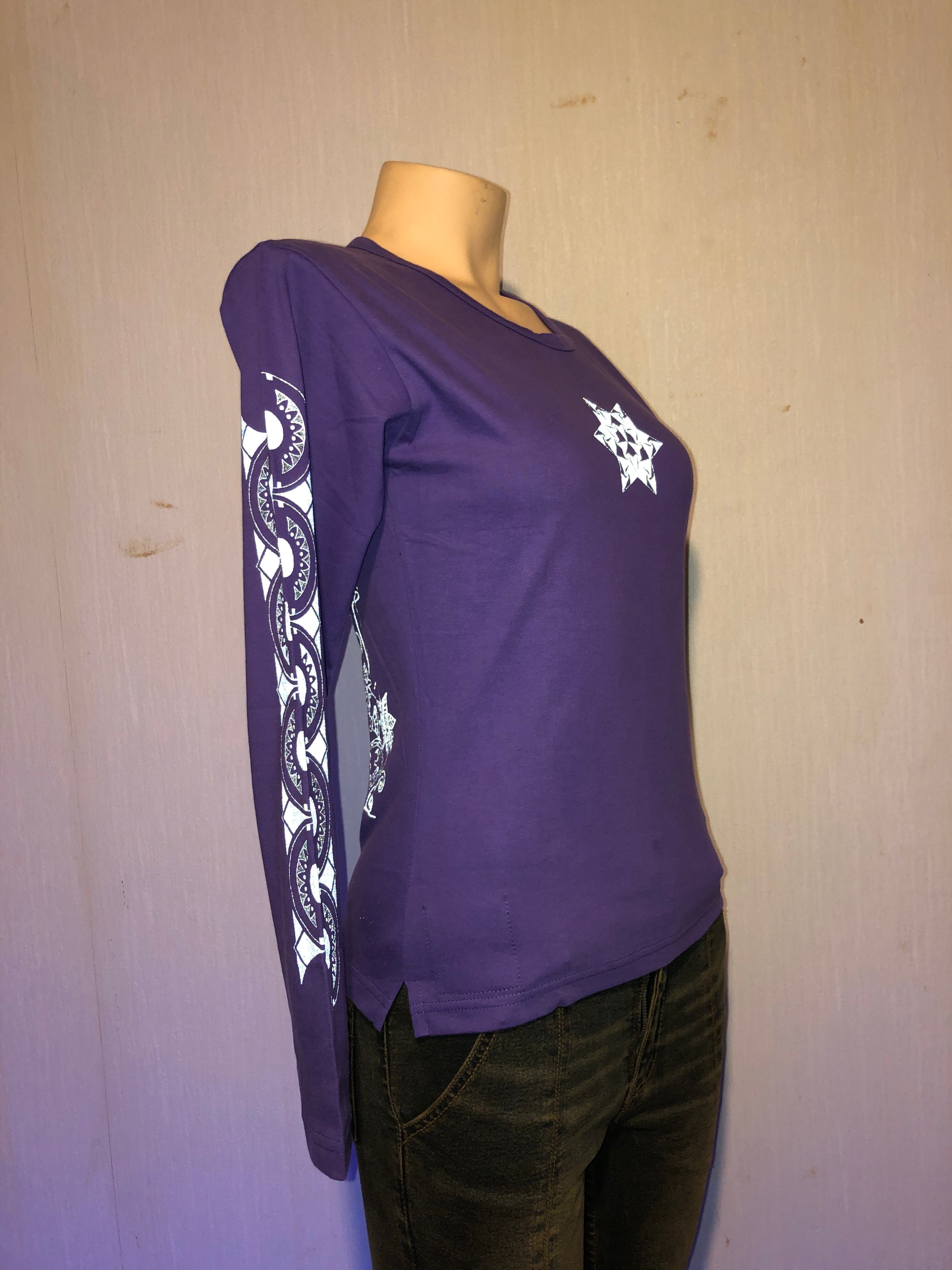 オリジナル商品です。#サイケデリック #パーティー #レイブ #サイケ #リフレクタープリント #生命 #木 #パープルTシャツ #KOO #オリジナル #シルクスクリーン #レディース長袖 #イベント