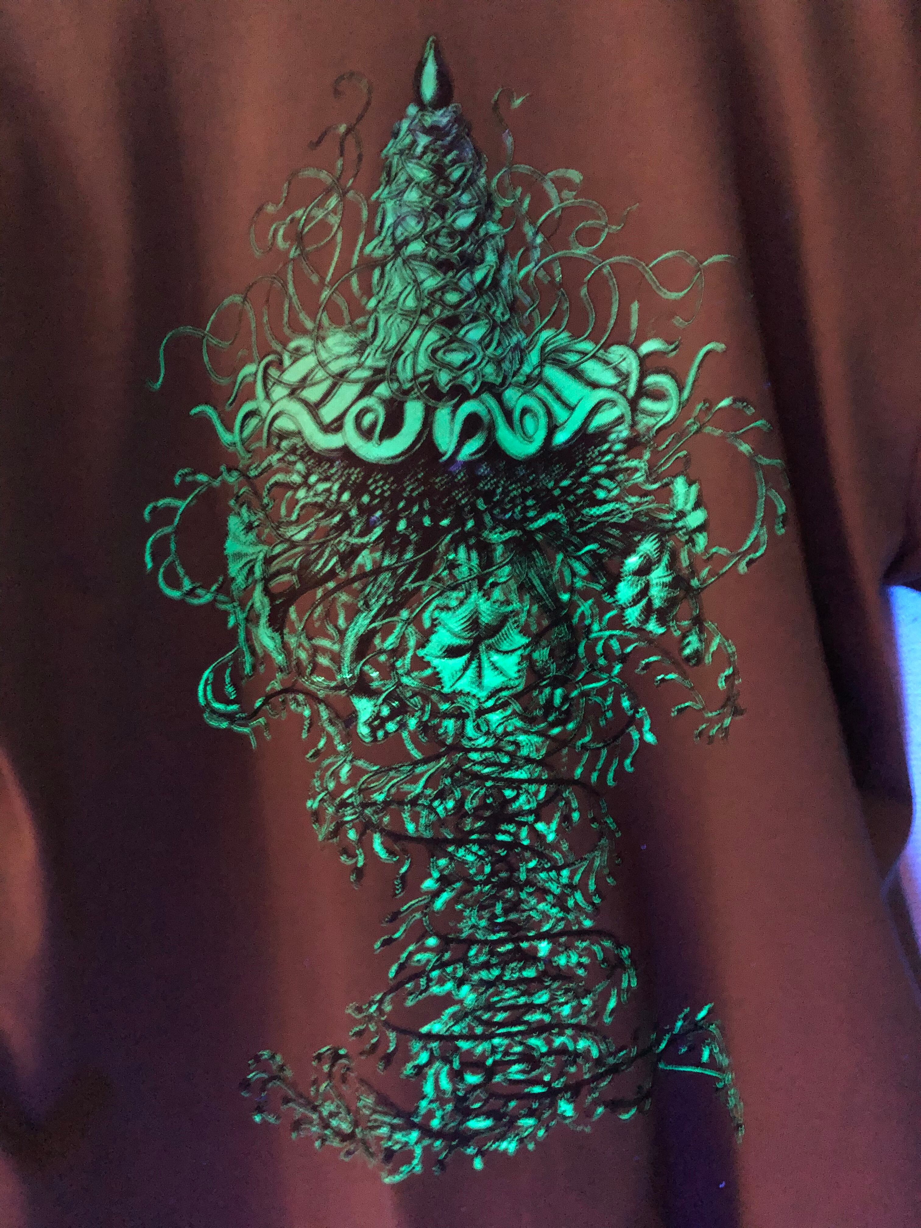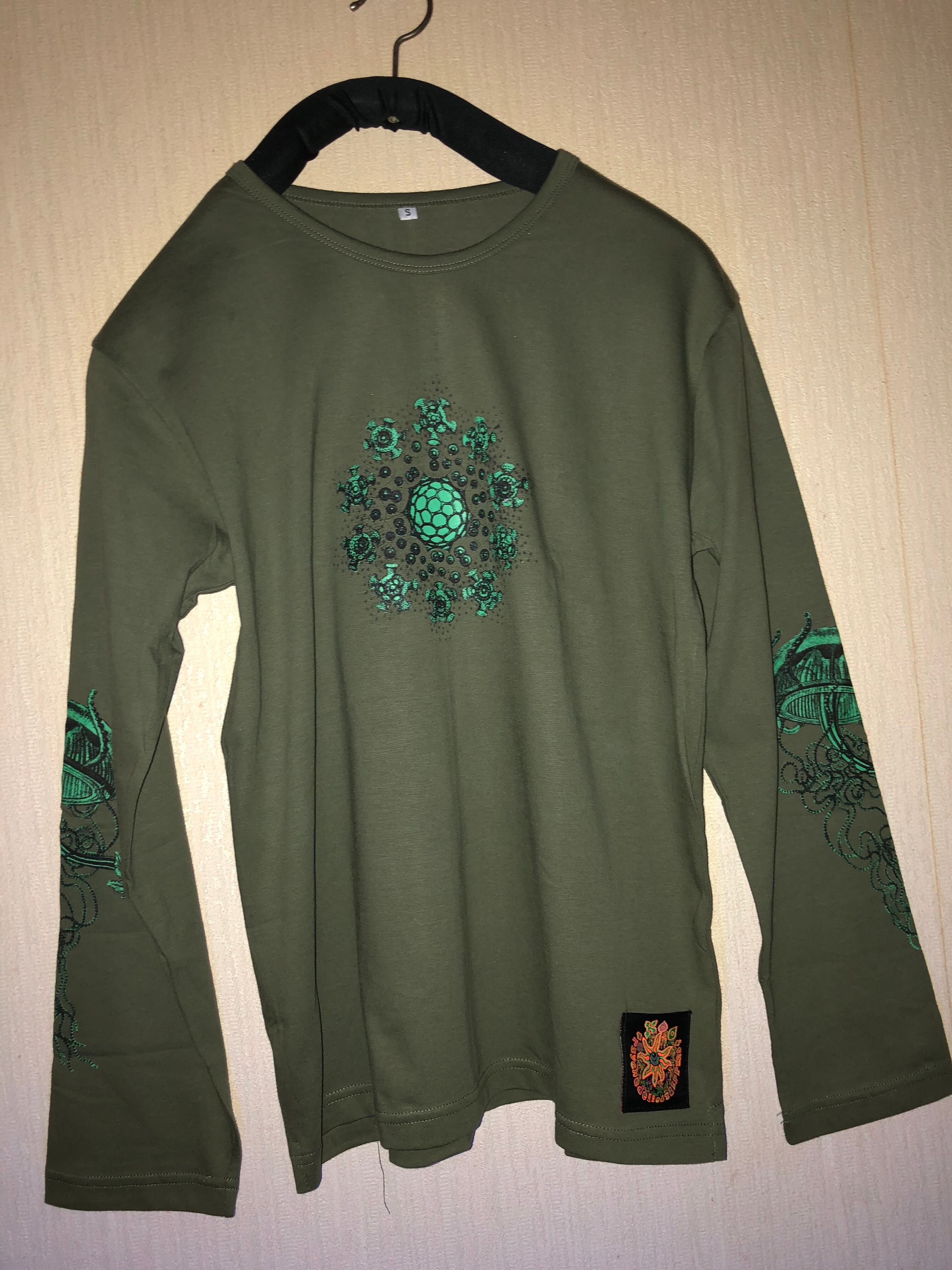 #サイケデリック #レイブ #パーティー #サイケ #クラゲ #ブラックライト #カーキTシャツ #グリーンプリント #オリジナル #KOO #シルクスクリーン