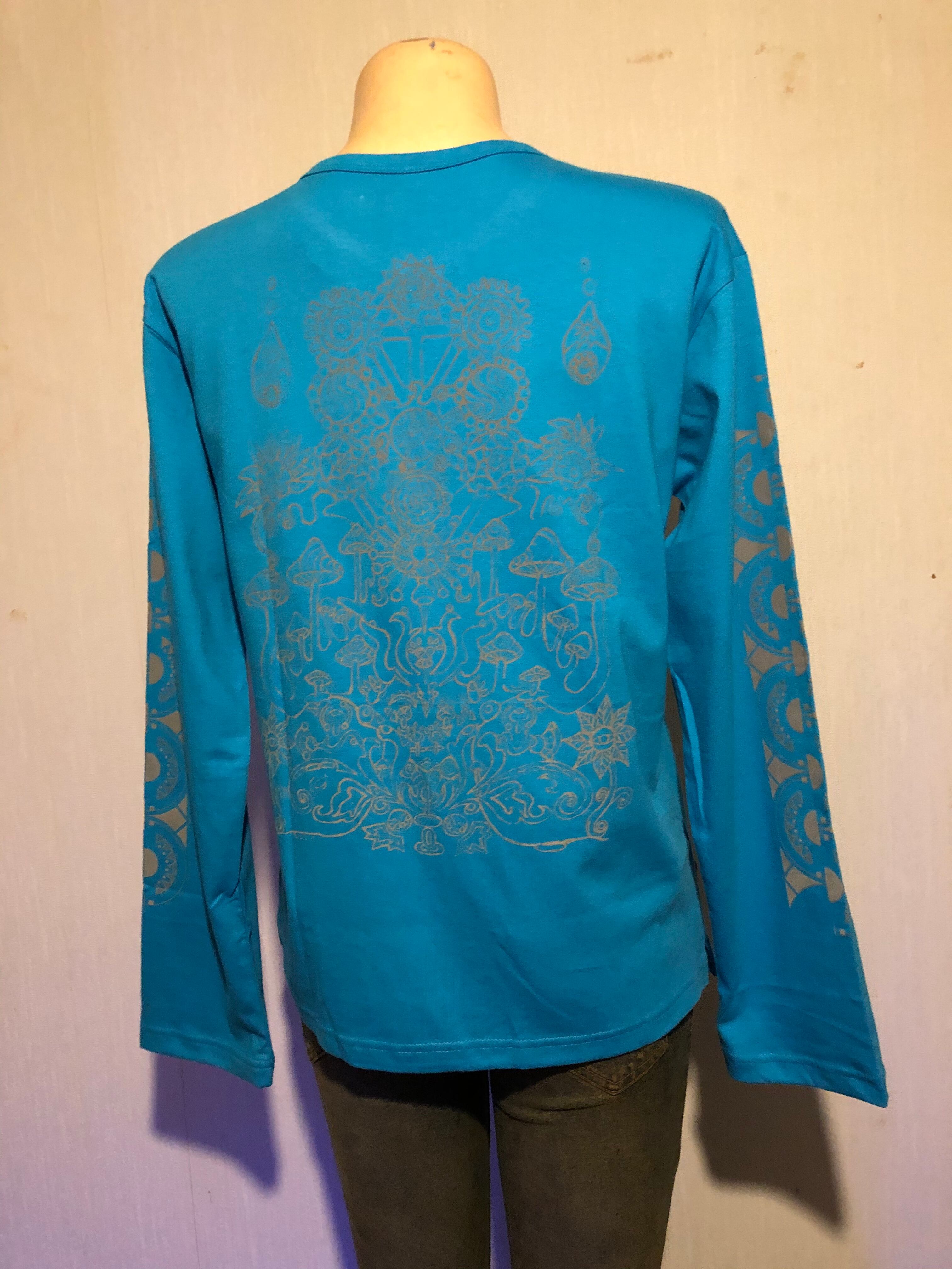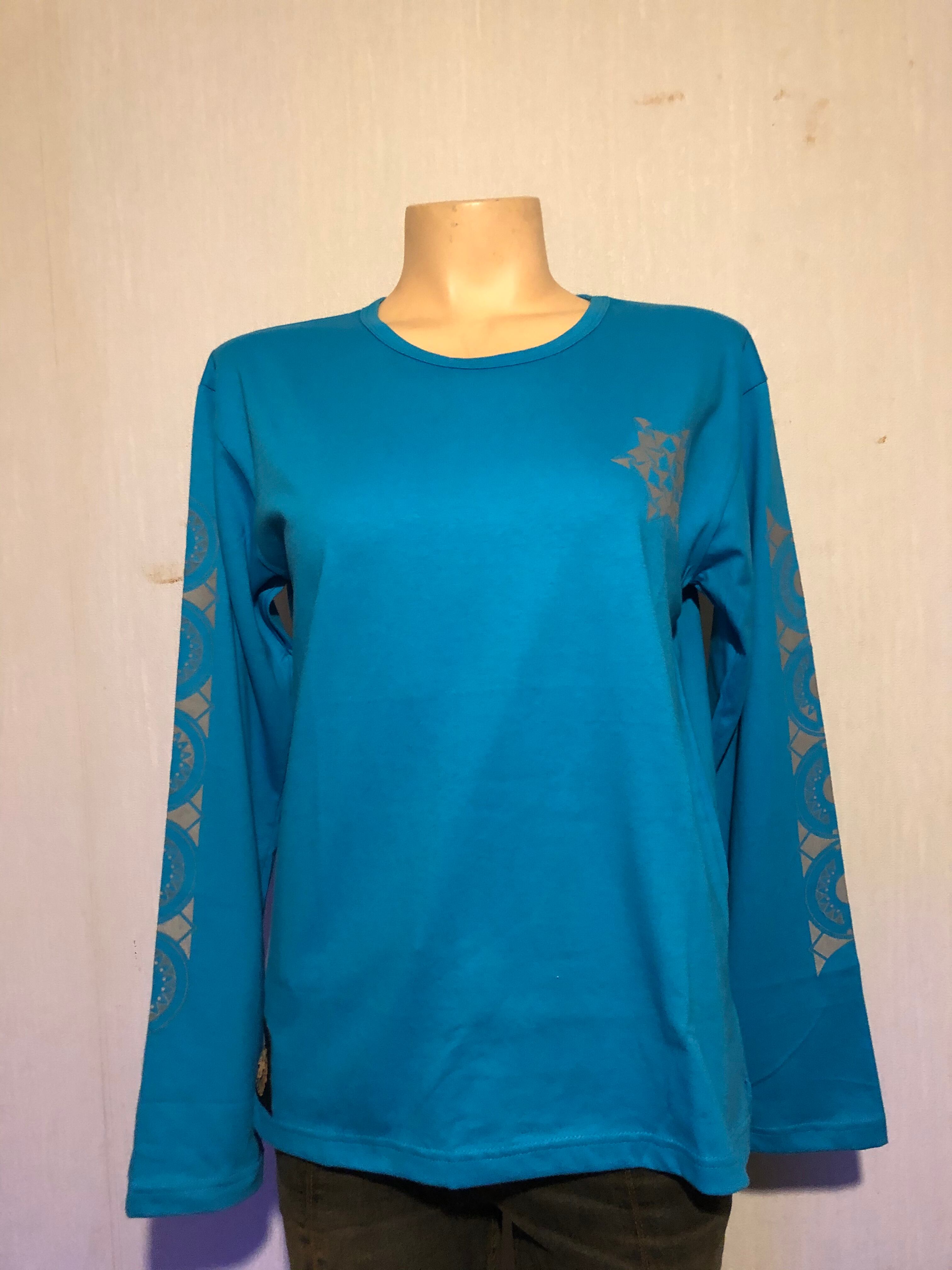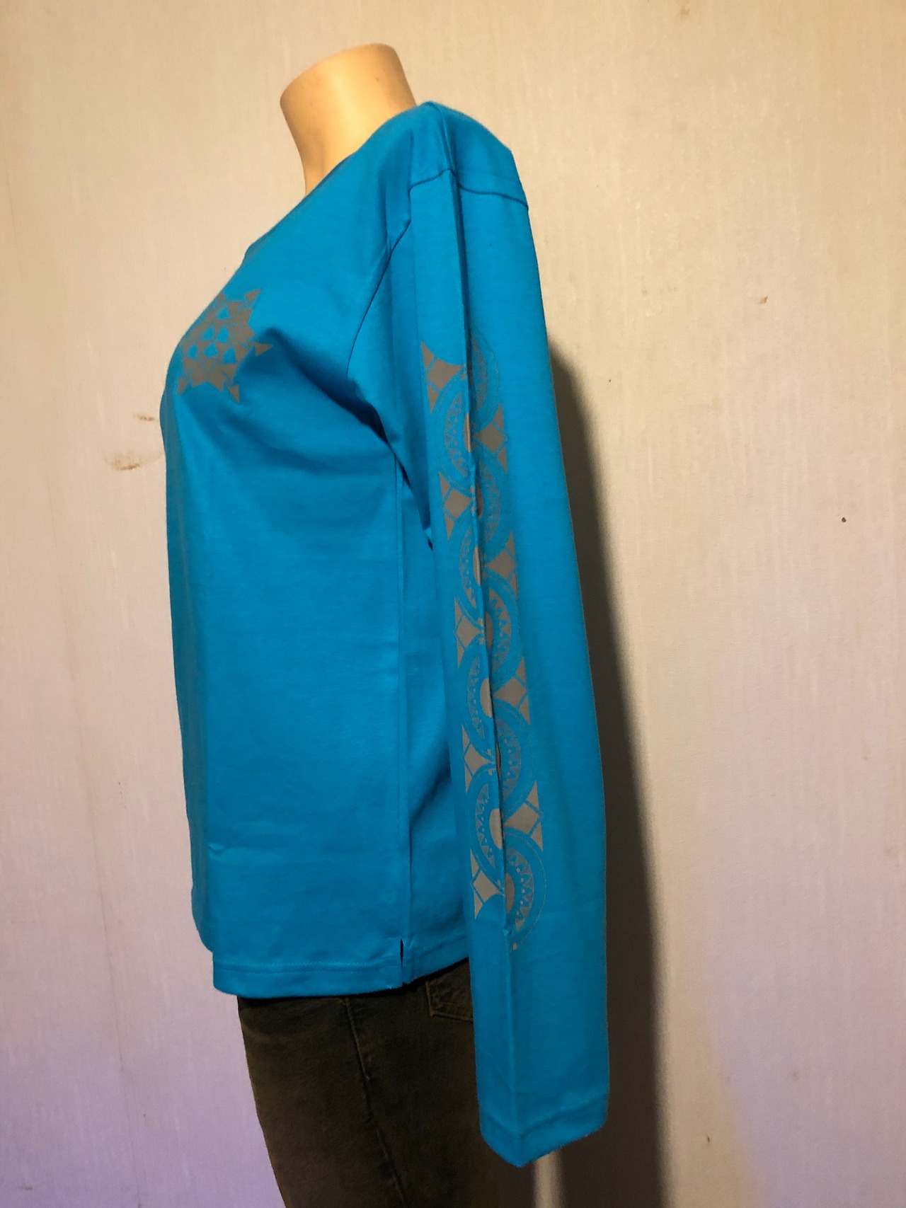 生命の木リフレクタープリントブルー生地ロングスリブ