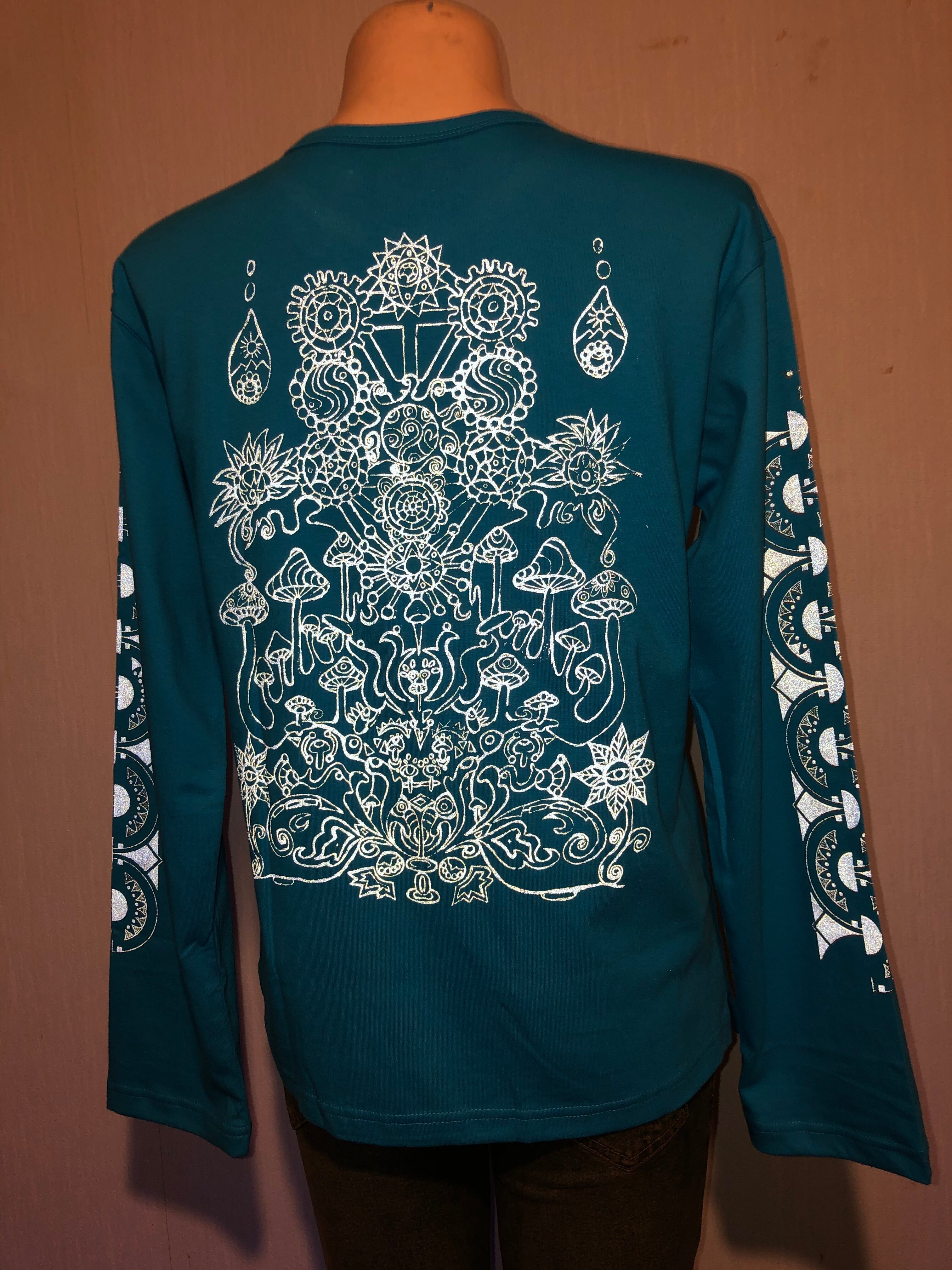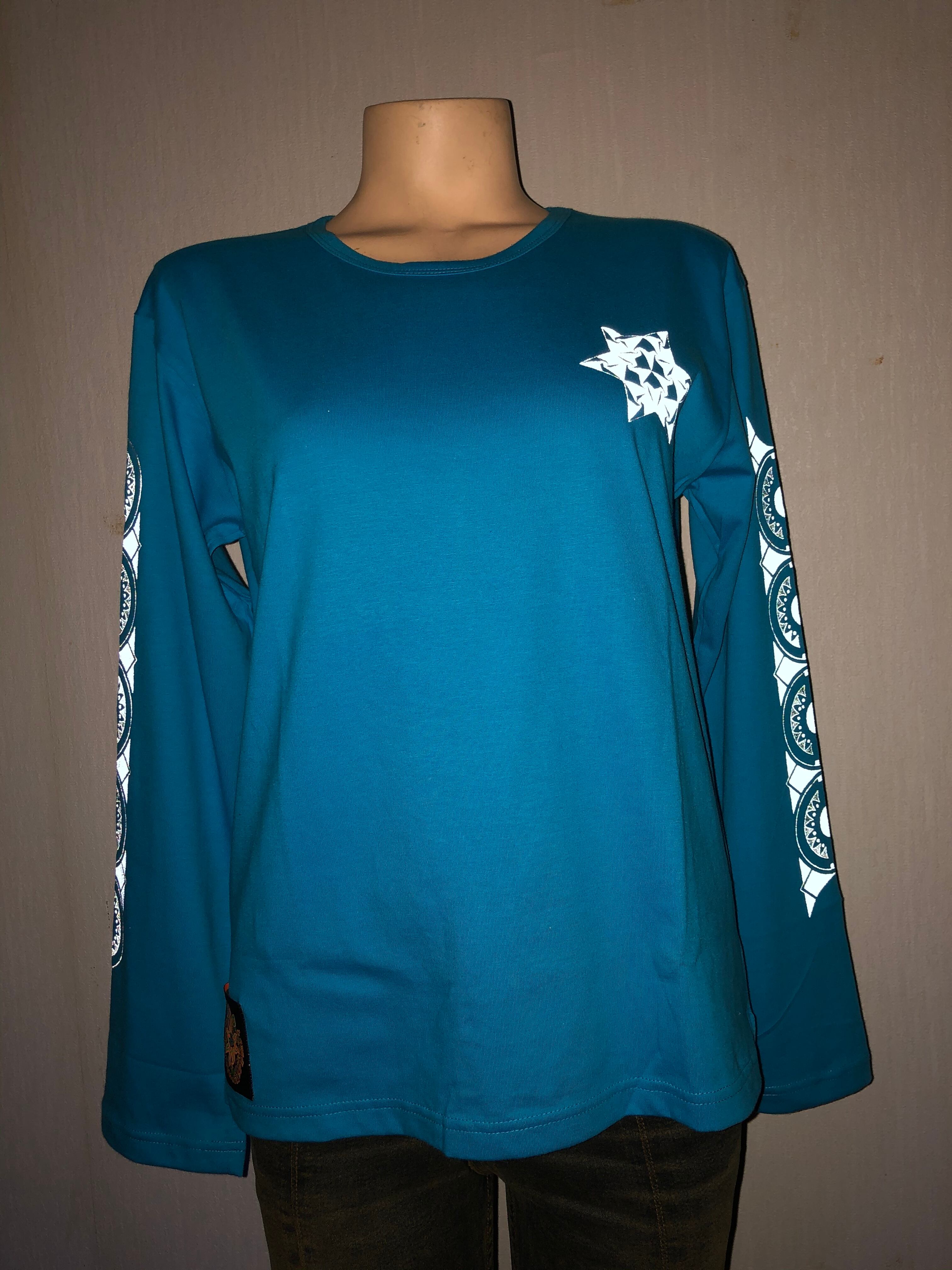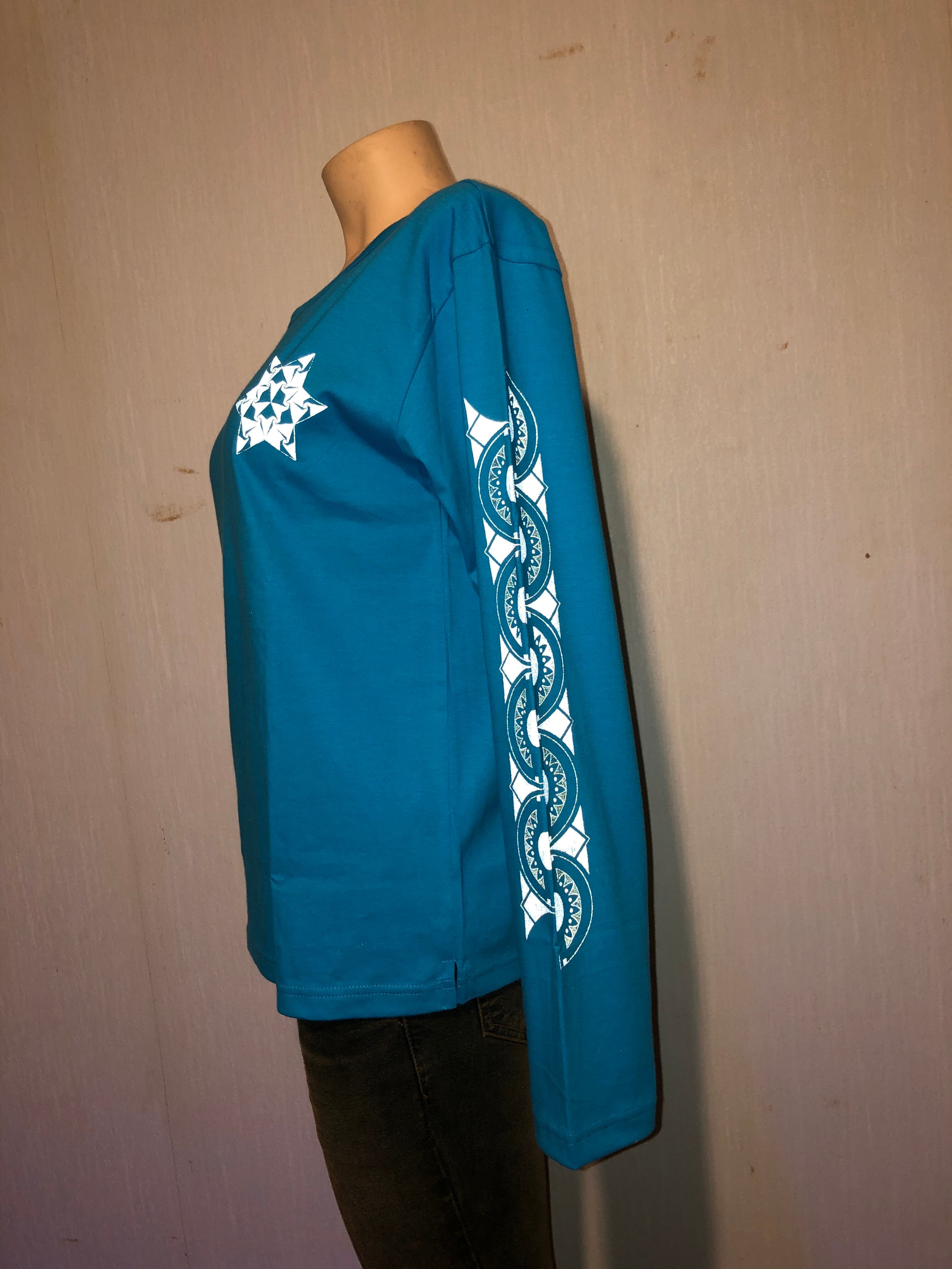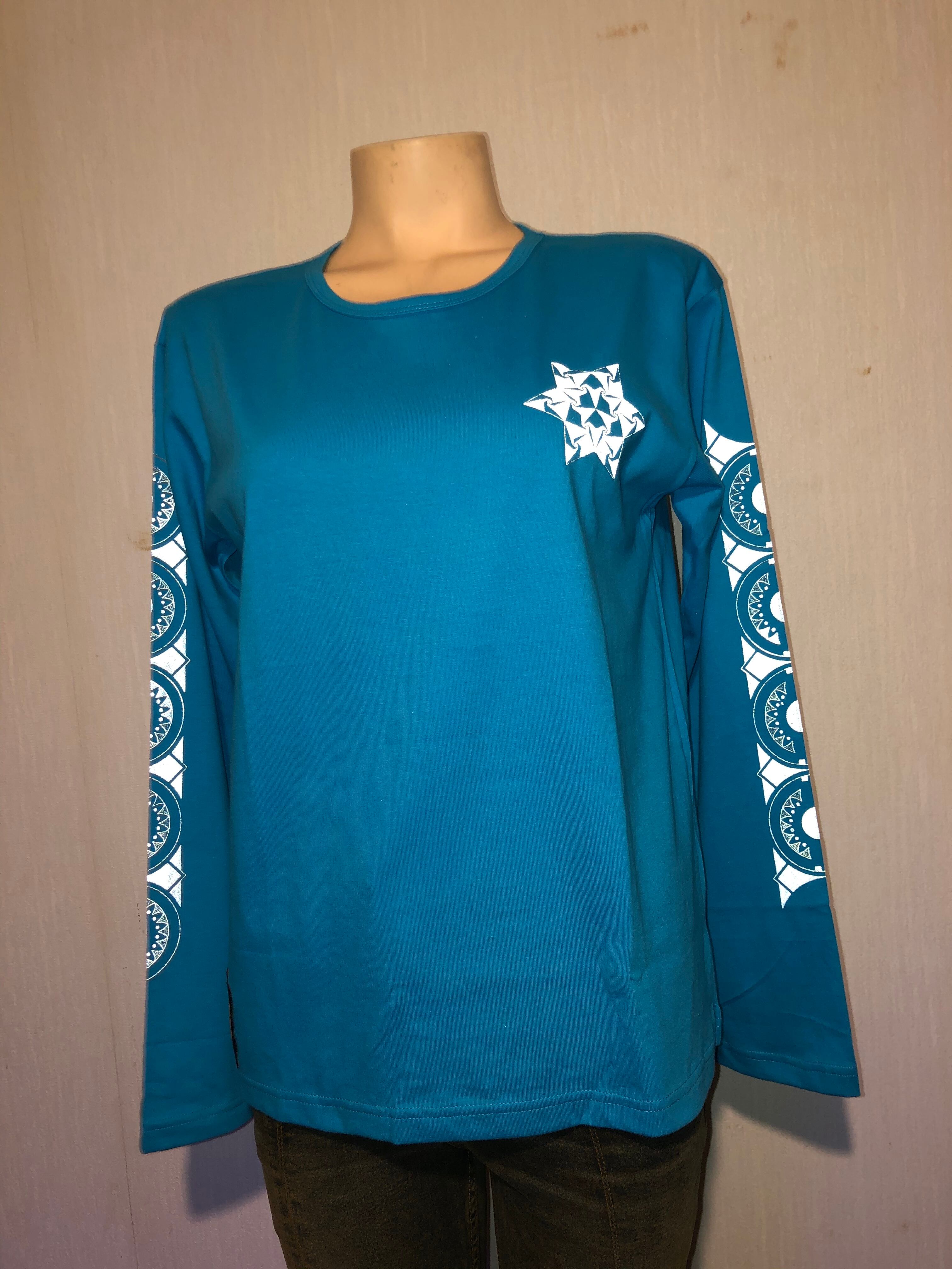 生命の木リフレクタープリントブルー生地ロングスリブ