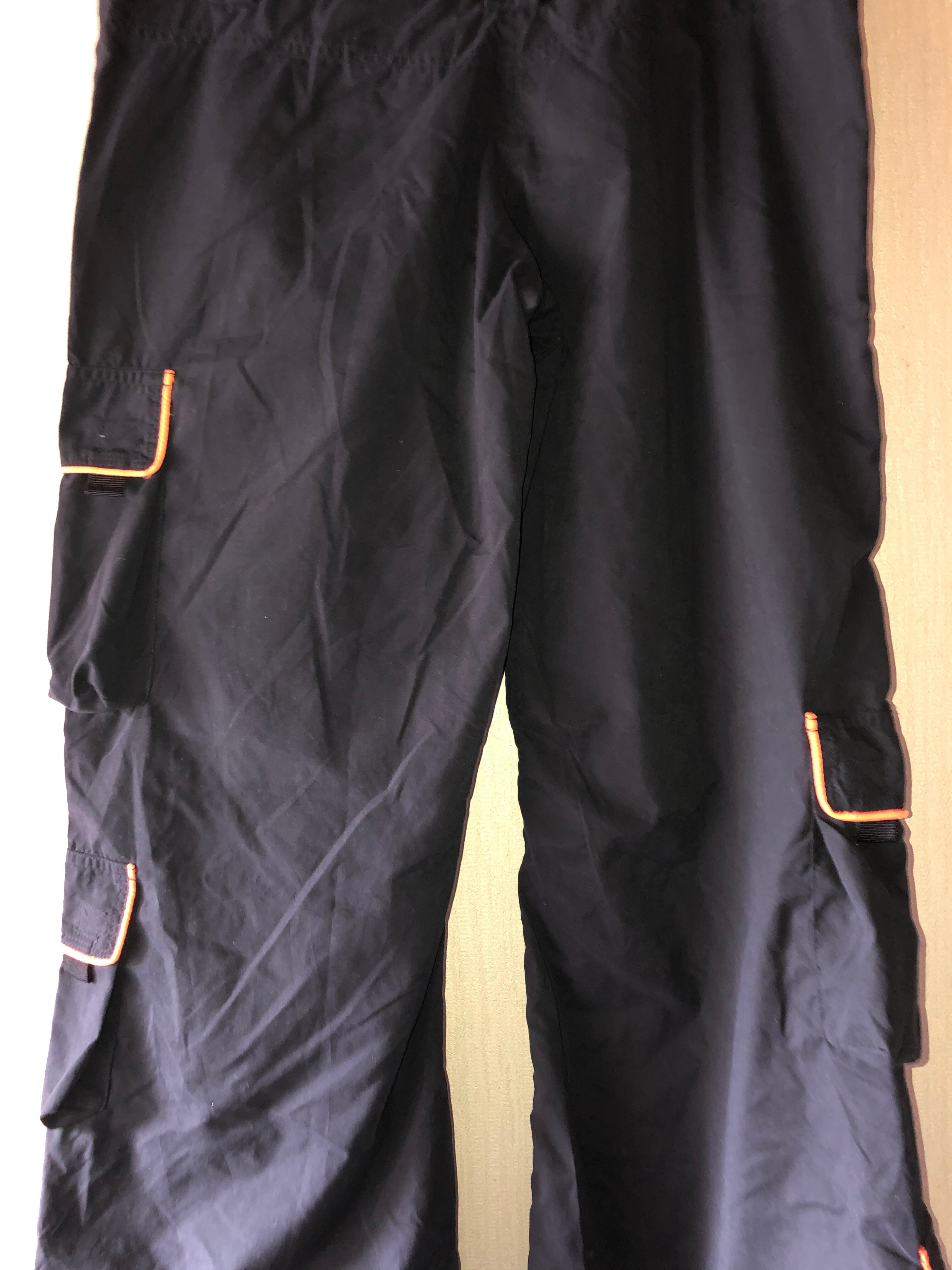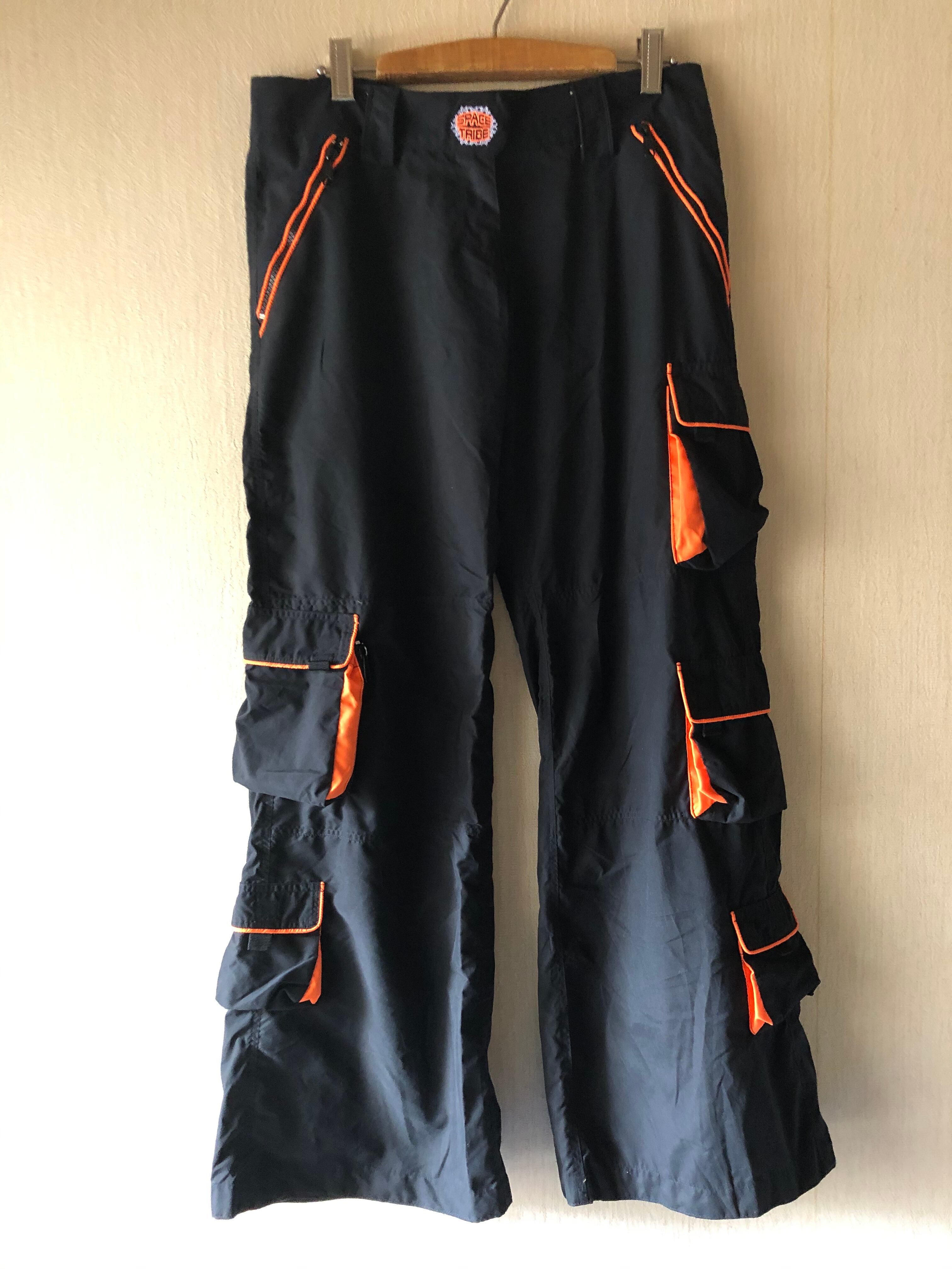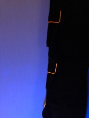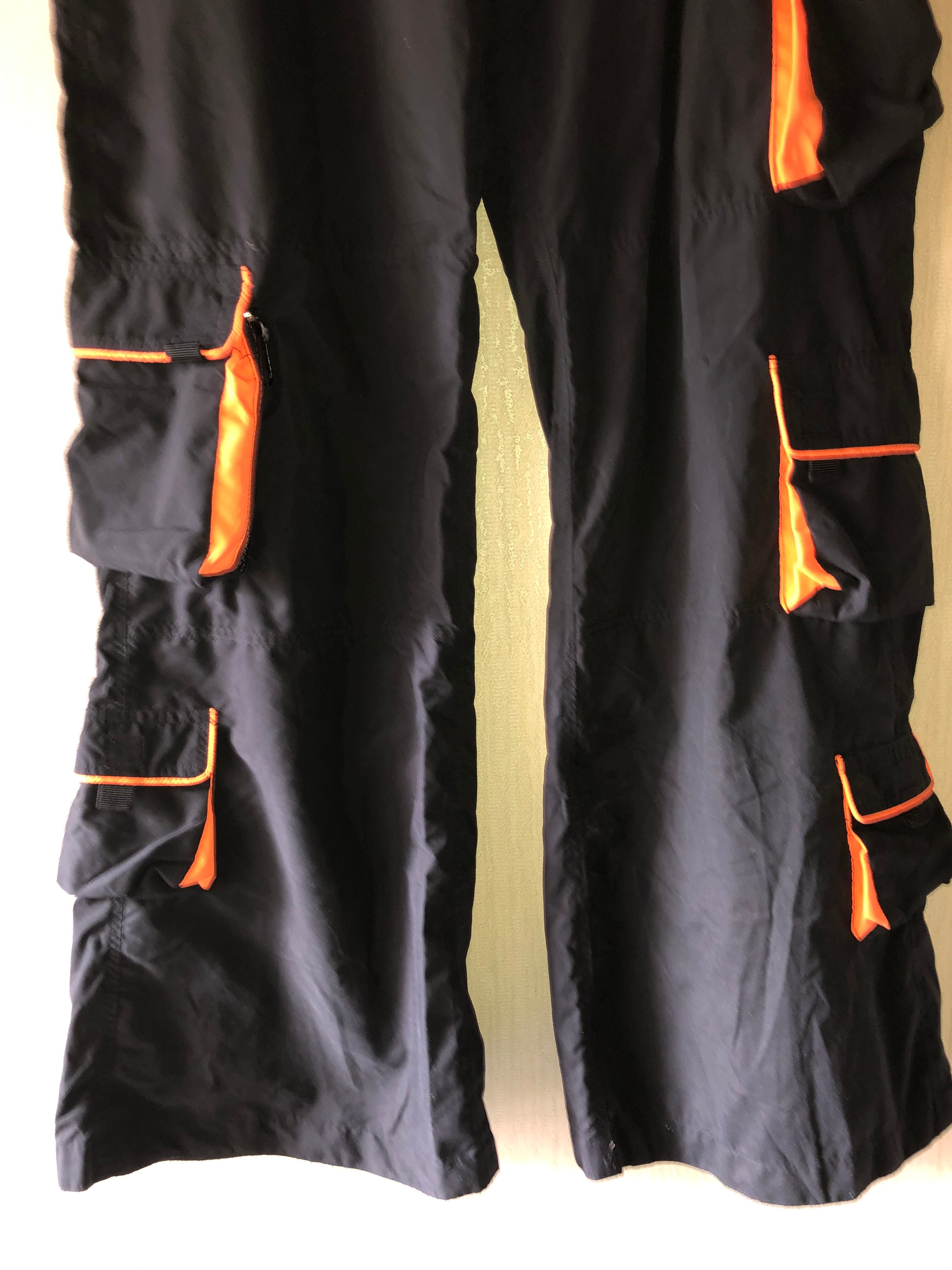 このスペーストライブのパンツはブラックでオレンジのラインやポケットのフチに入っていてブラックライトで光ります。