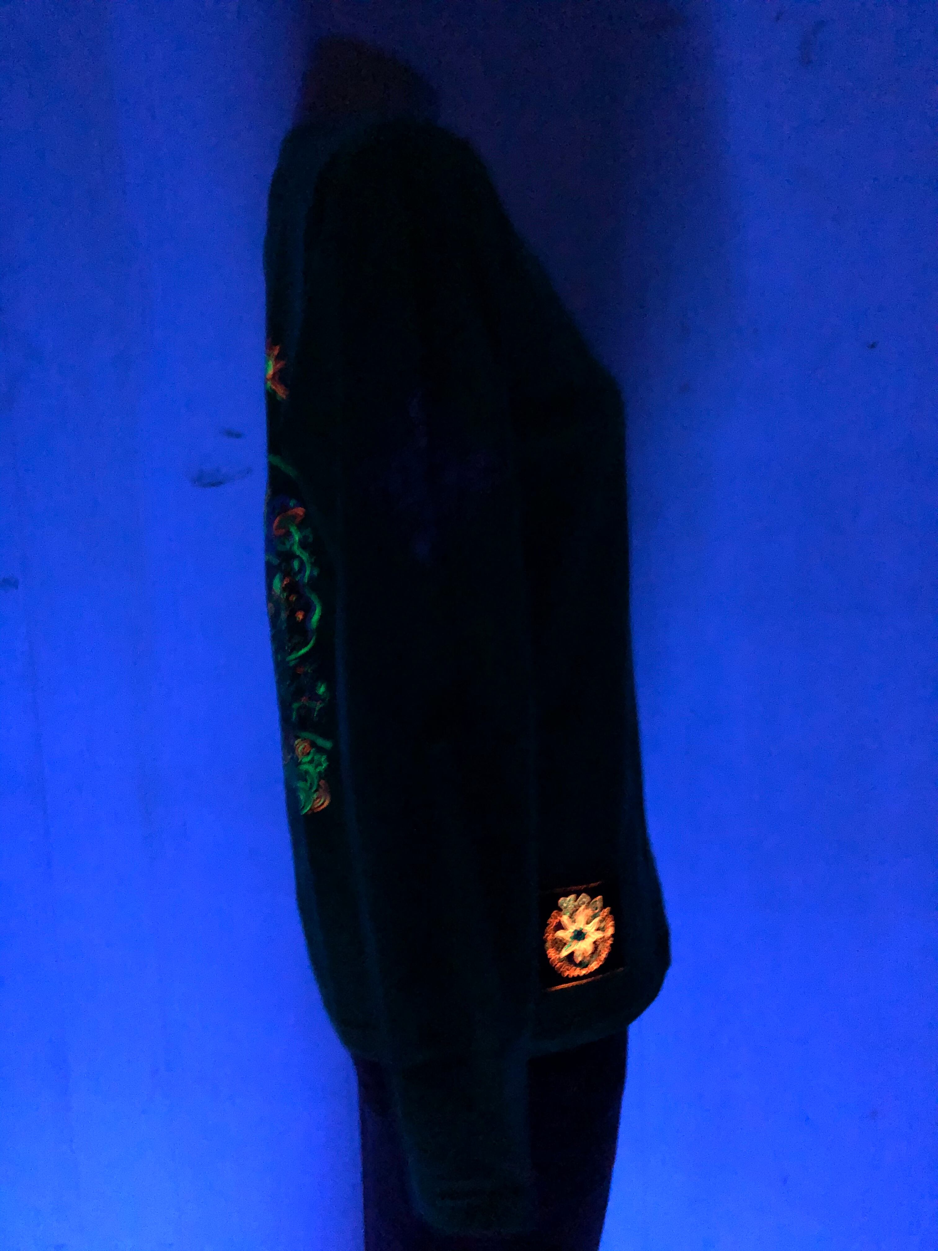 袖にもプリントが入っていてリフレクタープリントになっているのでカメラのフラッシュや車のライトで光ります。