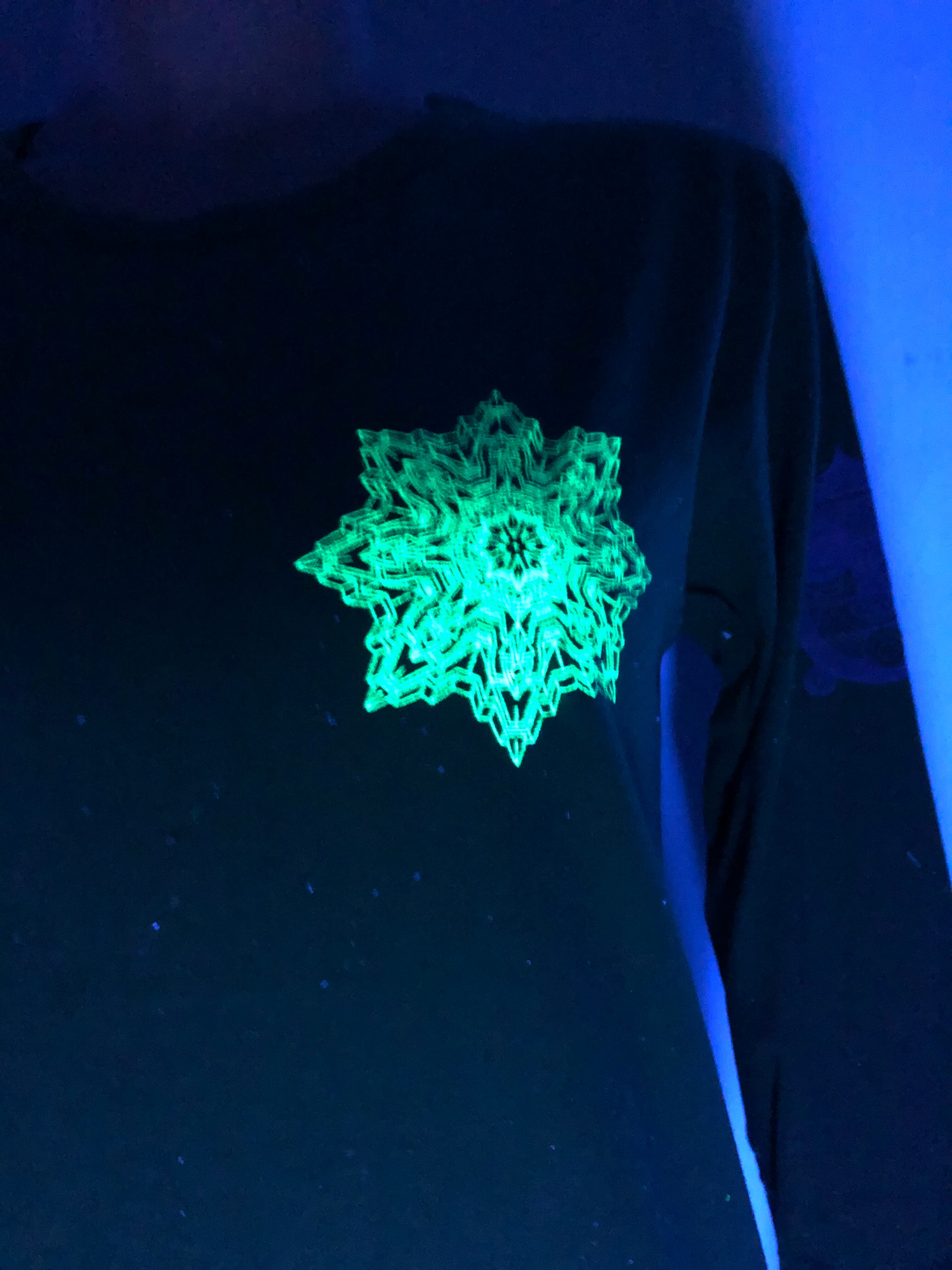 #サイケデリック#サイケ #イベント#レイブ #パーティー #ポケット付きTシャツ #グリーンロングスリブ #蓄光 #ブラックライト #タグシークレットポケット
