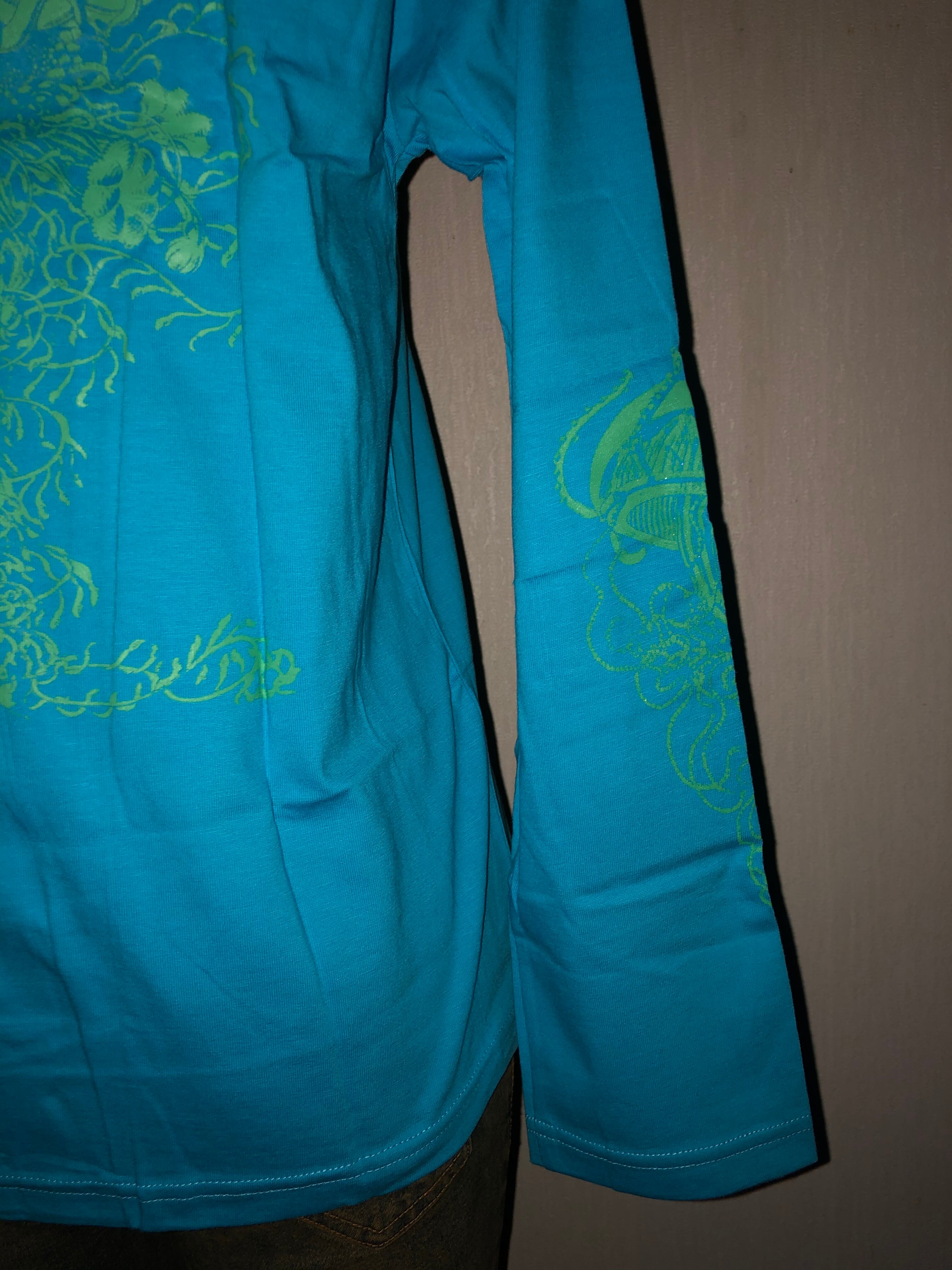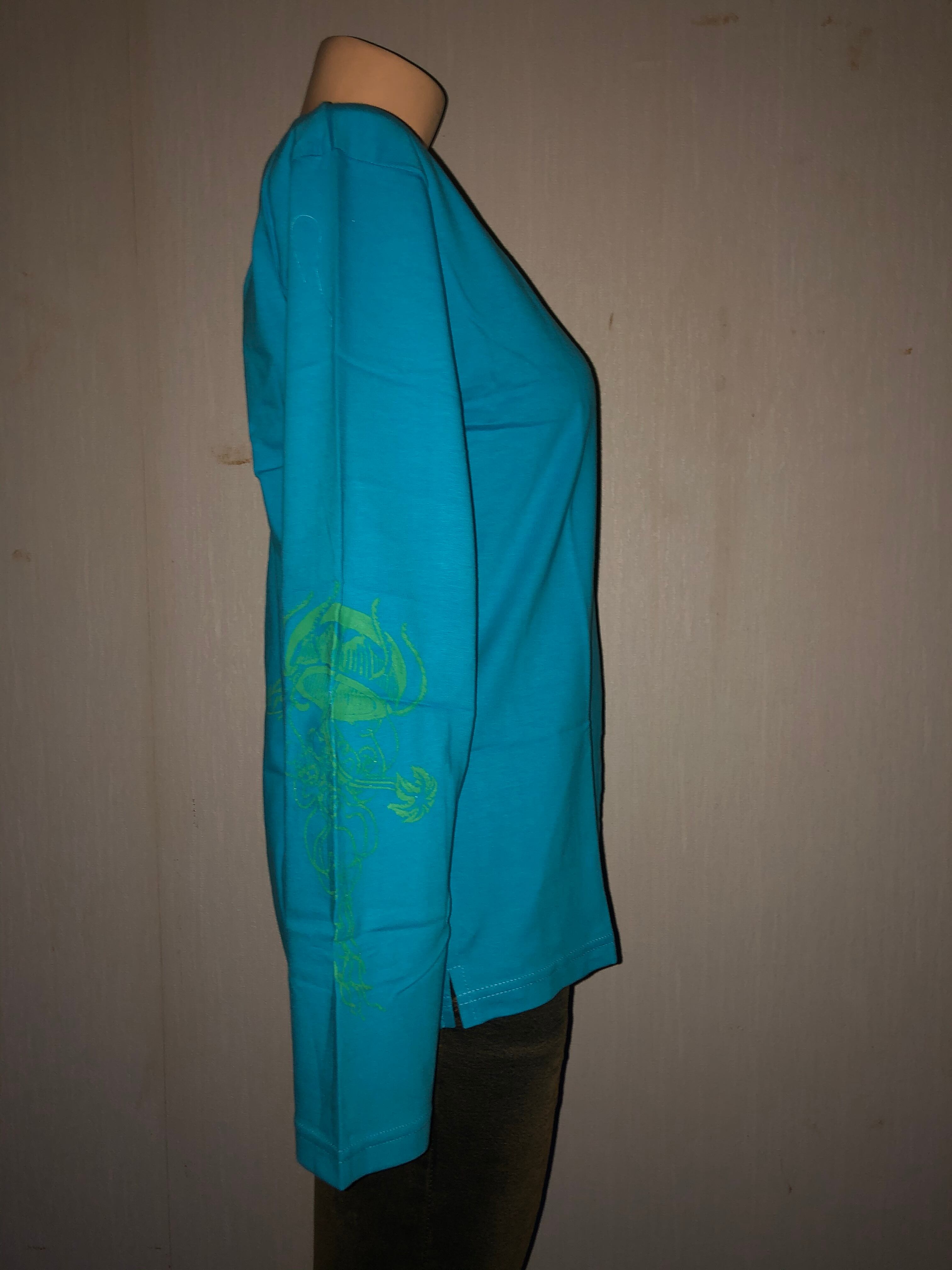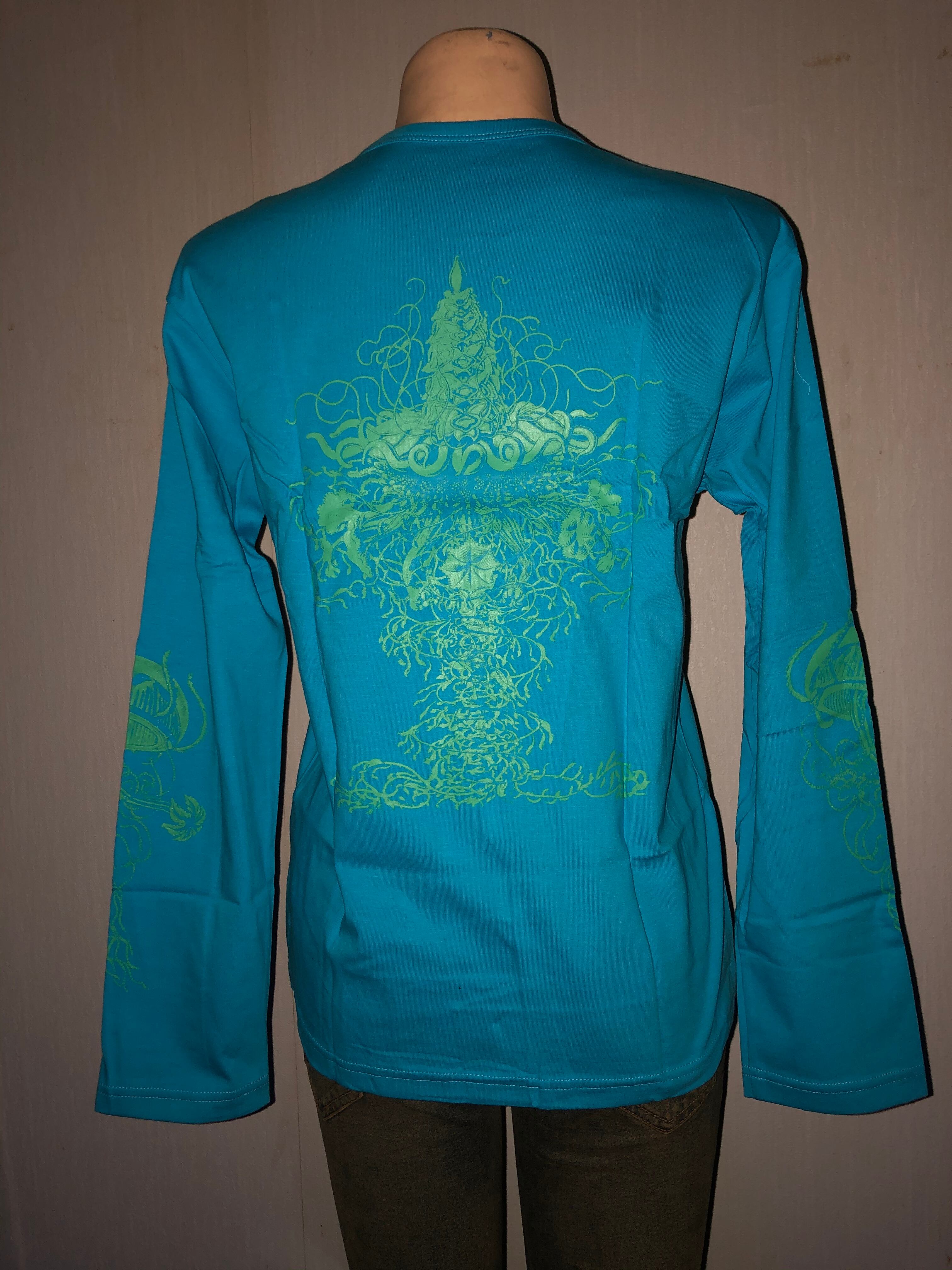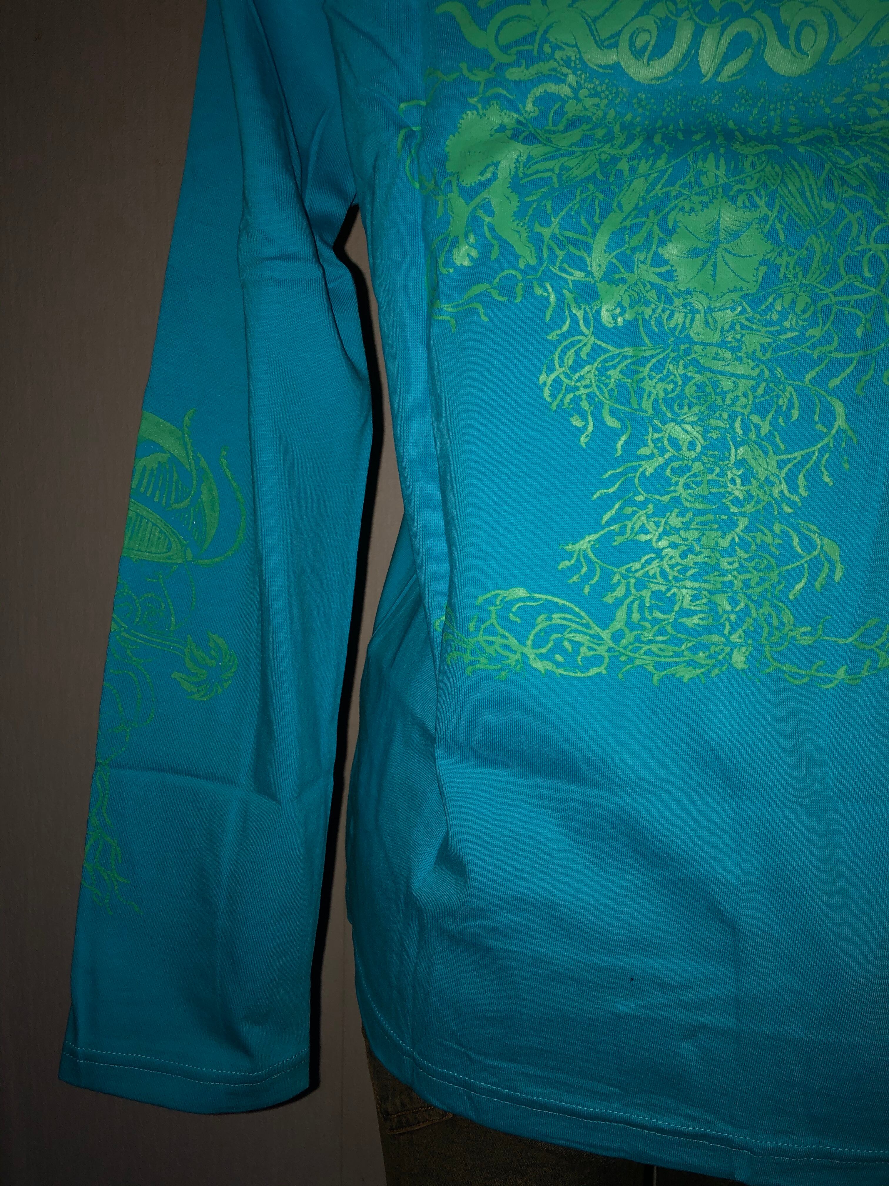 クラゲグリーンプリントブルー生地Mロングスリブ