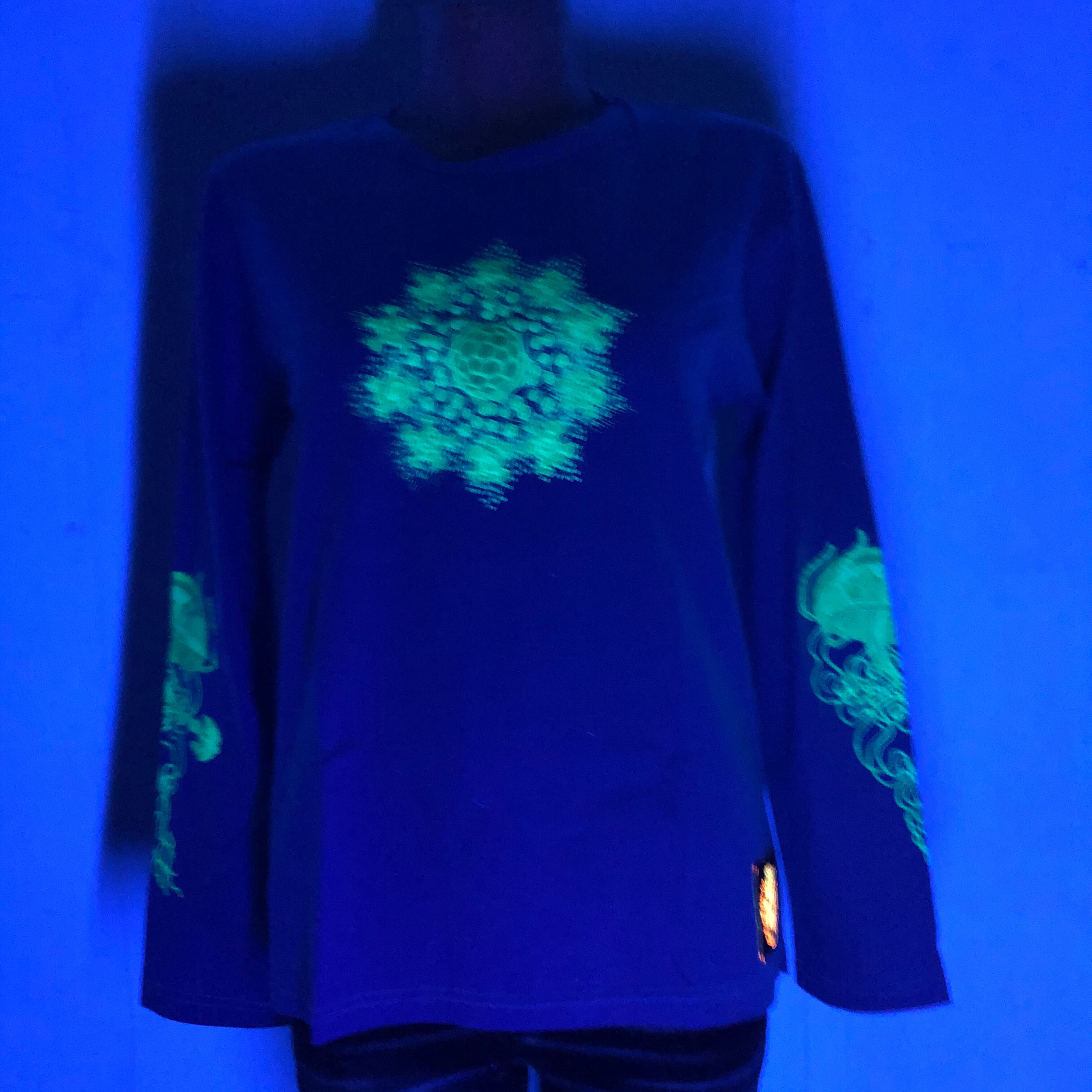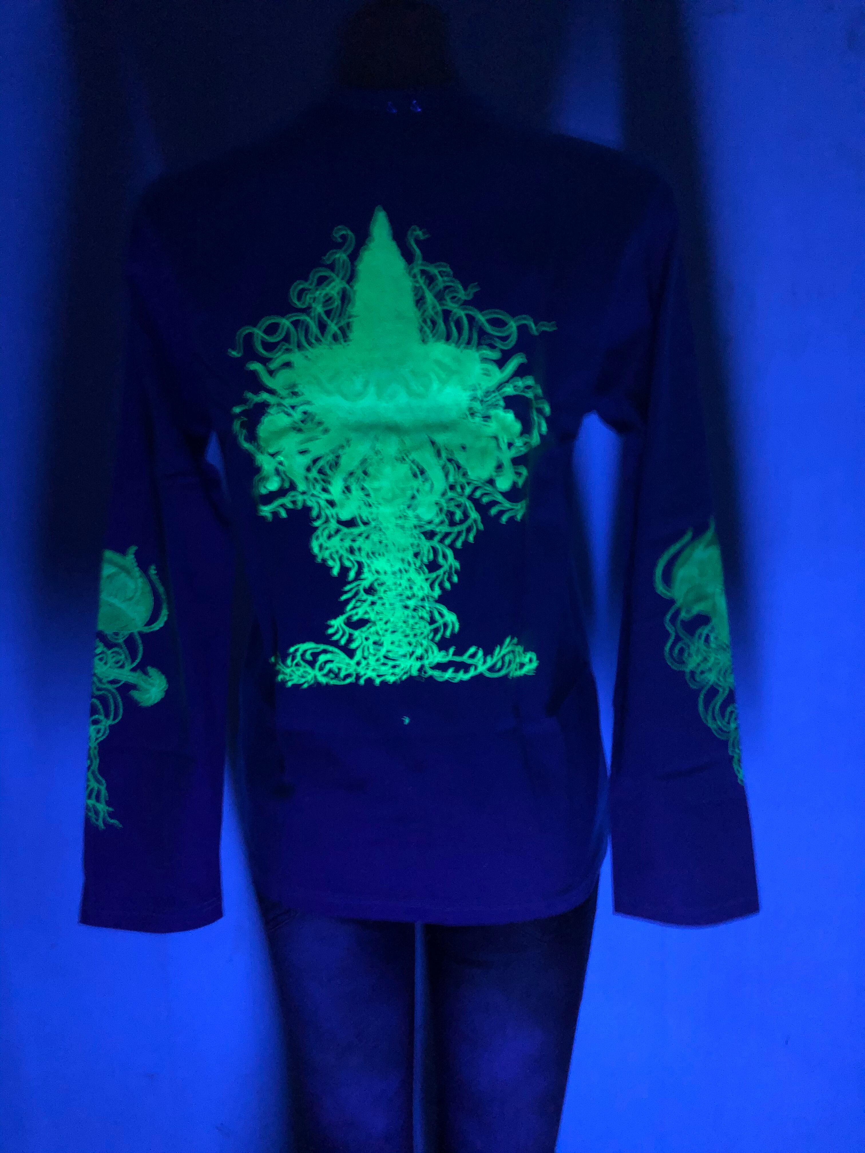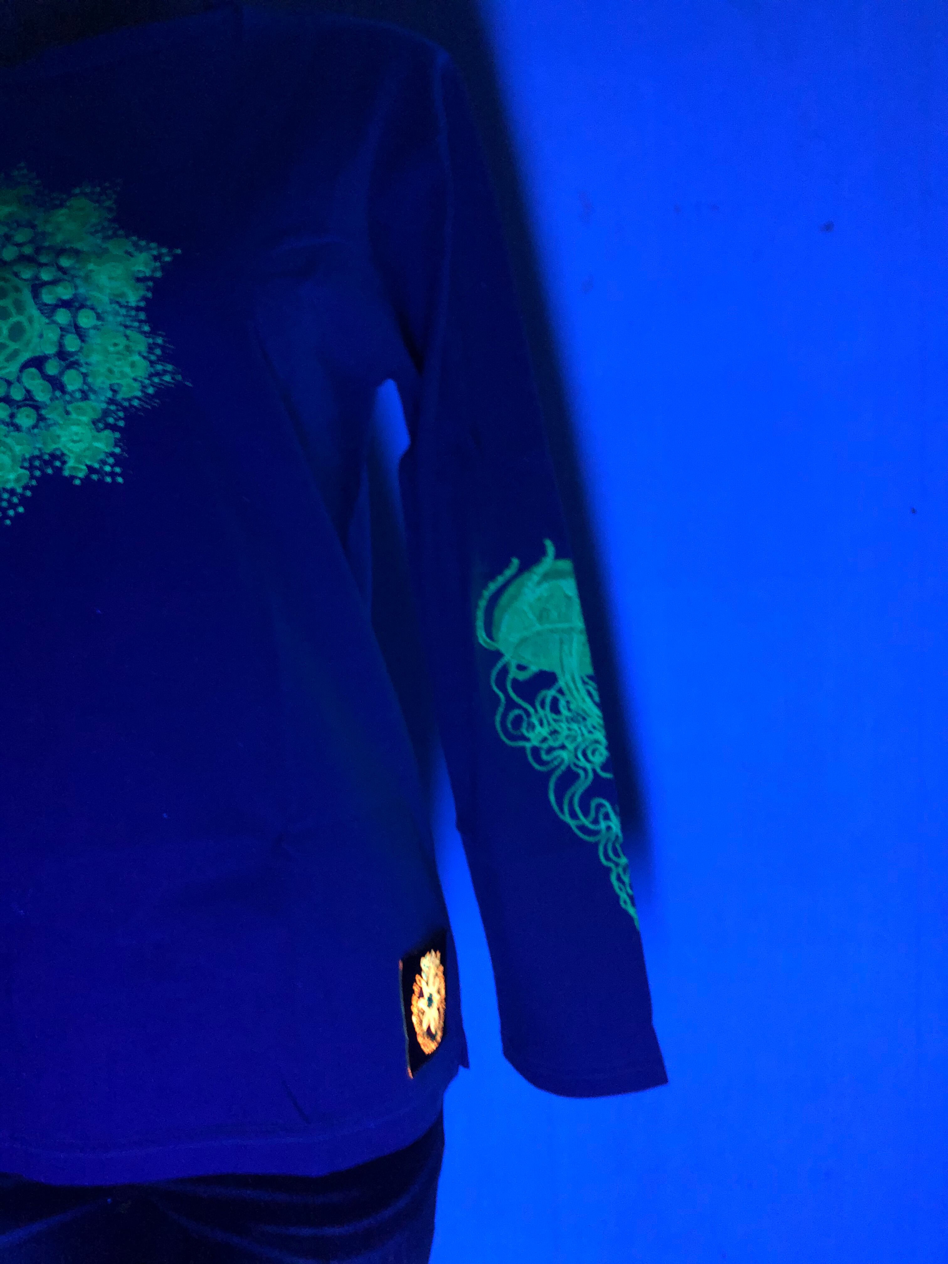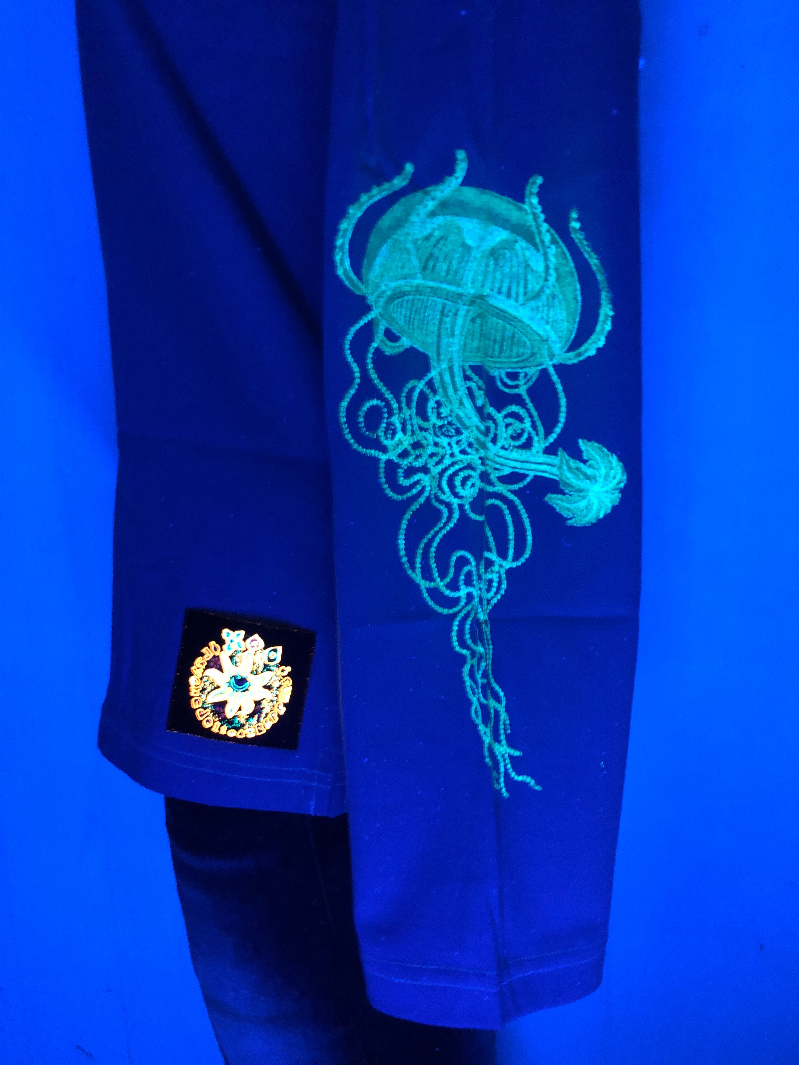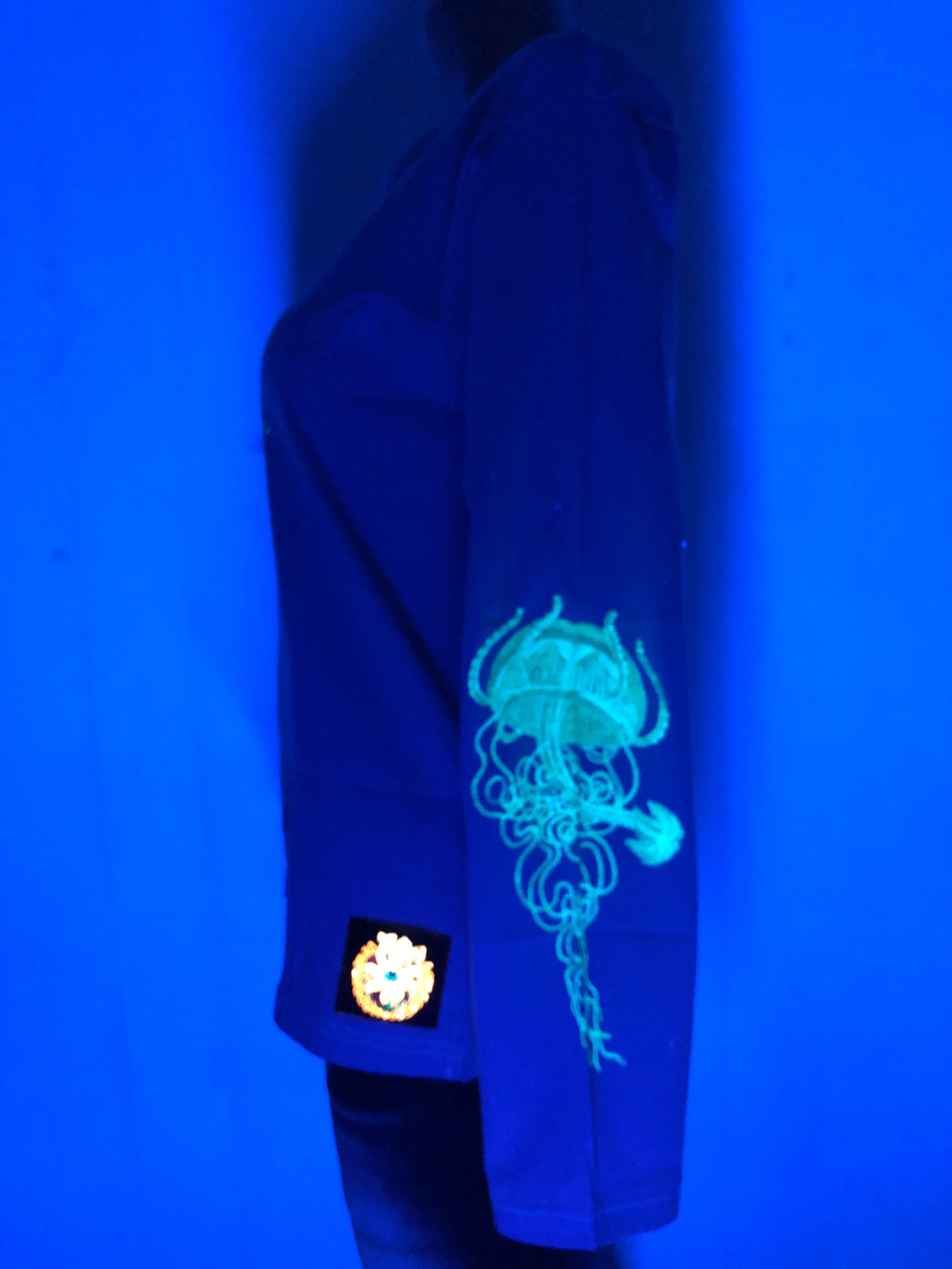 #サイケデリック #サイケ #イベント #パーティー #レイブ #KOO #オリジナル #タグシークレットポケット #ブルー生地Tシャツ #ロングスリブTシャツ #クラゲ #ブラックライト