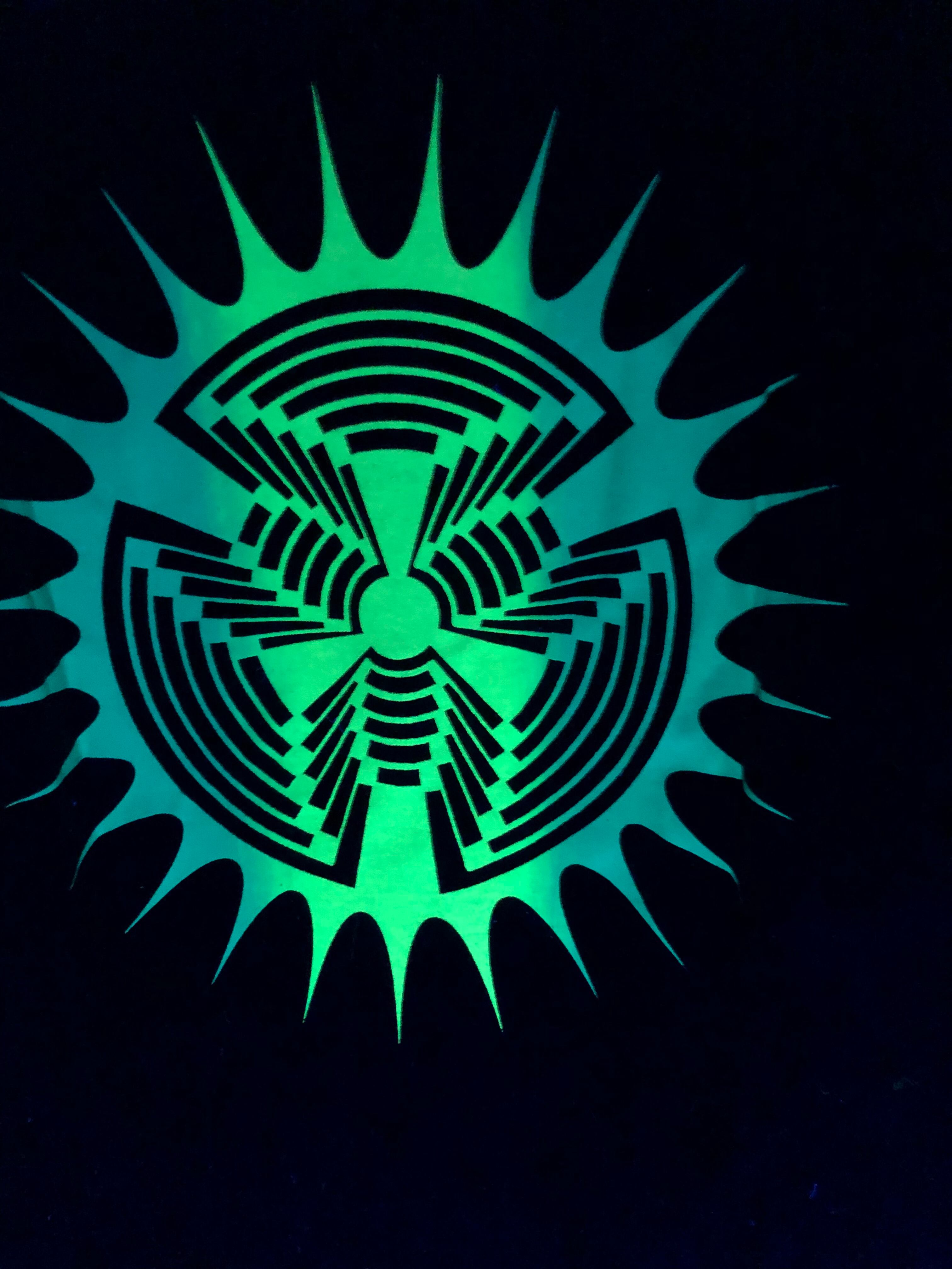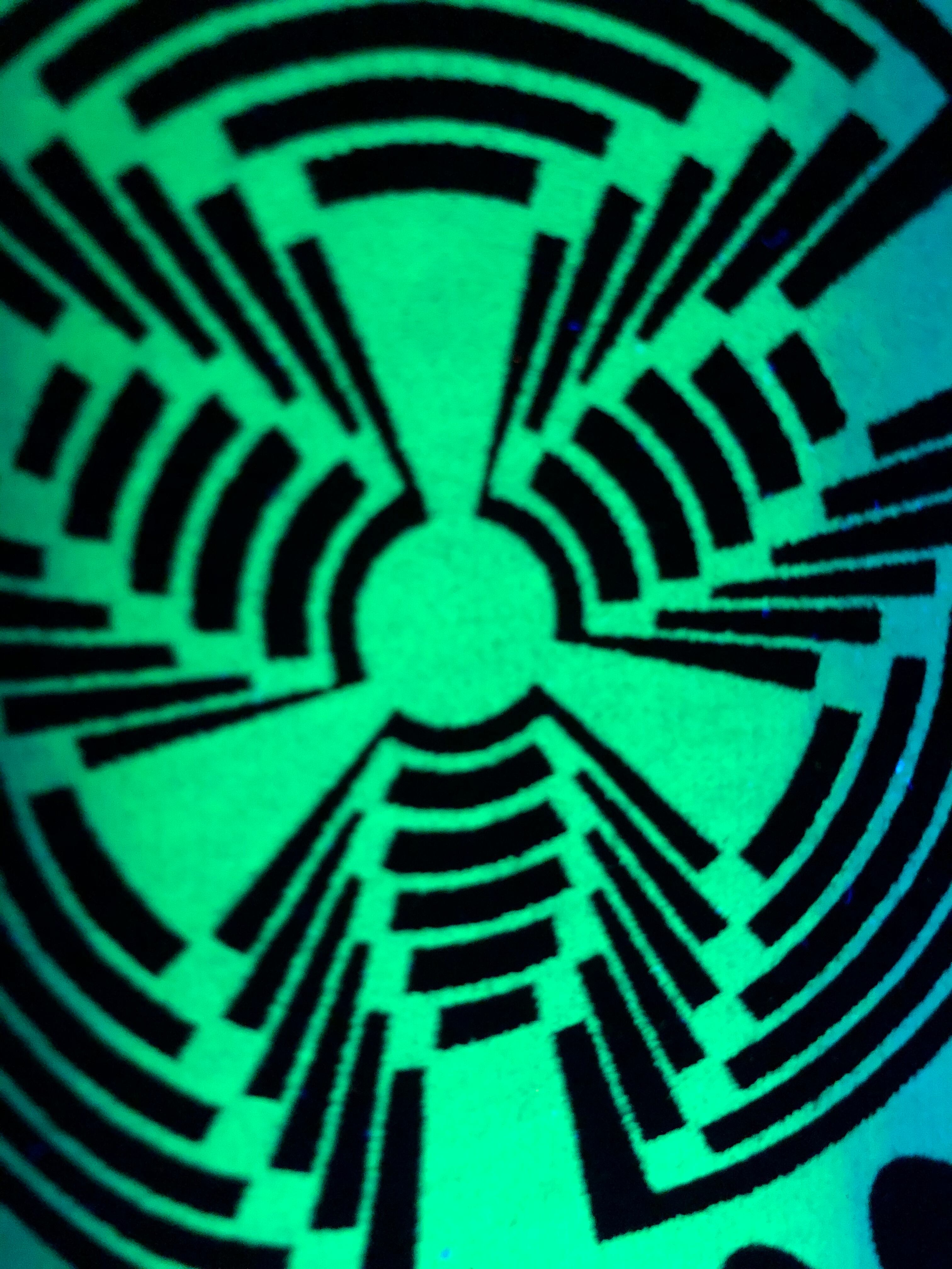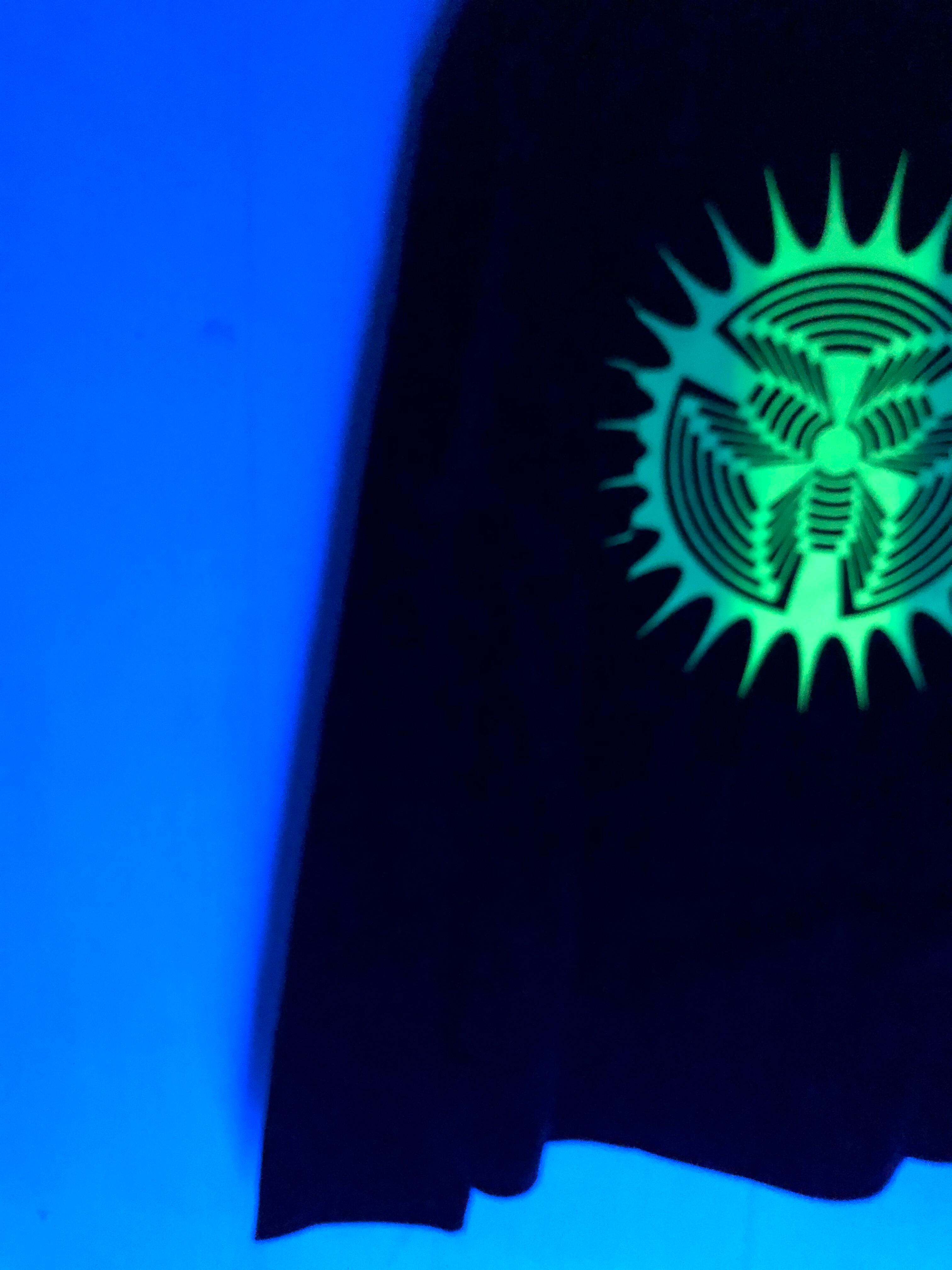 グリーンとイエローがプリントされていてブラックライトで光ります。
