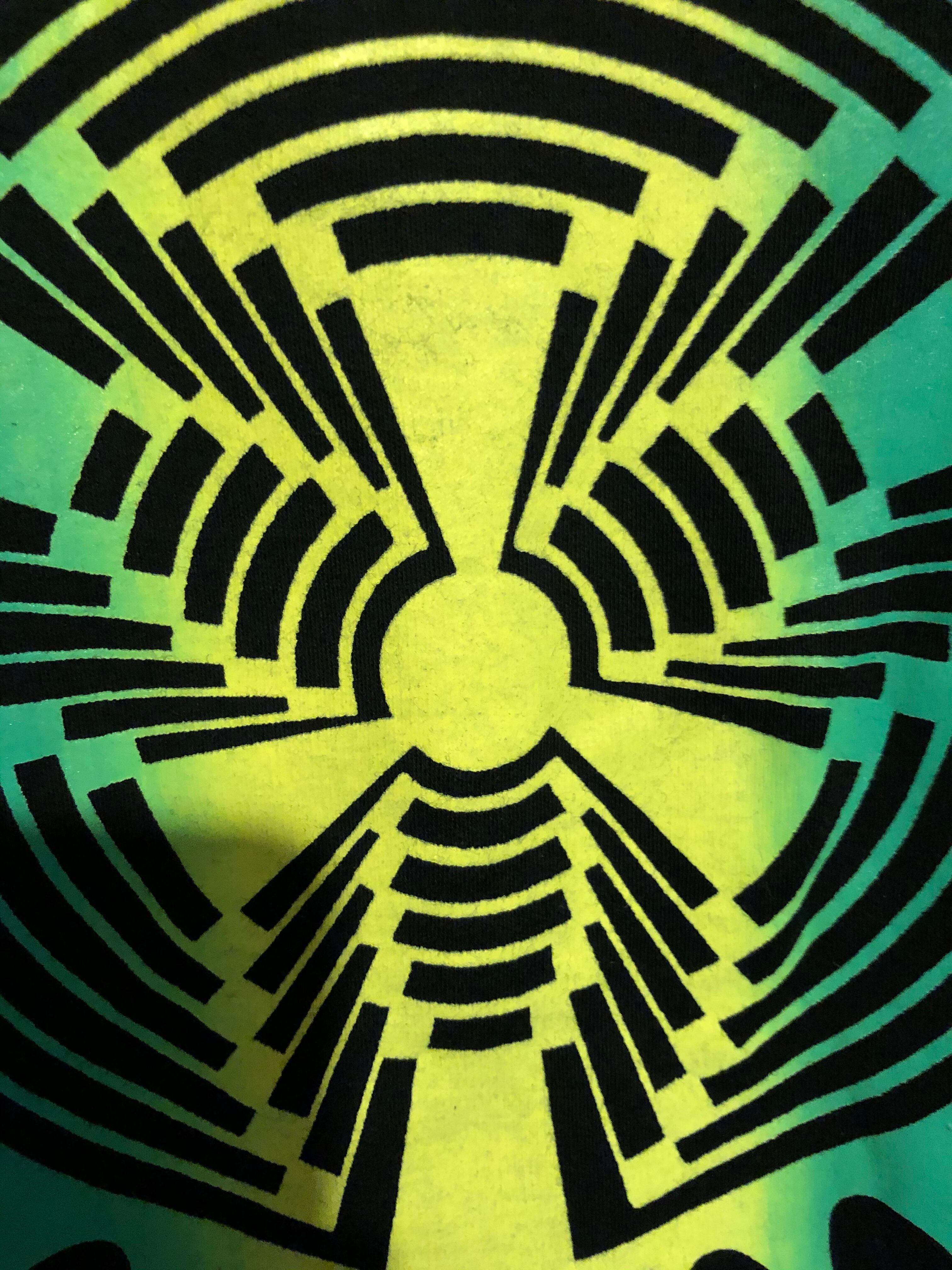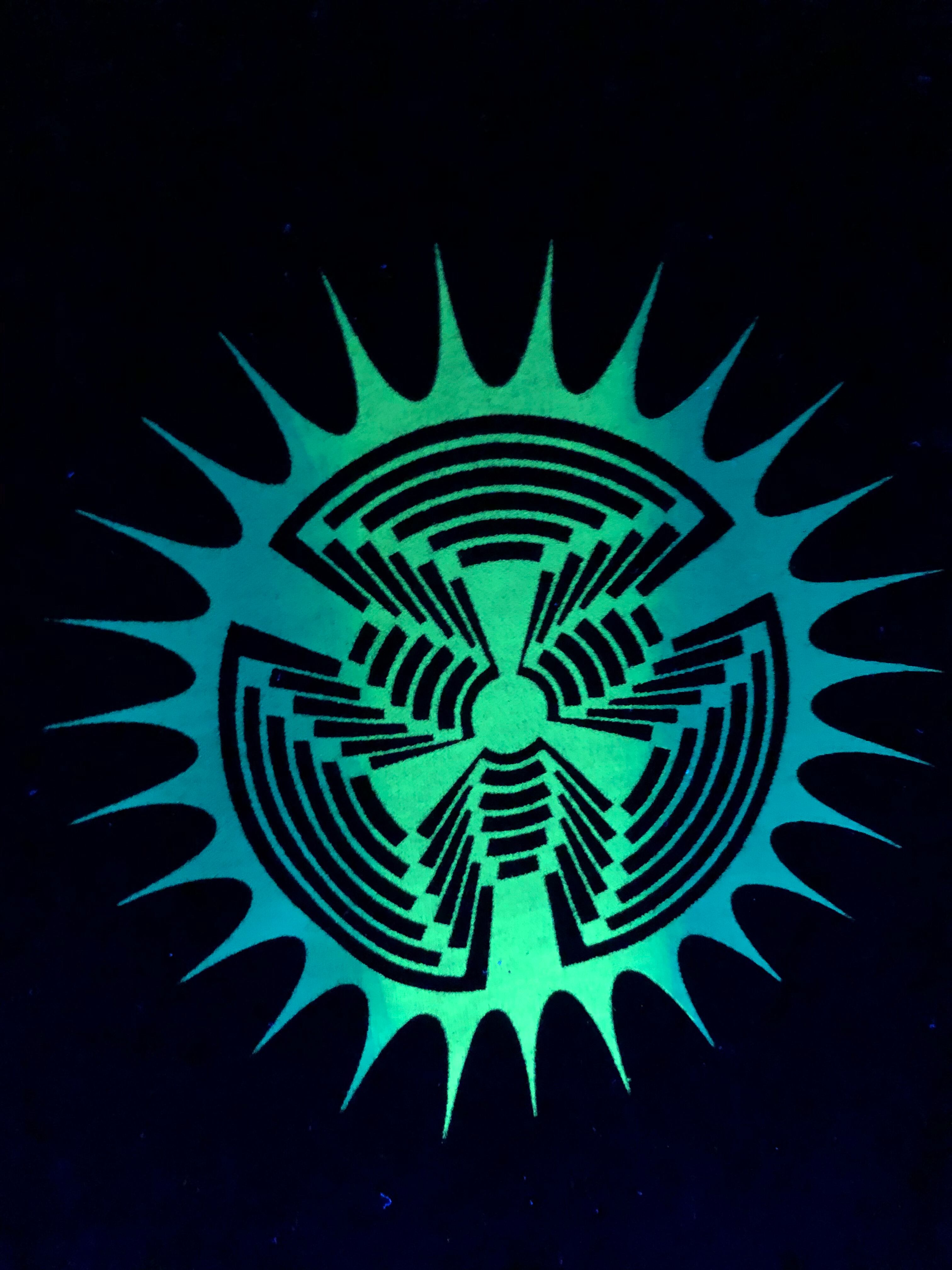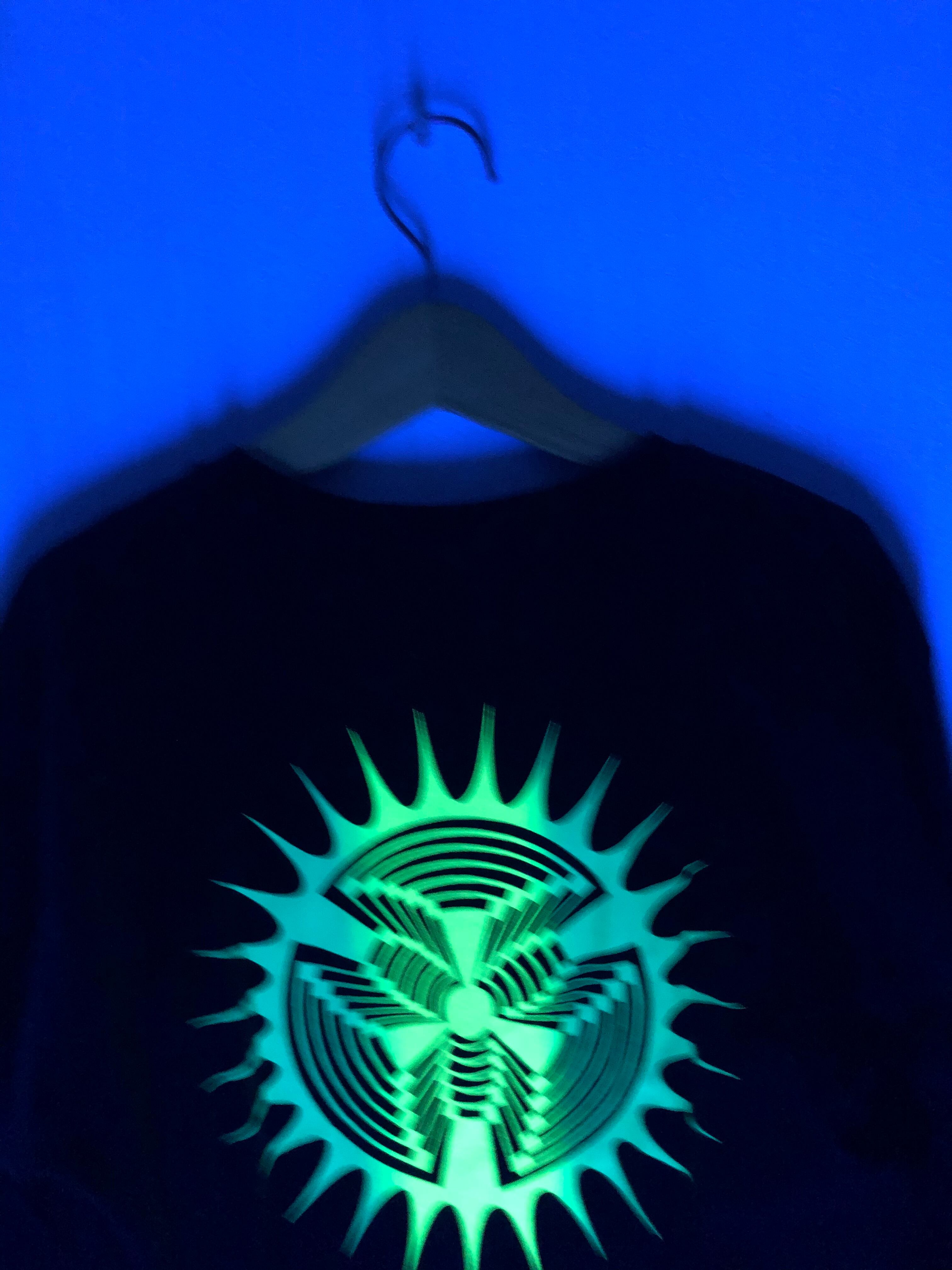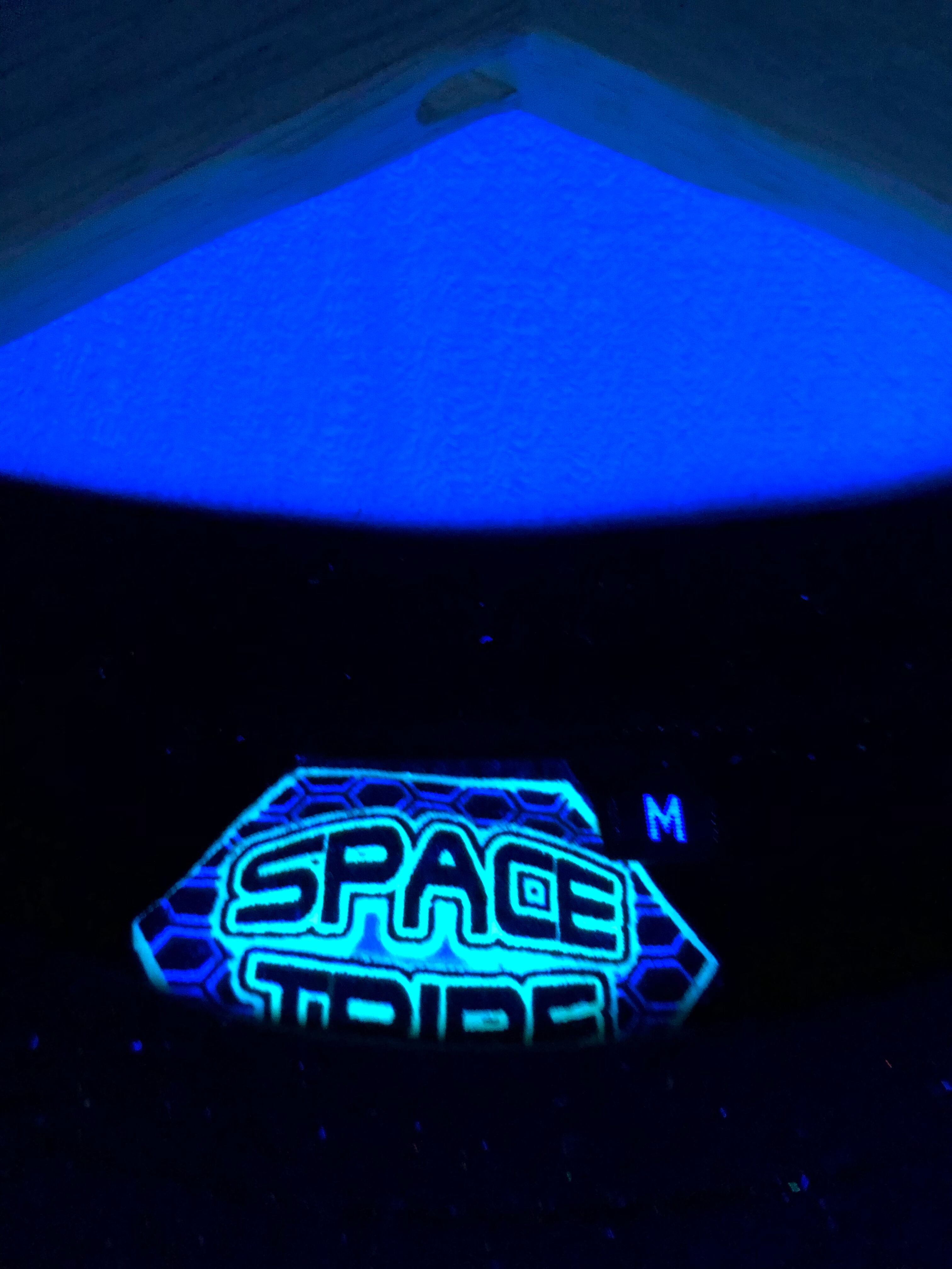 グリーンとイエローがプリントされていてブラックライトで光ります。