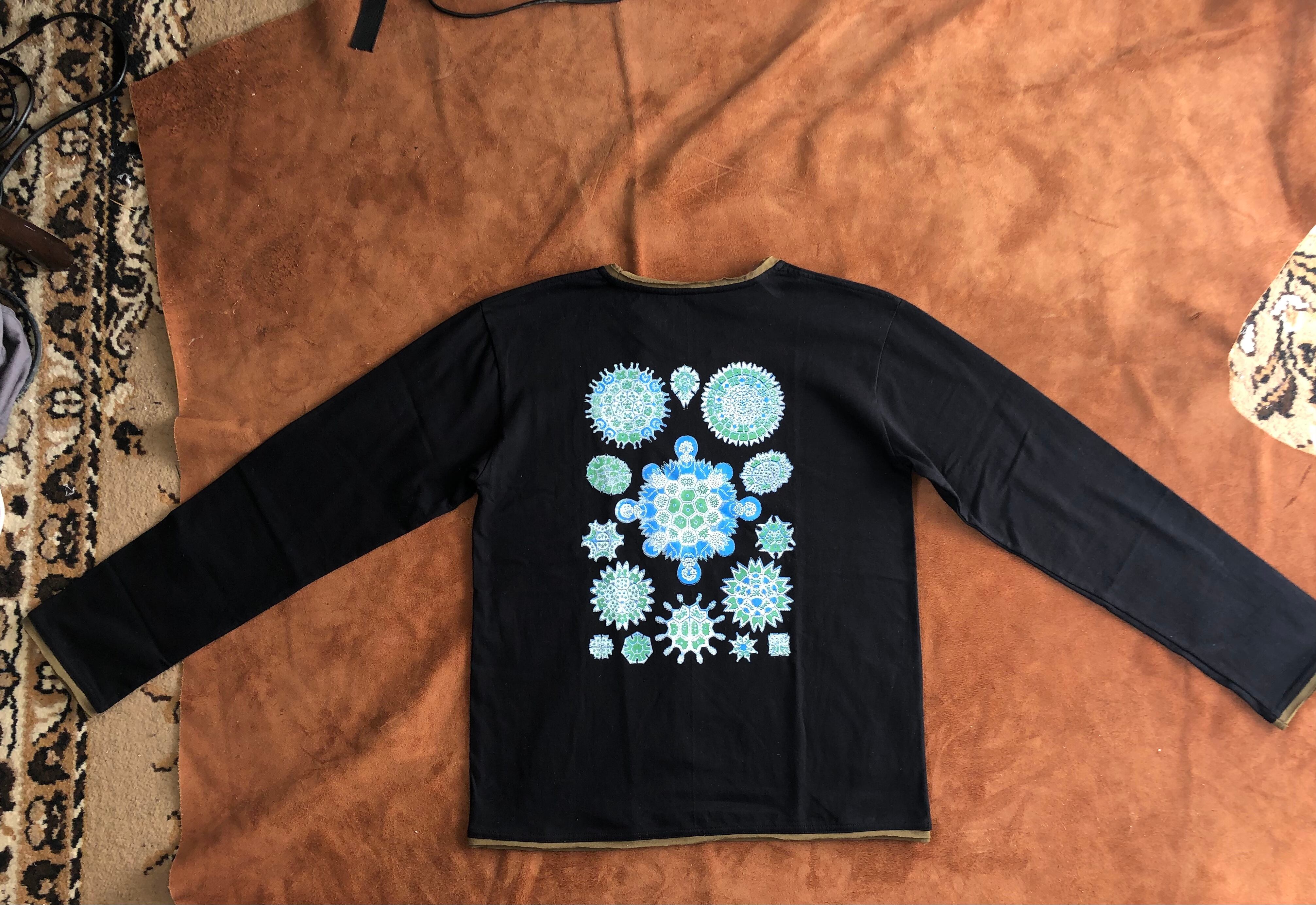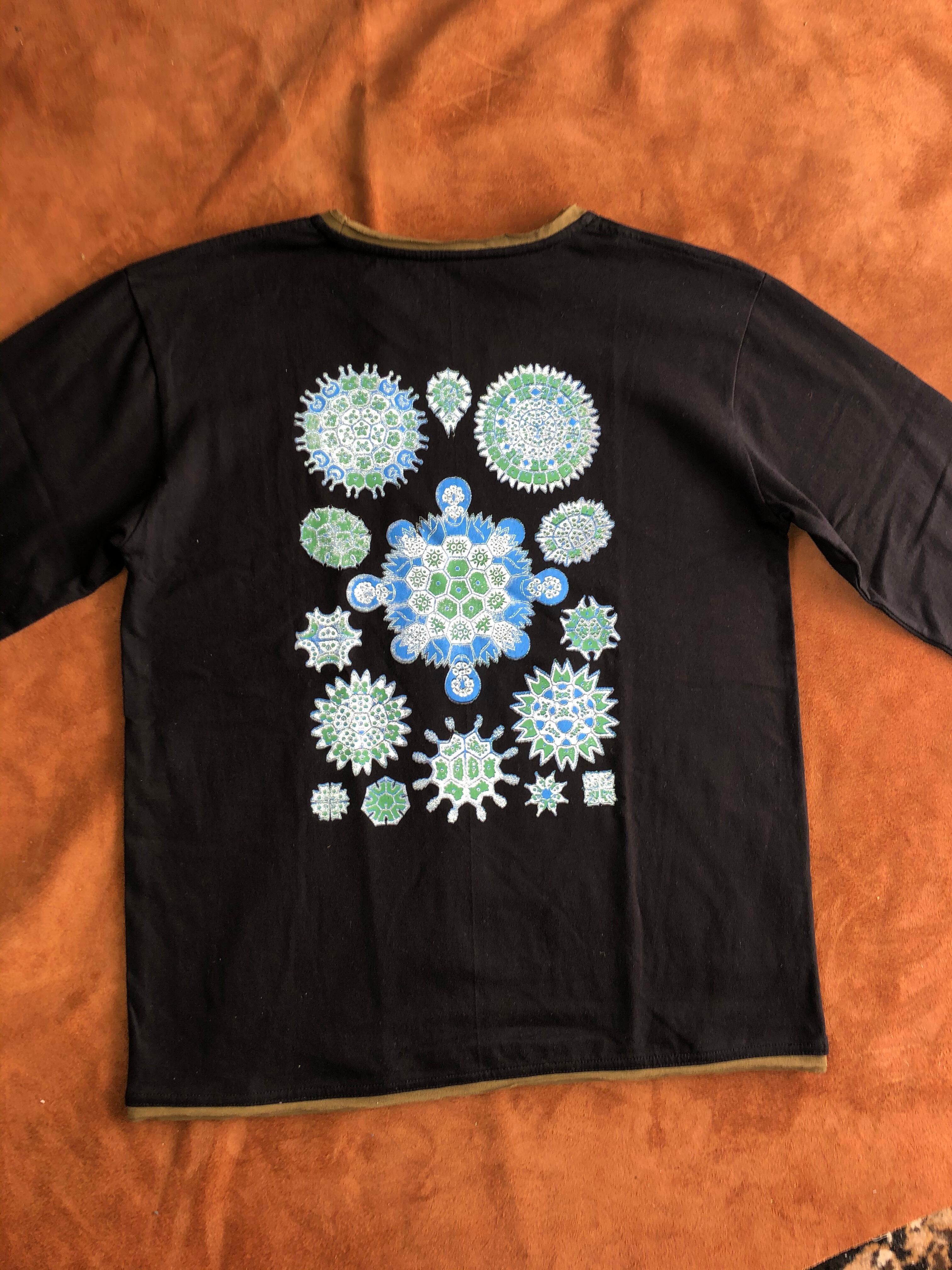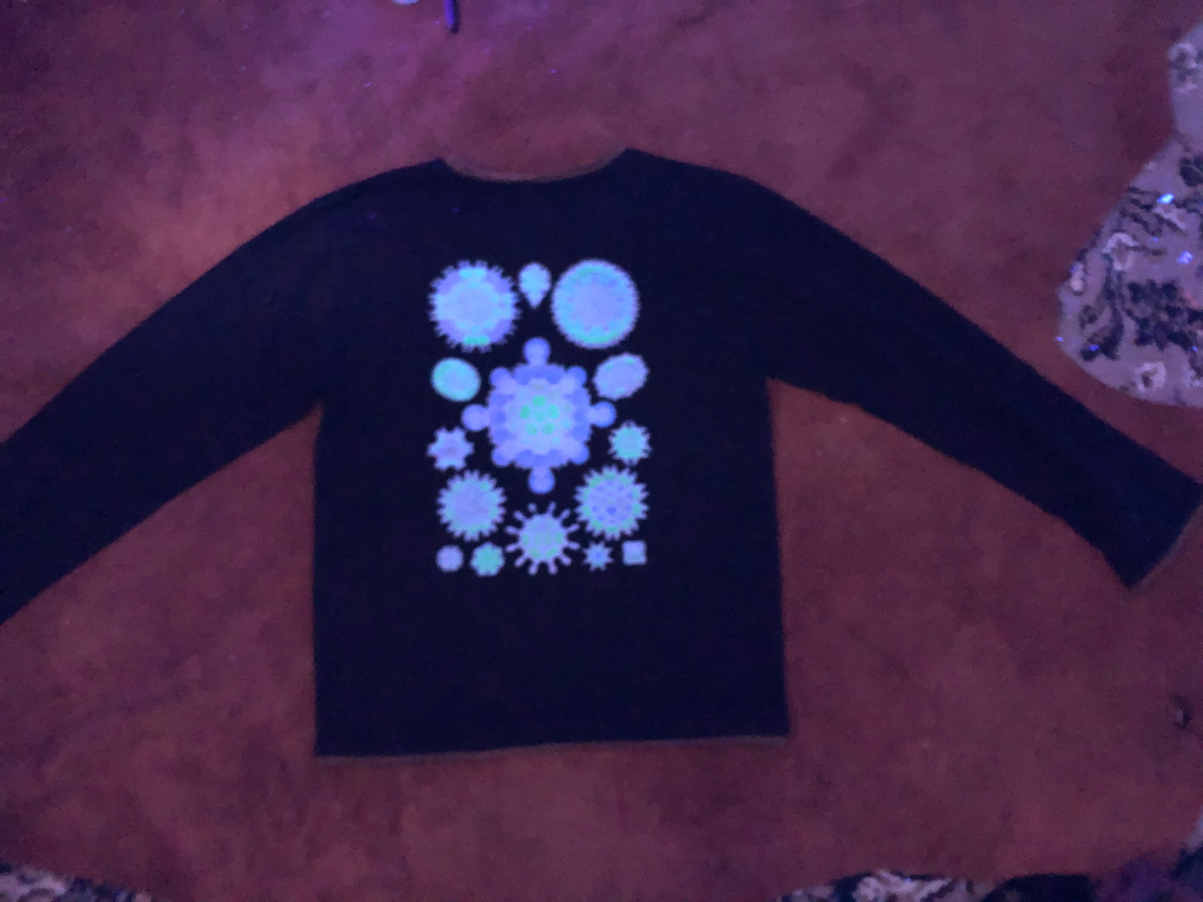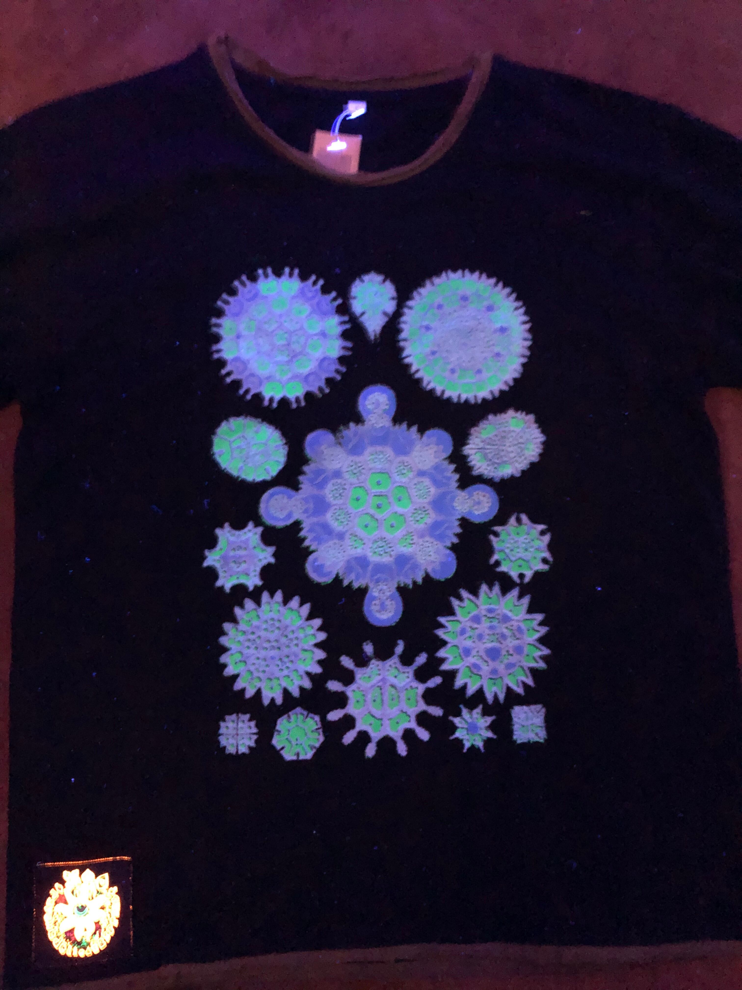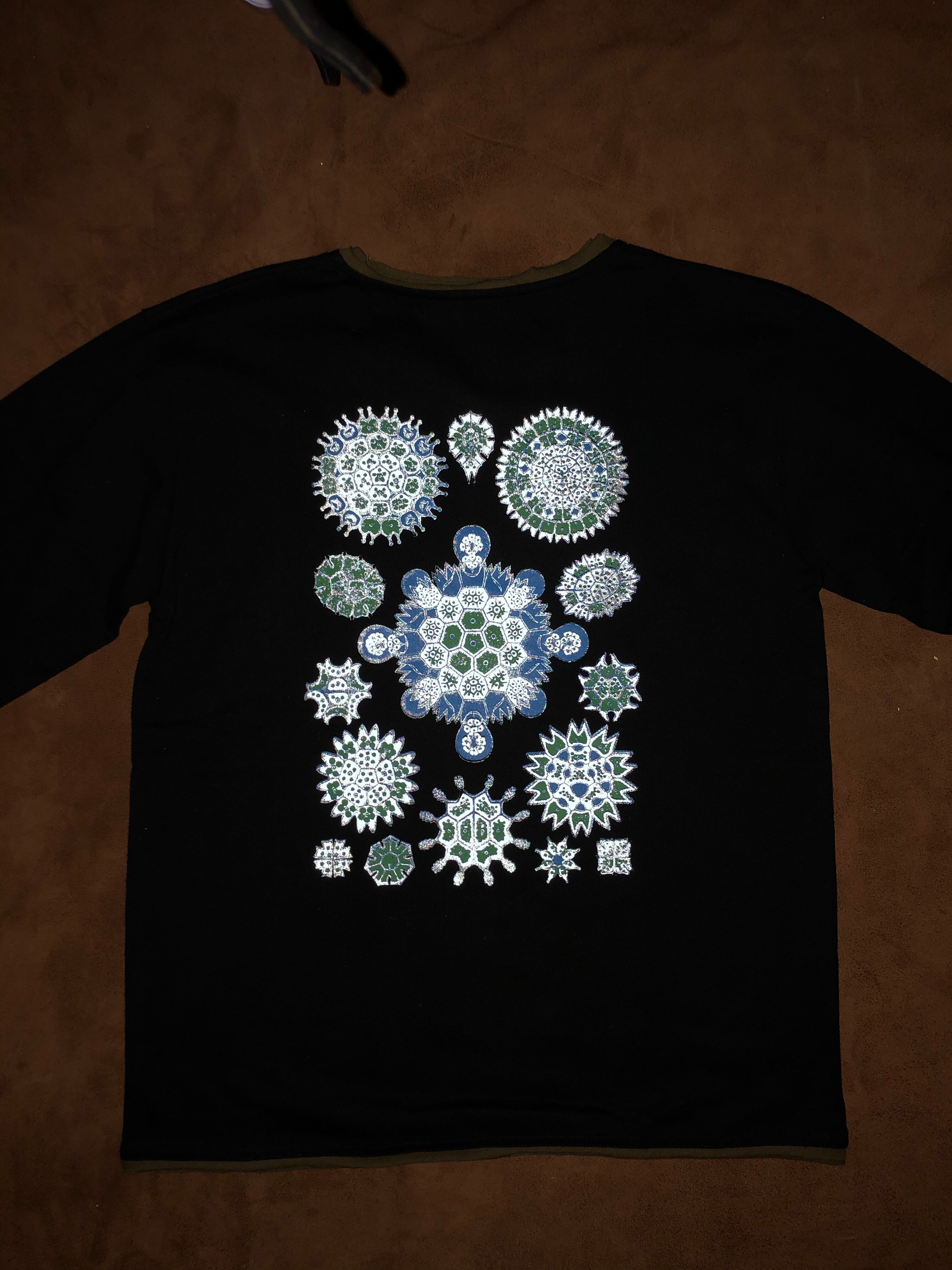 プリントはフロントとバックに入っていてブルーとグリーンでブラックライトで光ります。