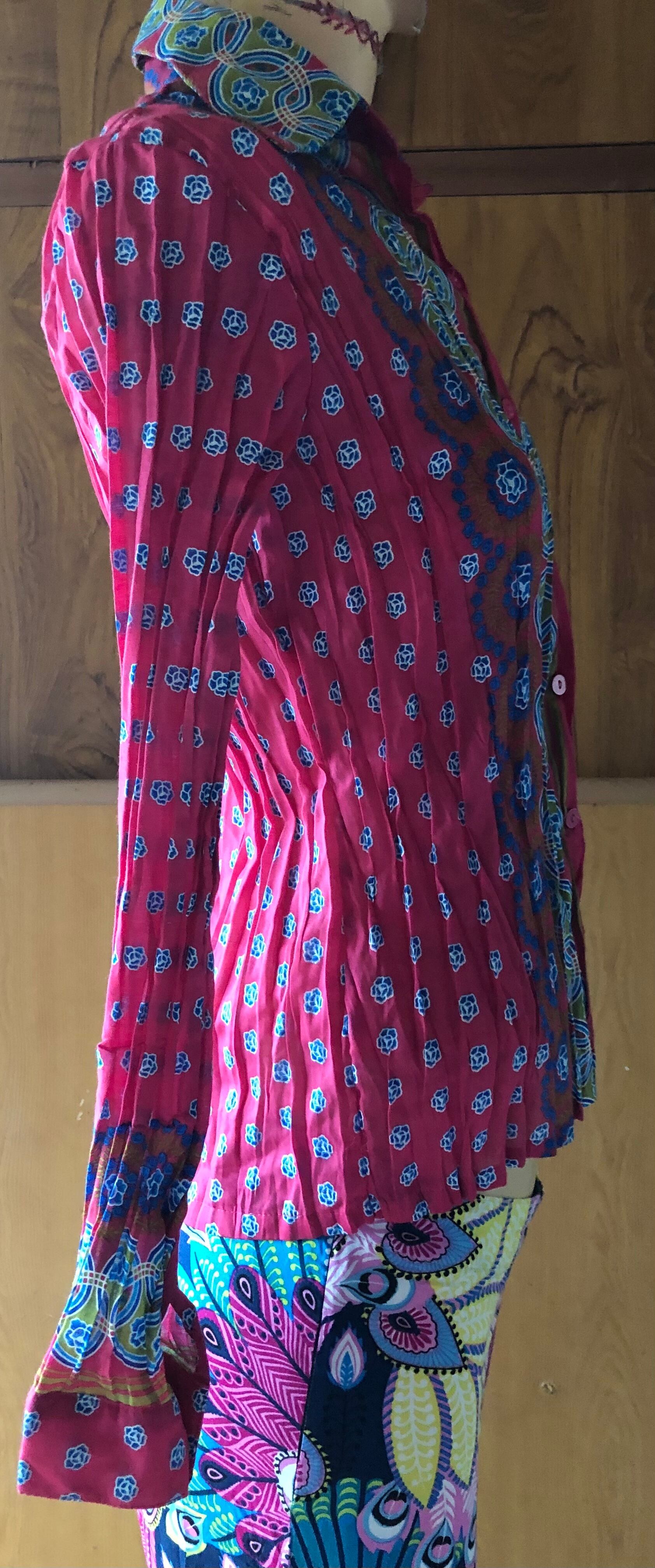 ピンクがベースになっていてブルーなどの柄が入っていてとても素敵です。