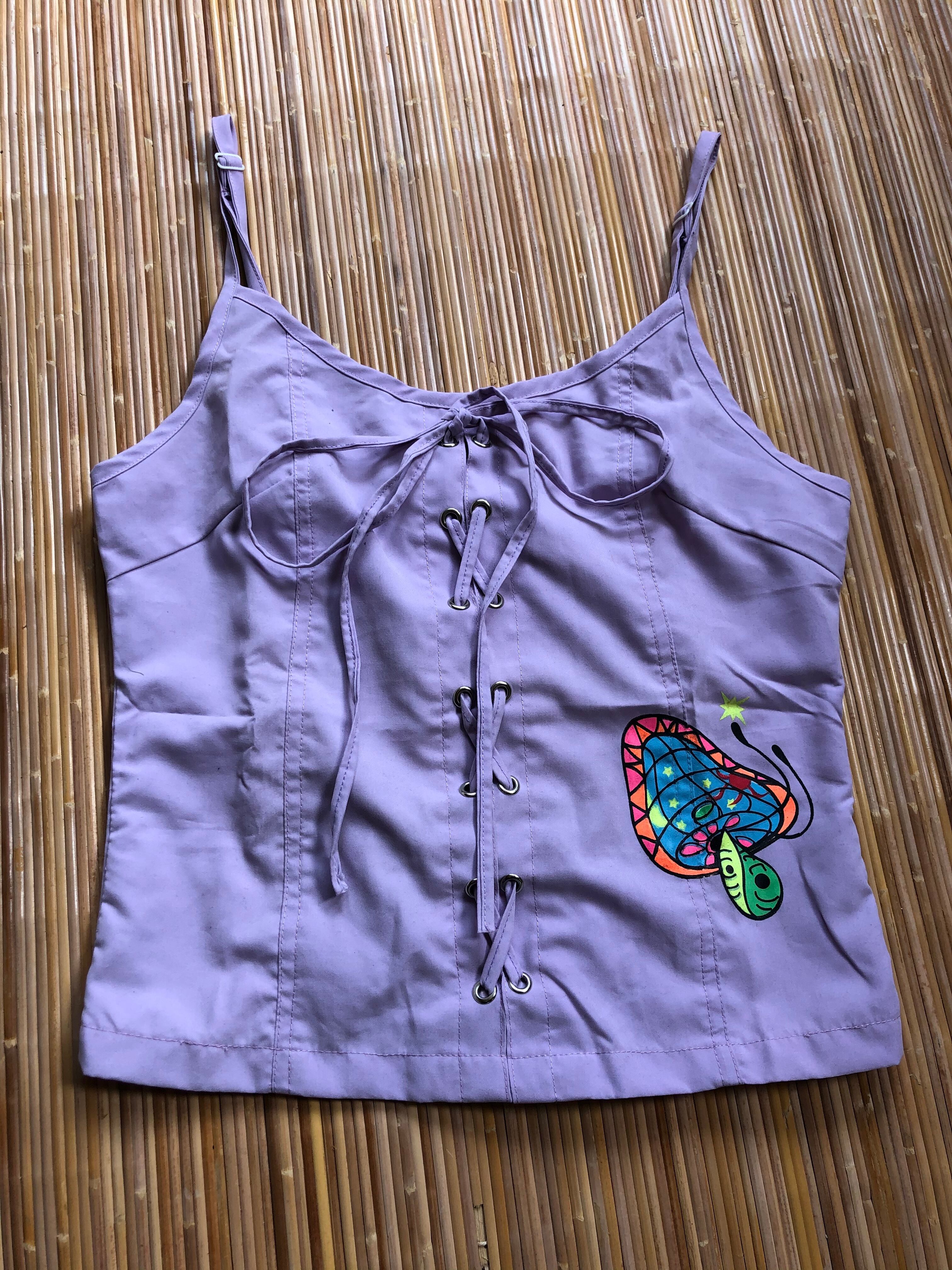 #キャミソール#KOO #レイブ #パーティー #イベント #サイケデリック #パープルキャミソール #ポリエステルキャミソール #きのこキャミソール #キノコ #ブラックライト