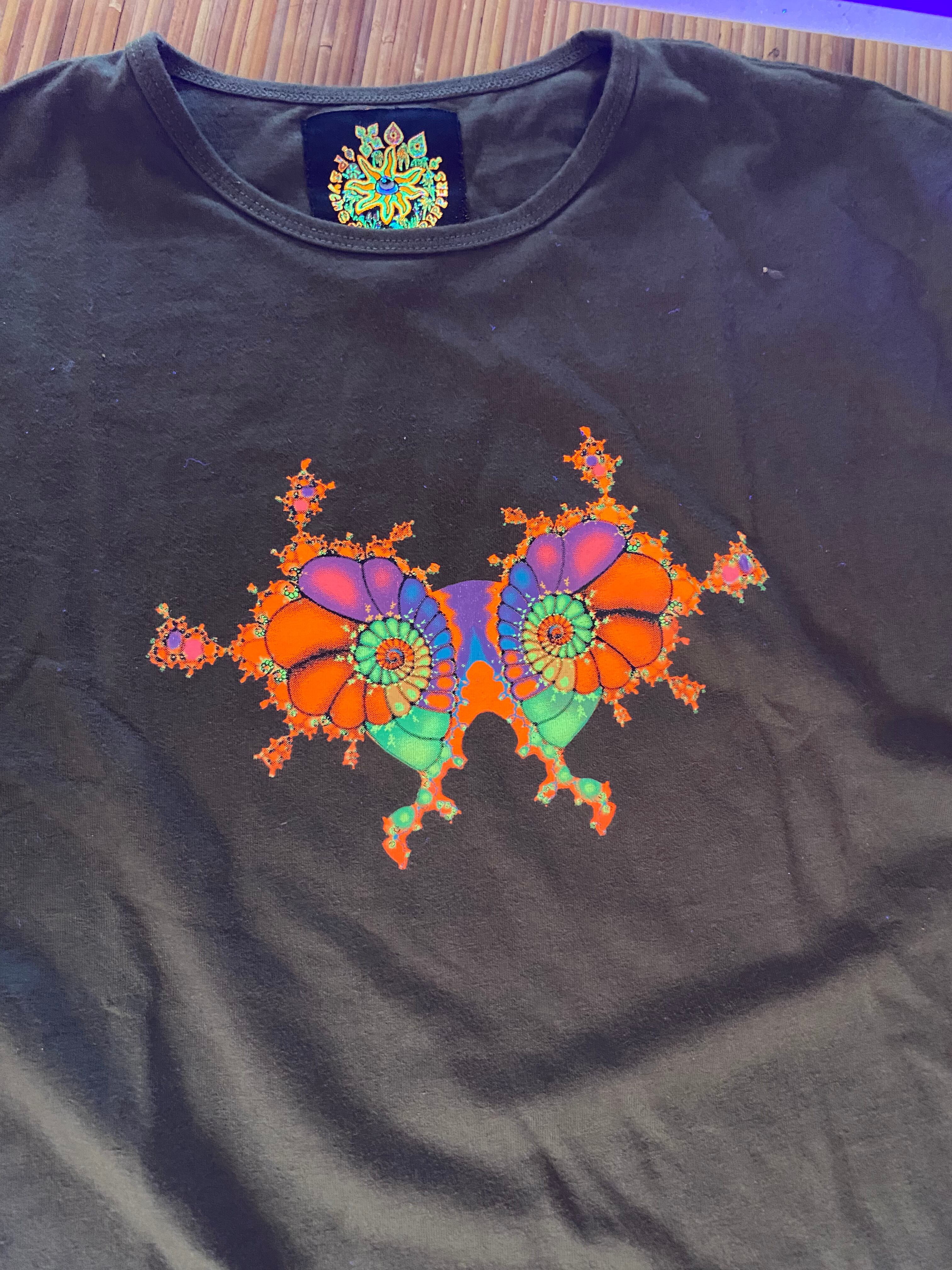 フロント、バック、スリブにプリントしてますブラックライトに反応して光ります