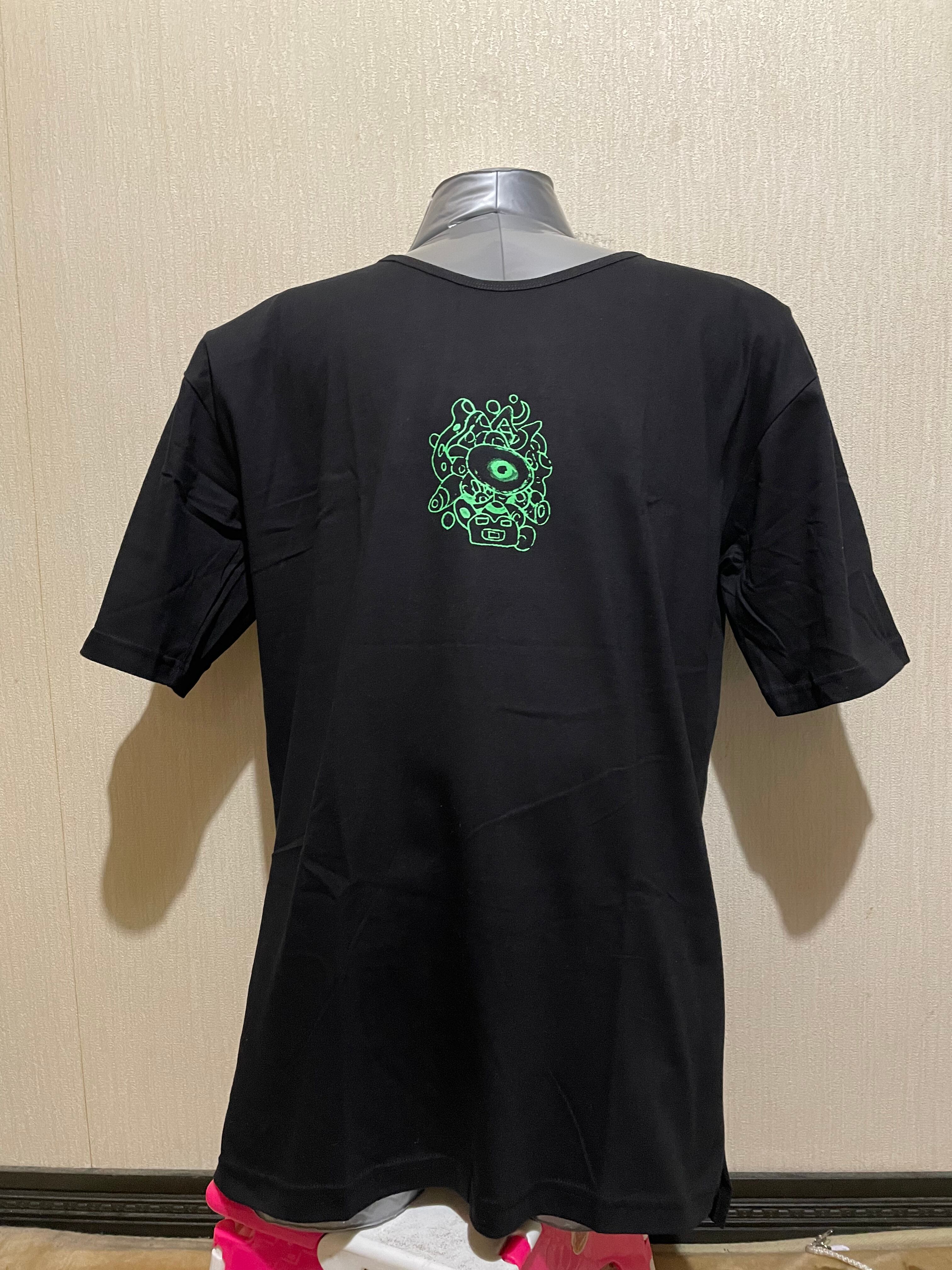 KOOオリジナルTシャツ無意識の思考プリントグリーンプリントLブラック