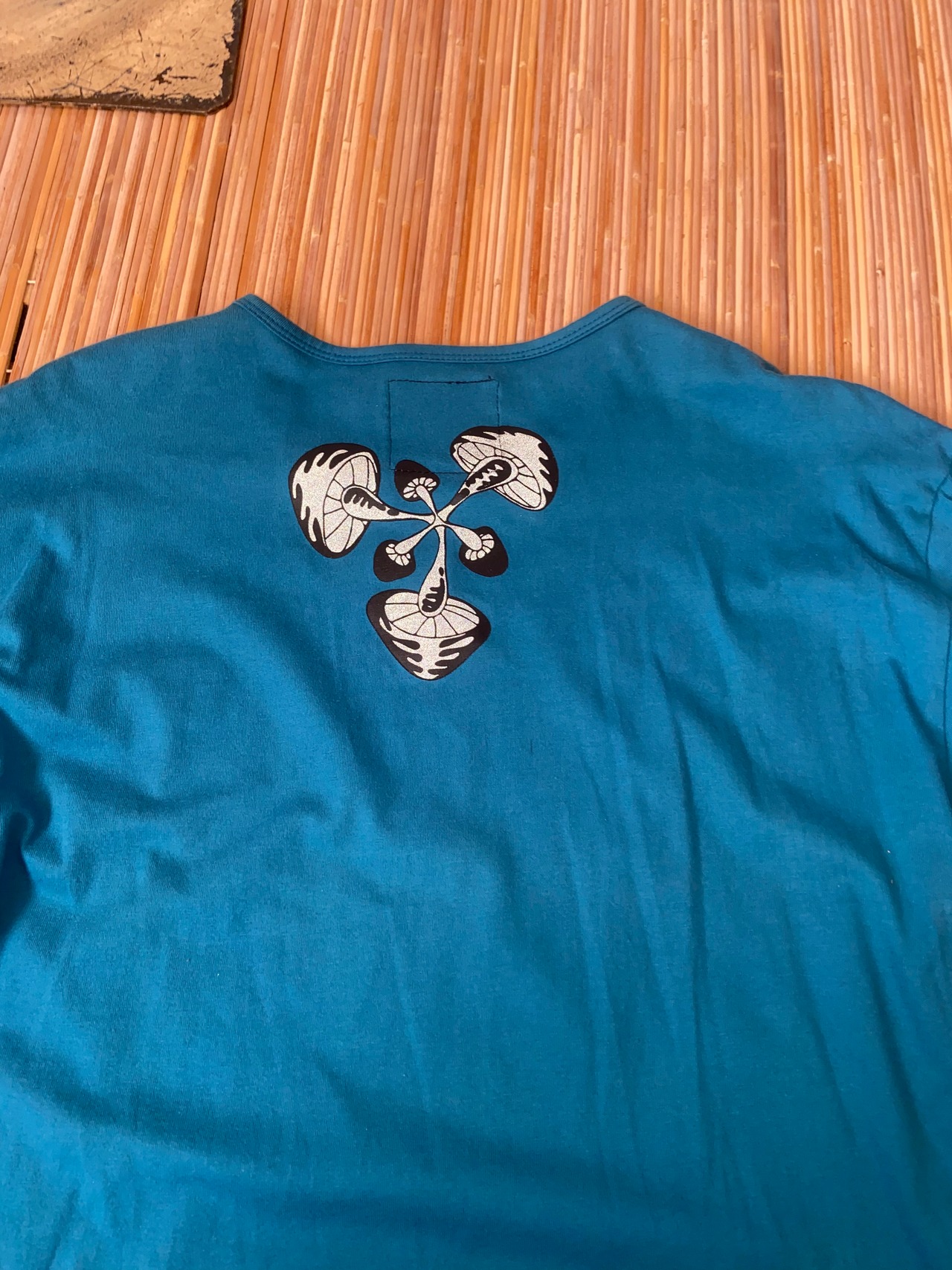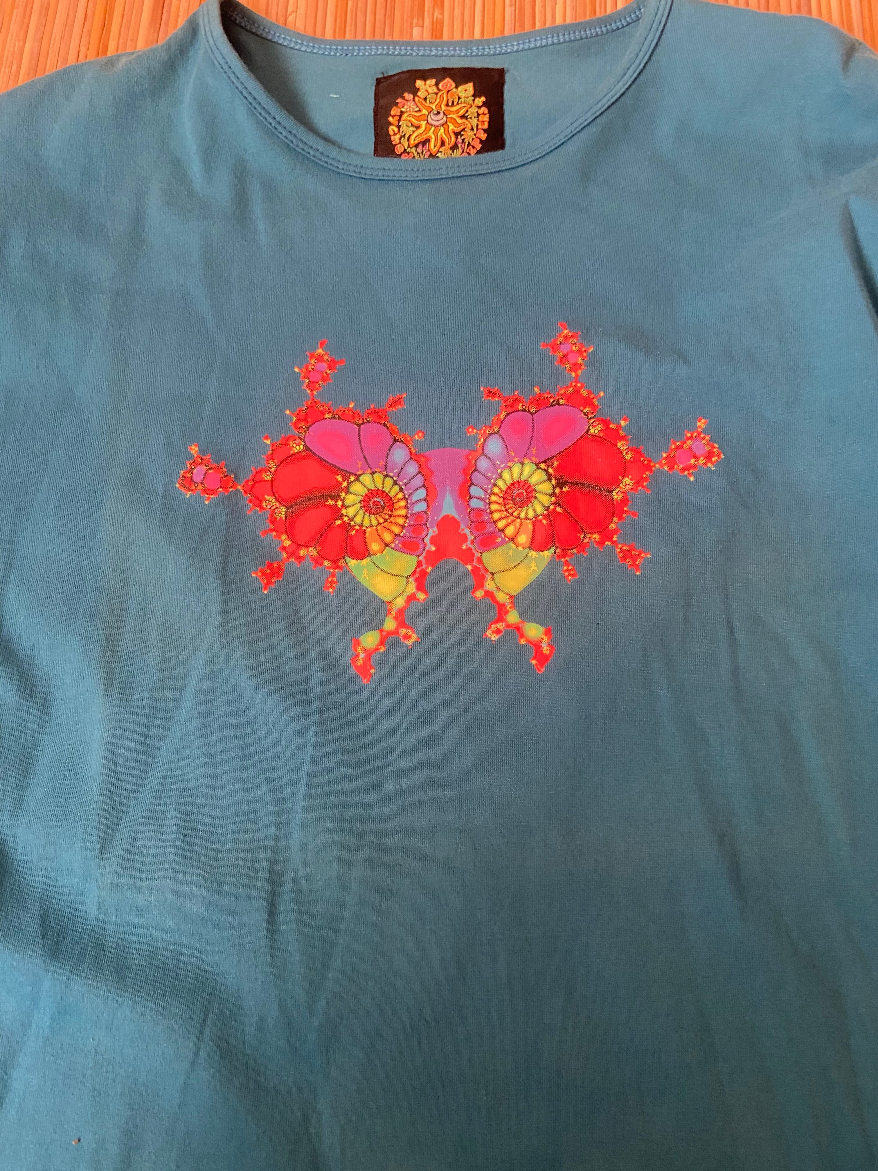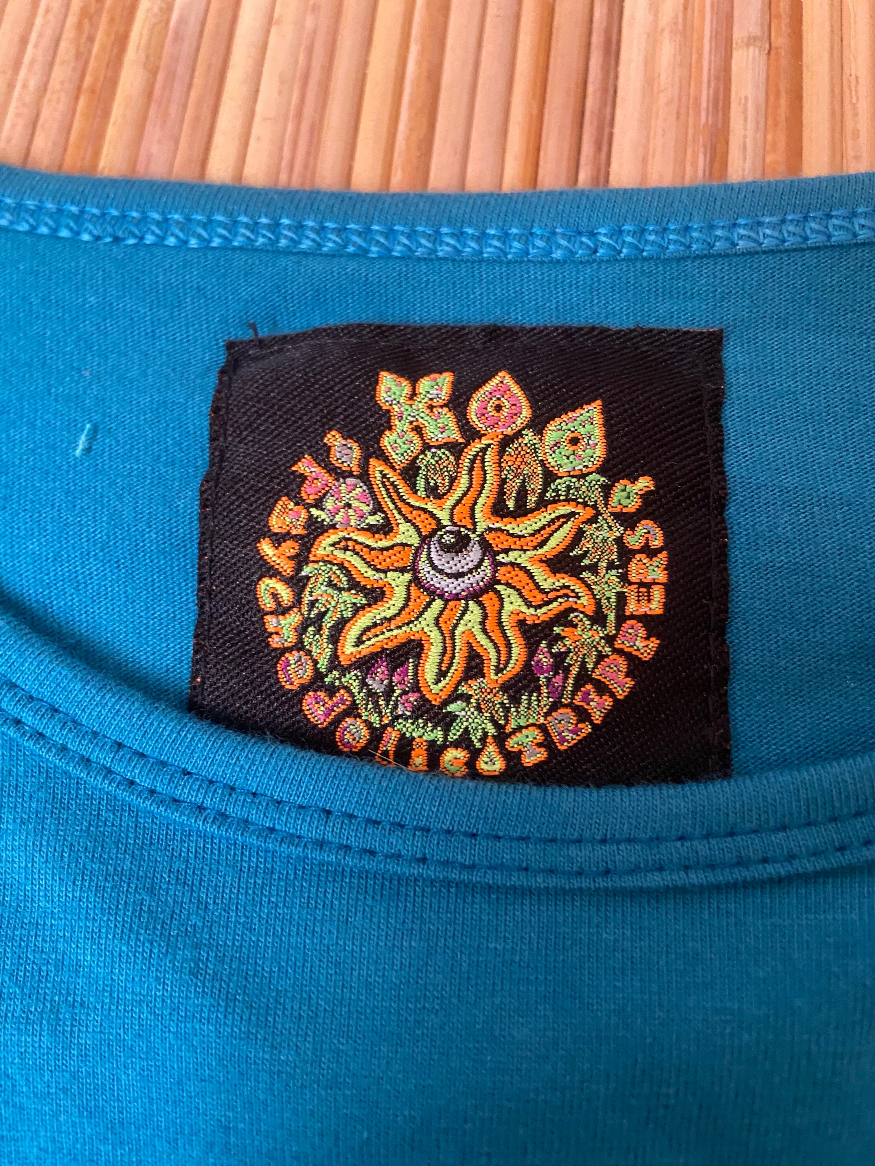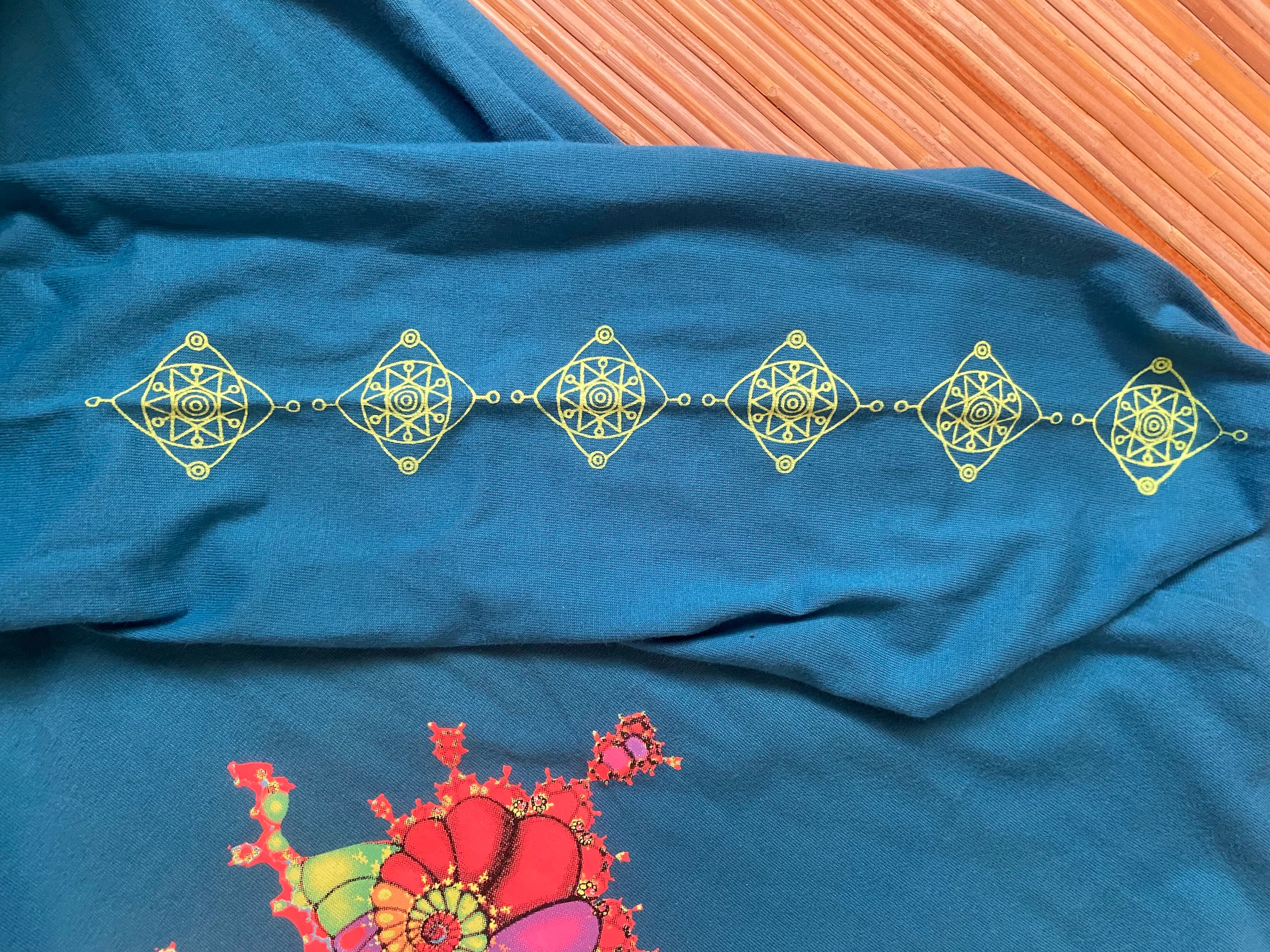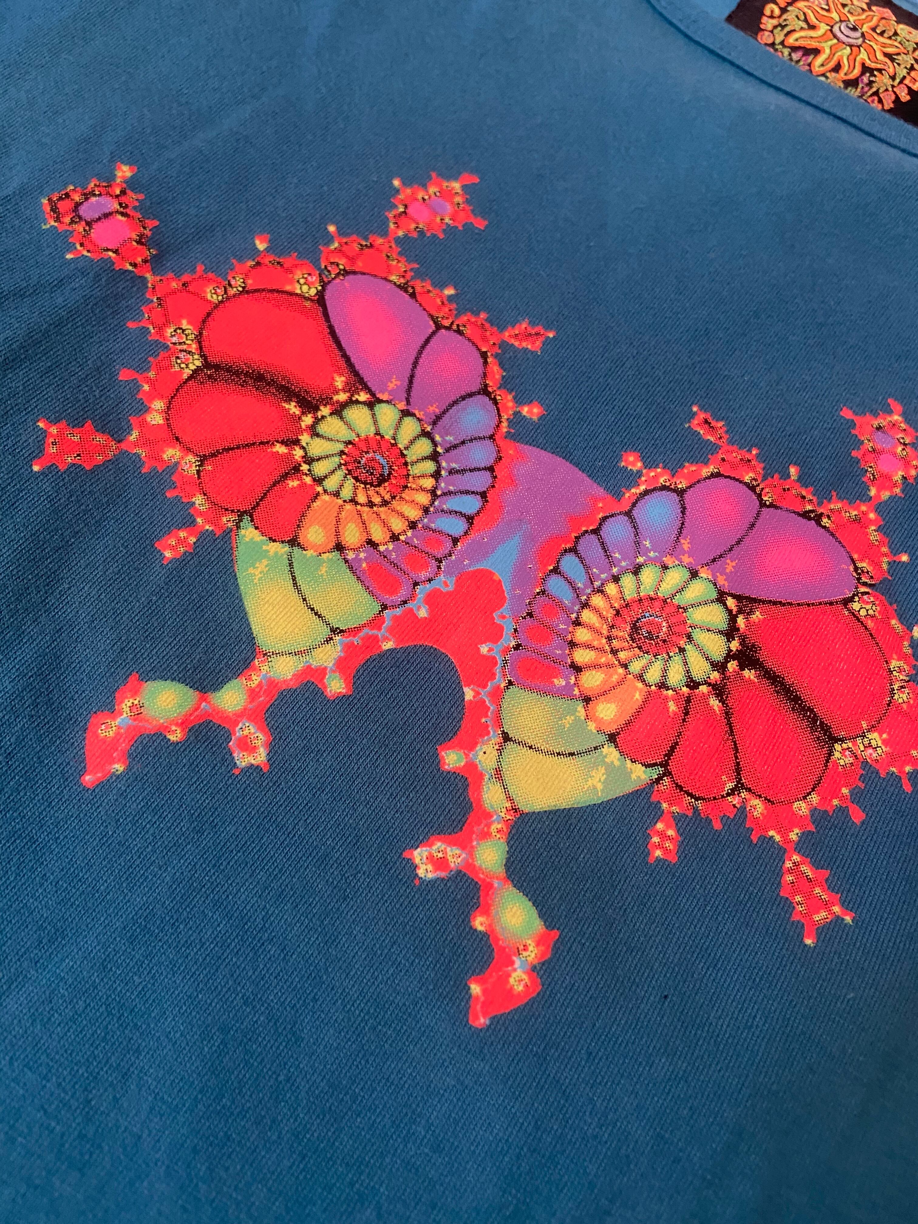 フロントはフラクタルパターンサイケデリックにプリントしてバックはキノコやプリントをリフレクタープリントしてますライトに反応して光ります