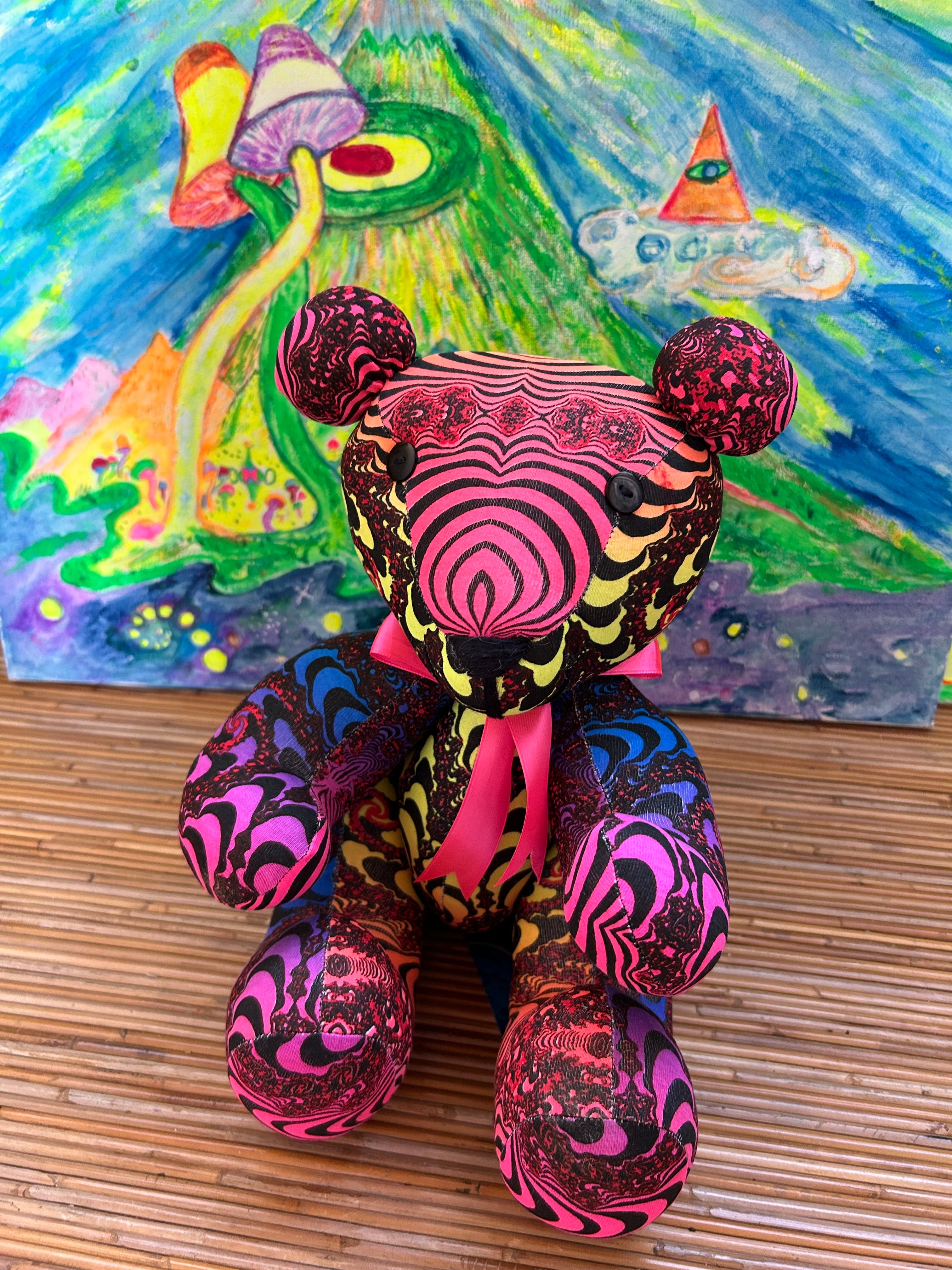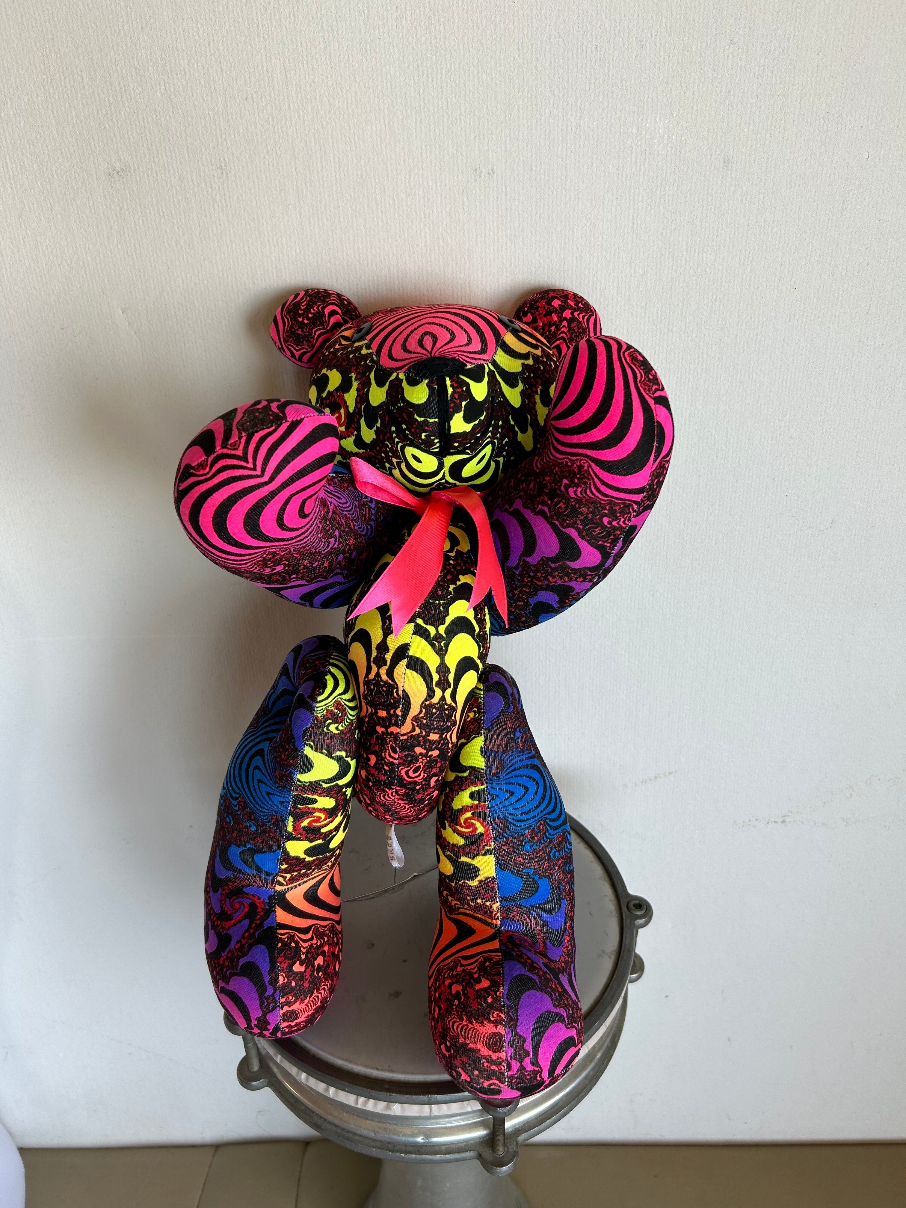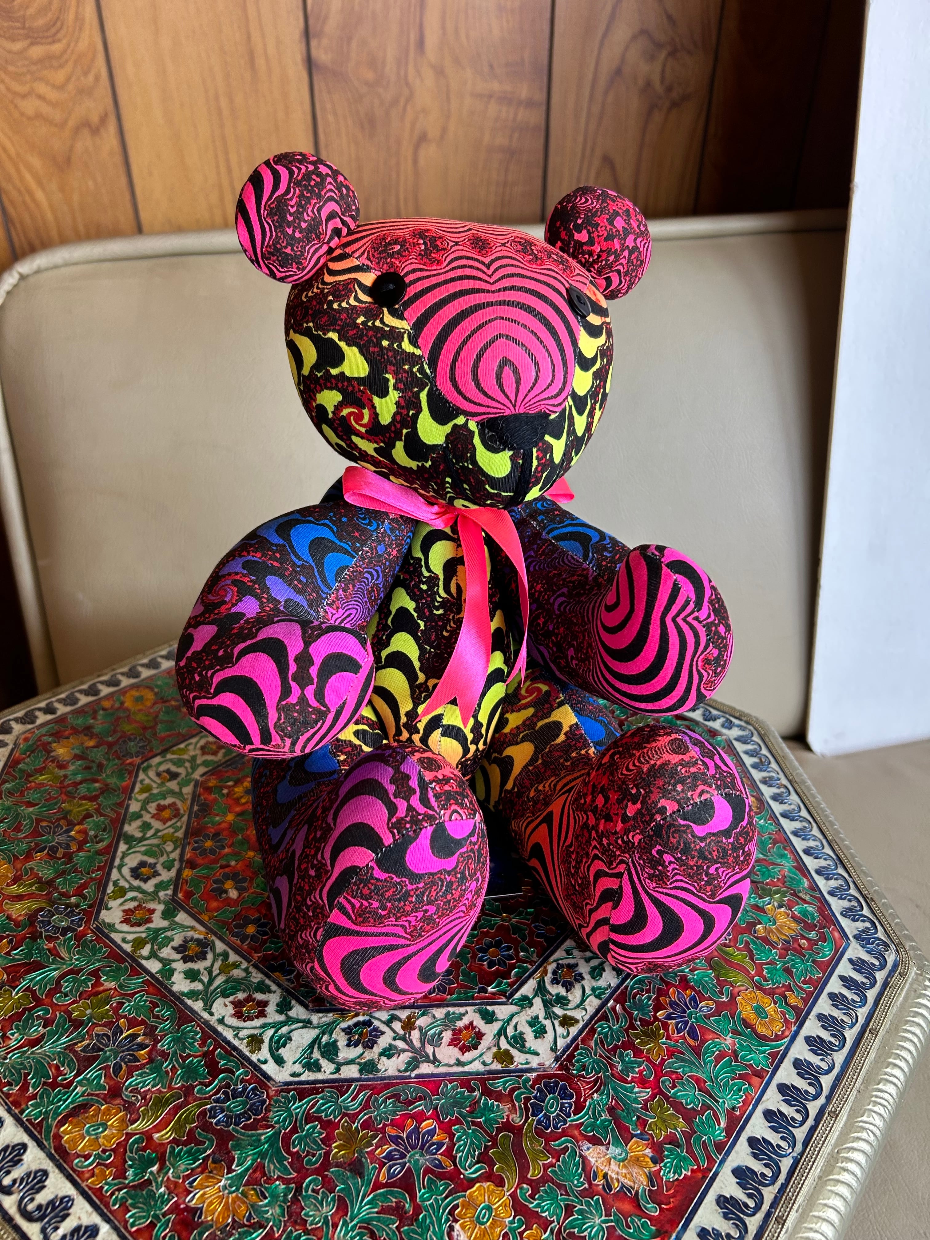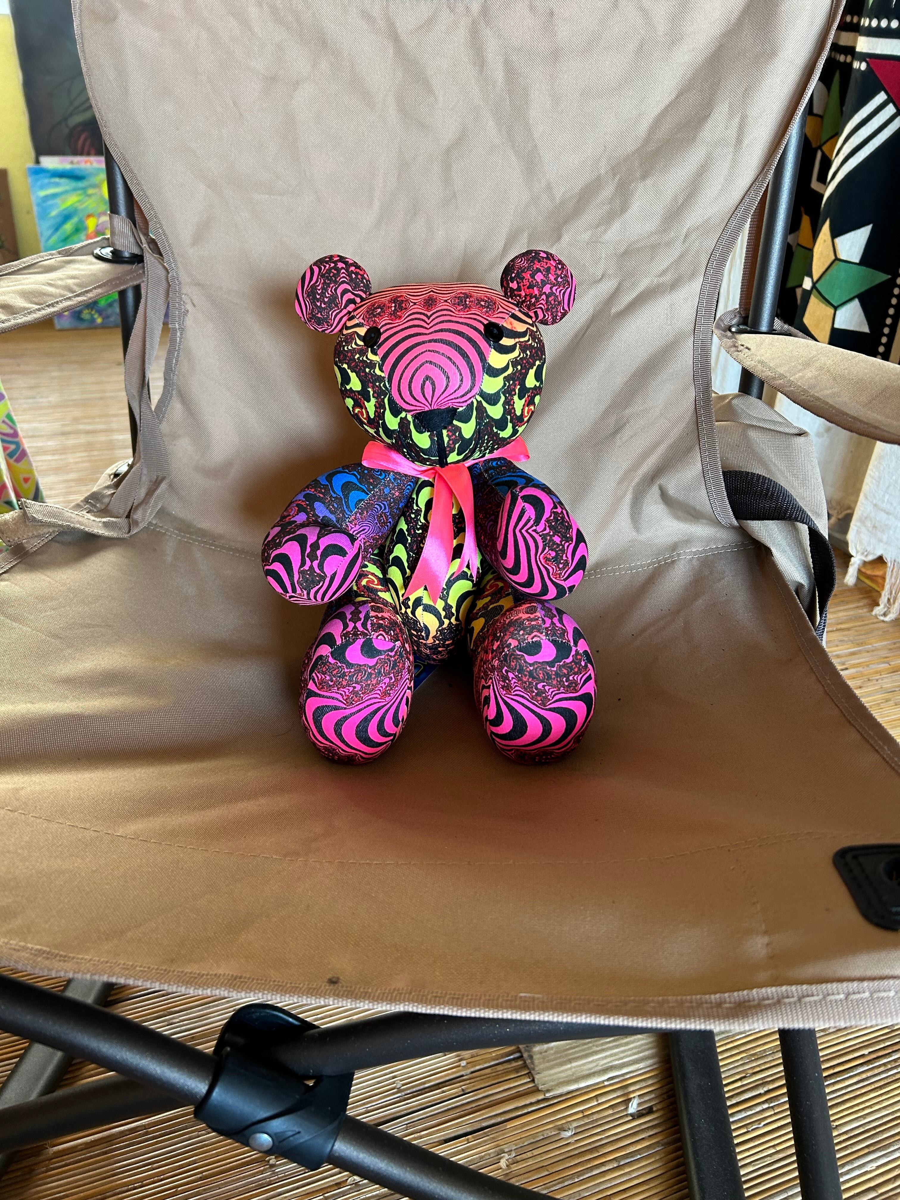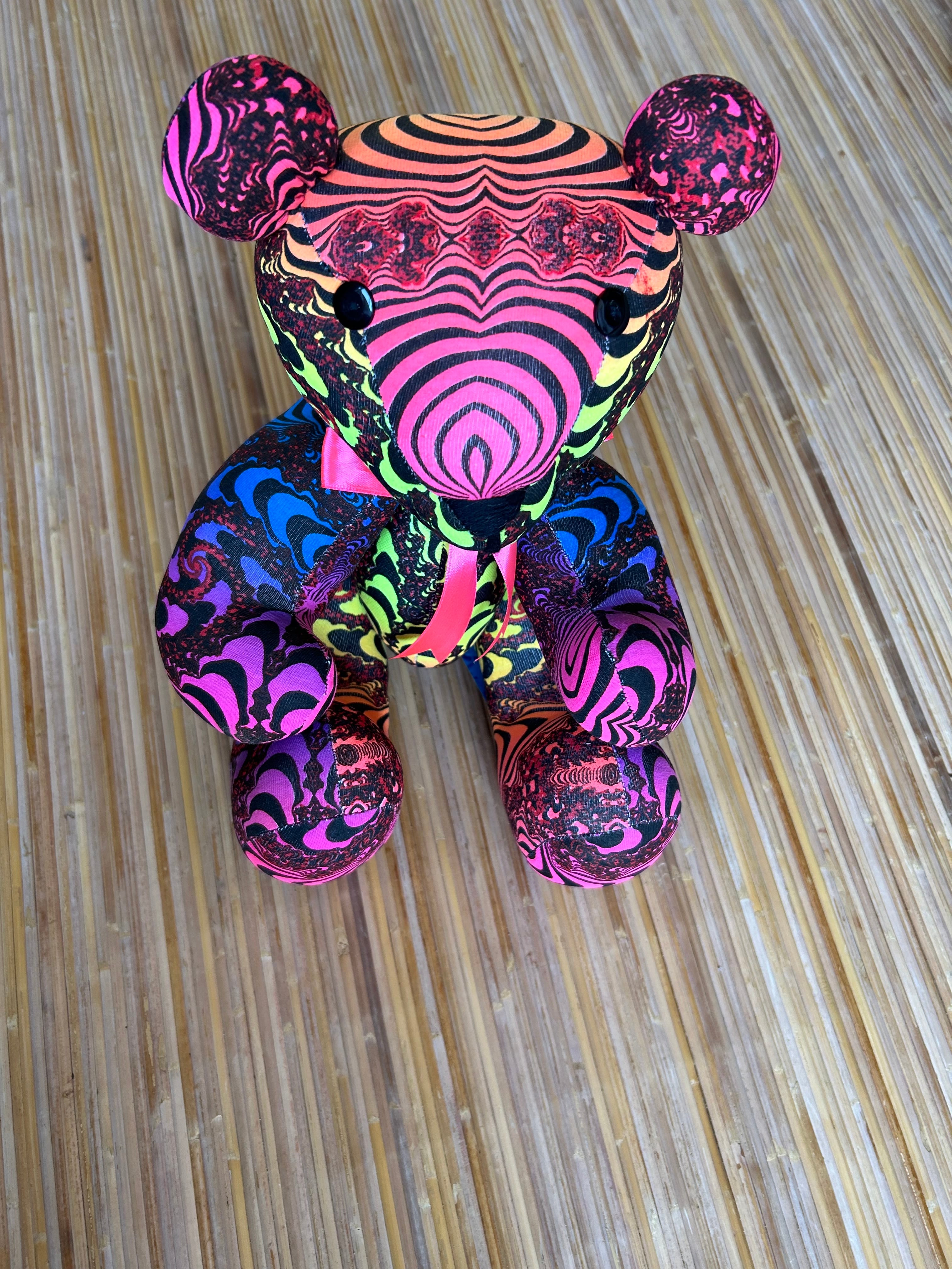 レインボーフラクタルの生地でかわいいテディベア
